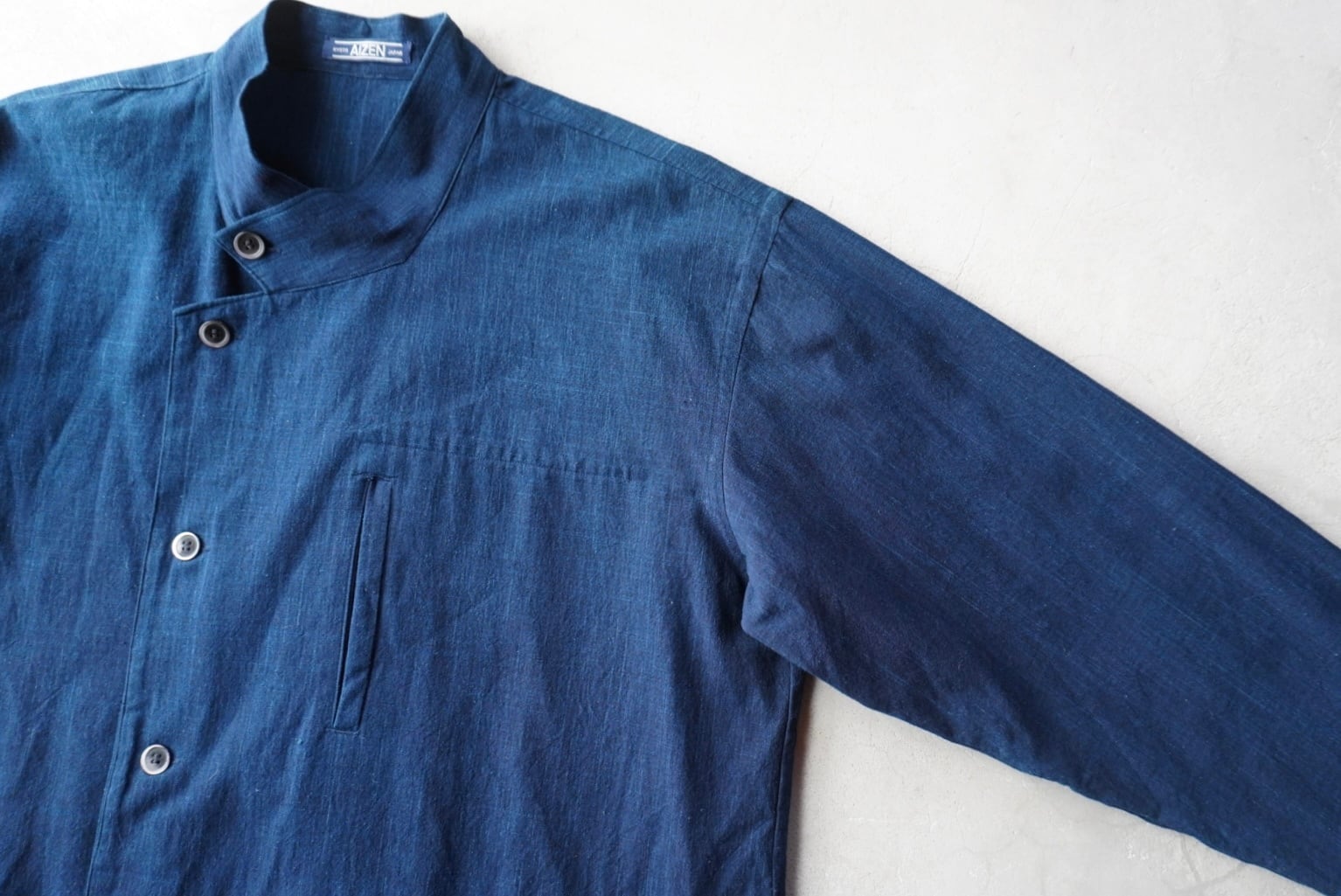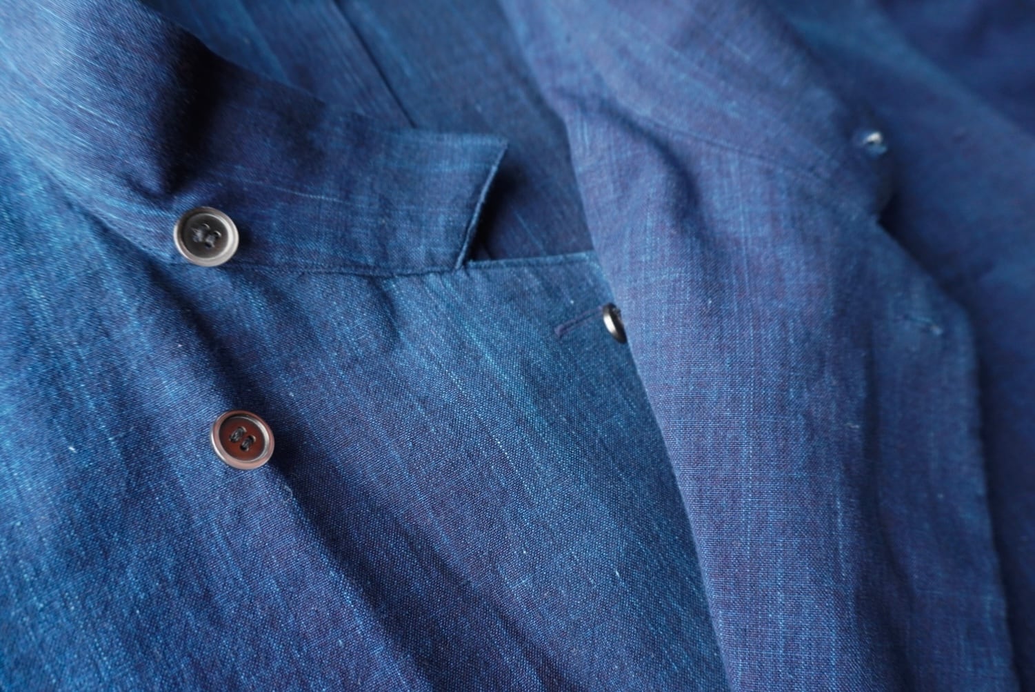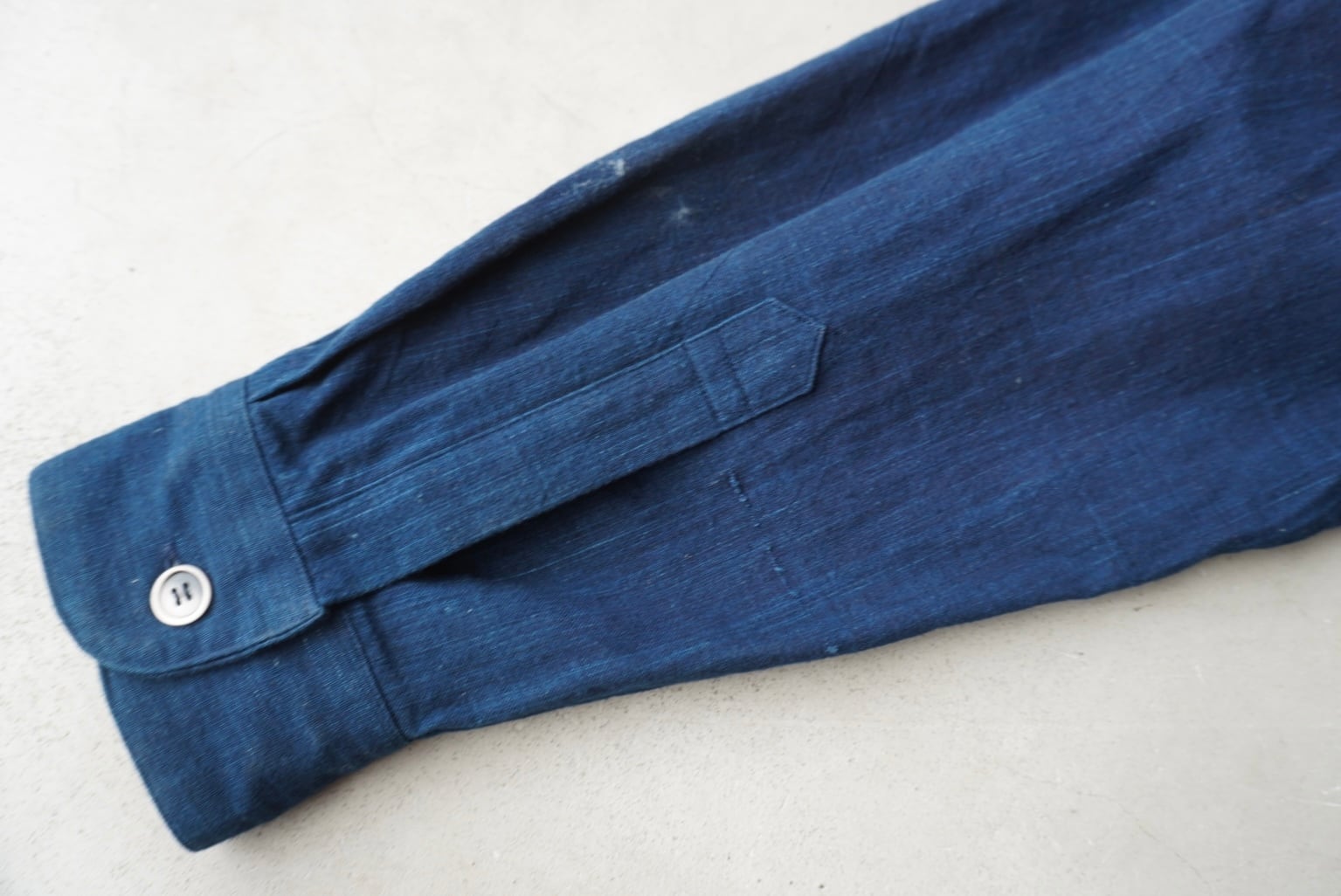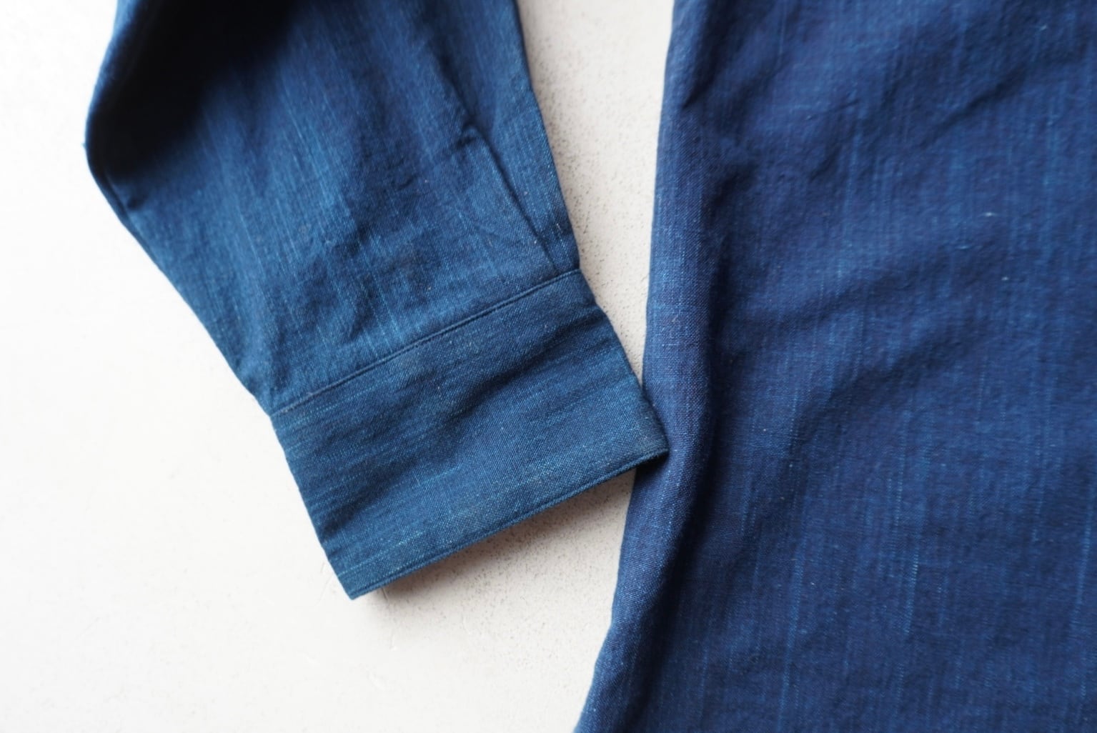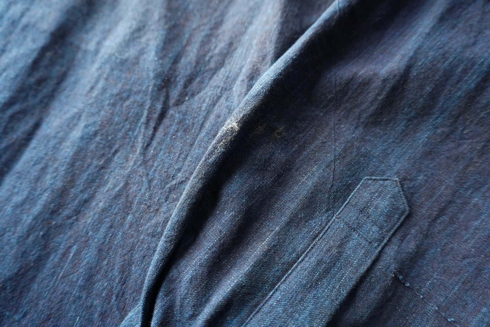 綺麗な色落ちも出始めた、奥行きのある藍染め生地。