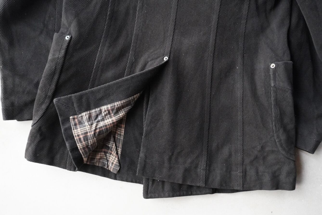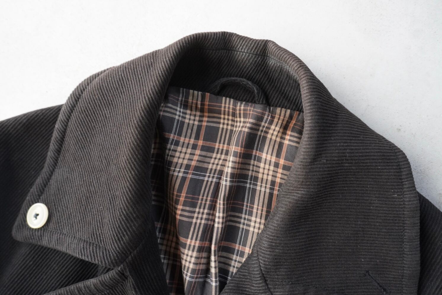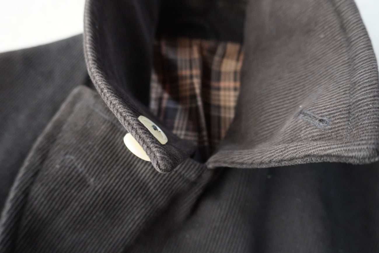 リベットが打ち込まれた、深いチャコールブラックの細畝コーズ。