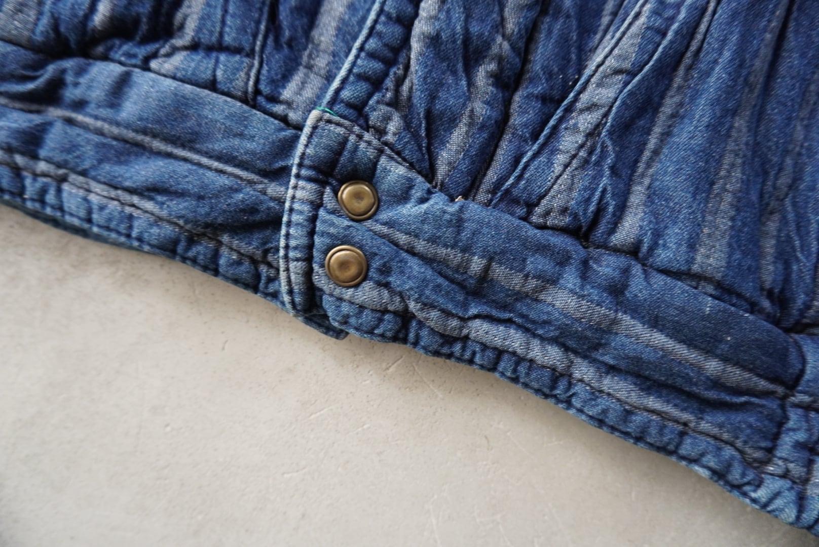 画像の様な少しのほつれ、デニム地特有の自然な色むらがございます。