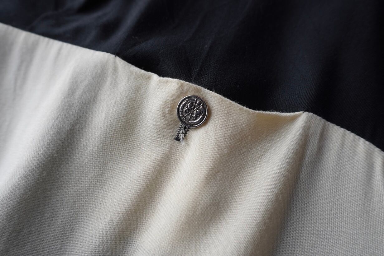 ループボタンのスキッパー仕様、ボタン留め両胸のスリットポケット。