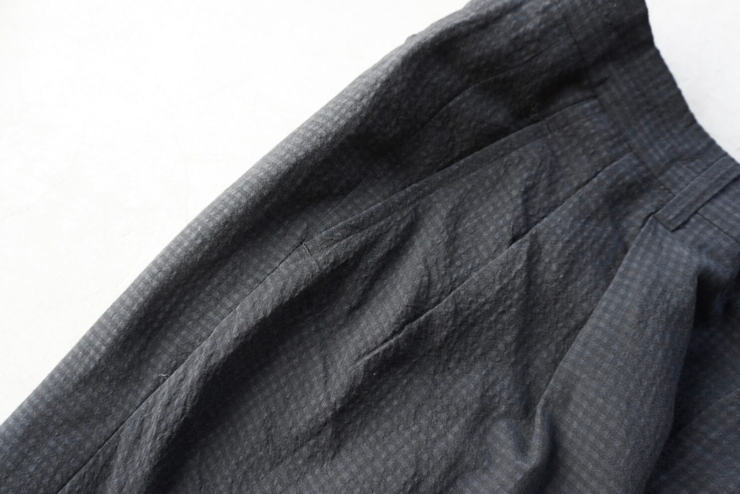 ボトムスは広い渡りから緩やかなテーパードがかかるリラックスフィット。