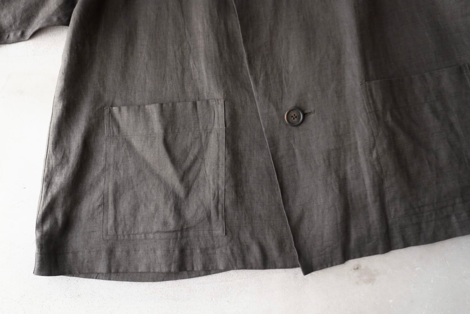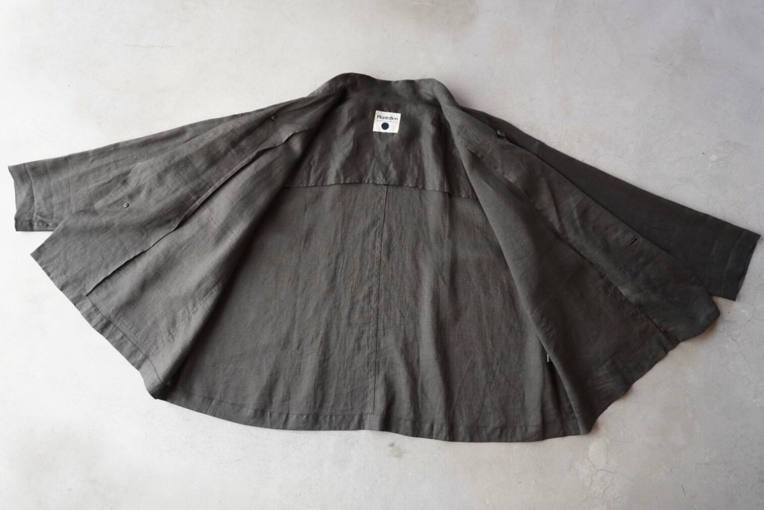 このブランドらしい余白のあるコートアイテムを身頃途中で裁ち切った様な面白いバランス。