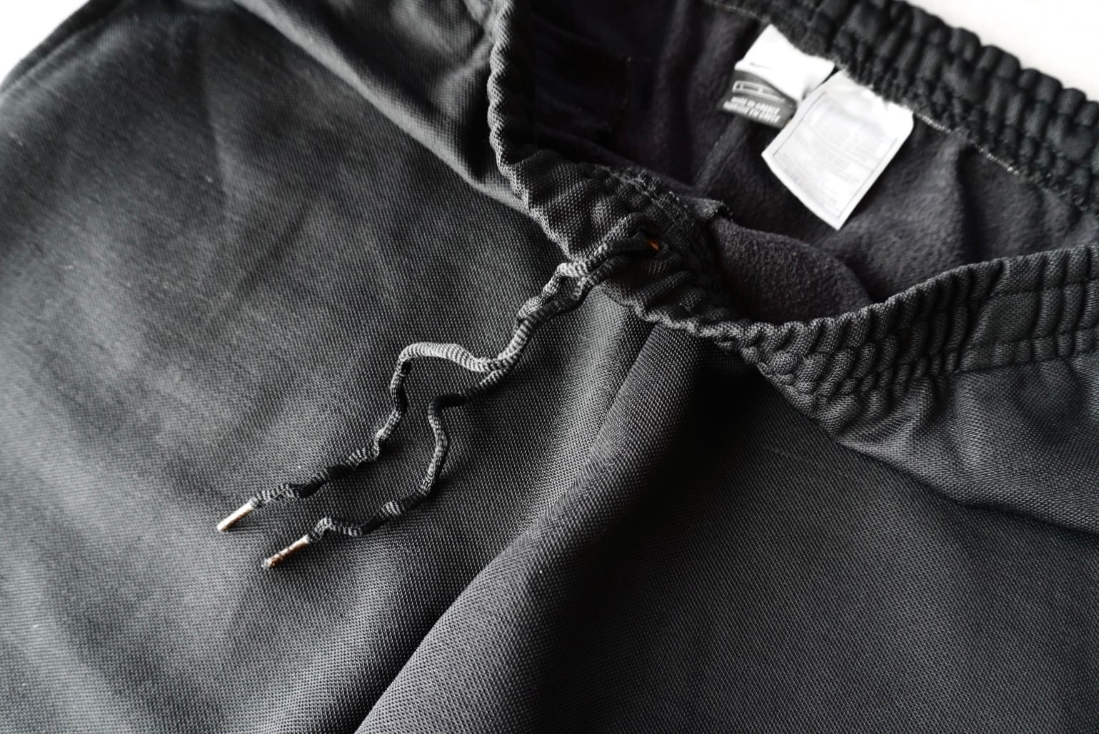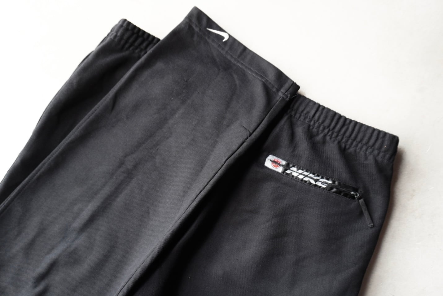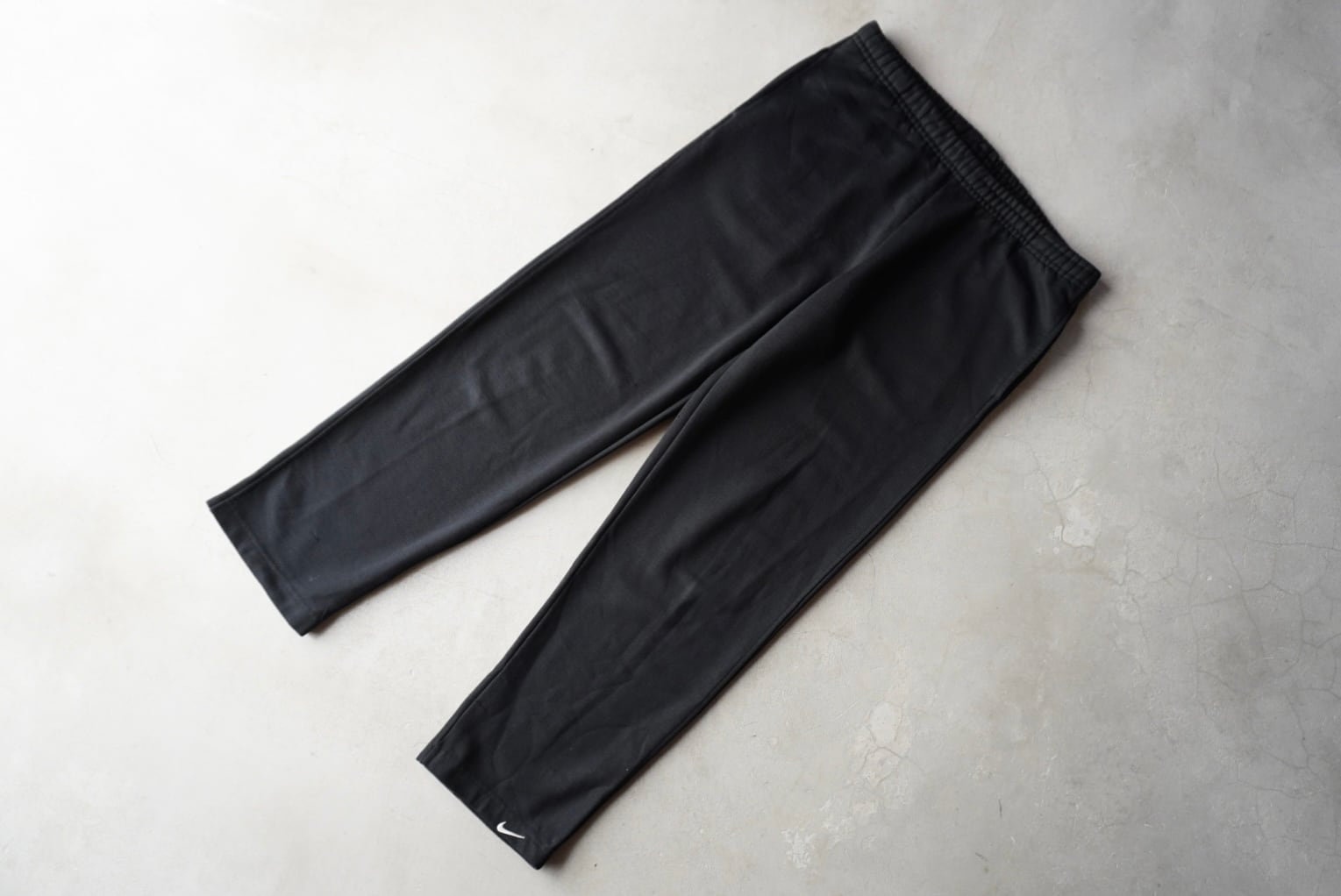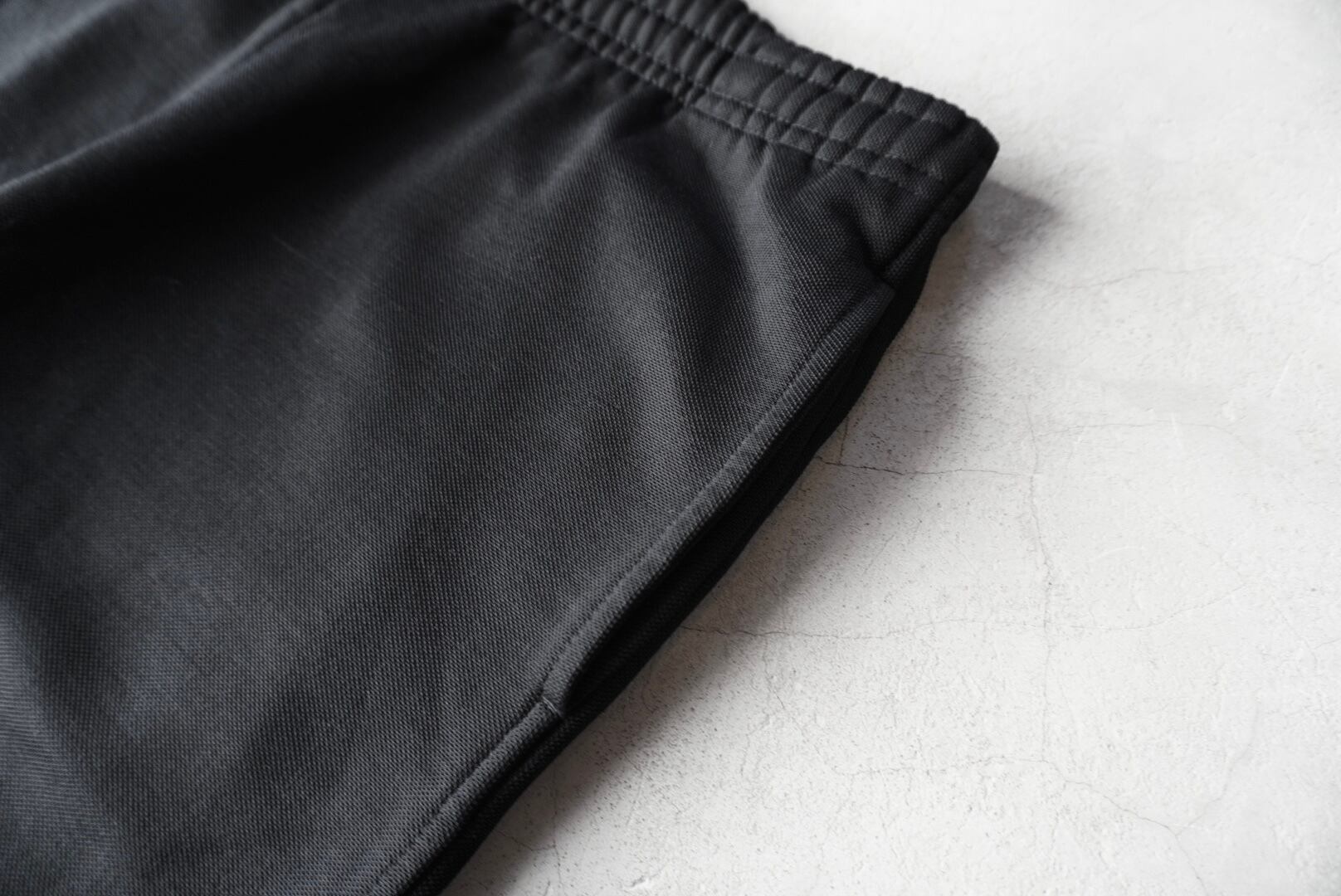 裾リブの付かない、ストンと落ちるワイドストレートのジャージパンツ。