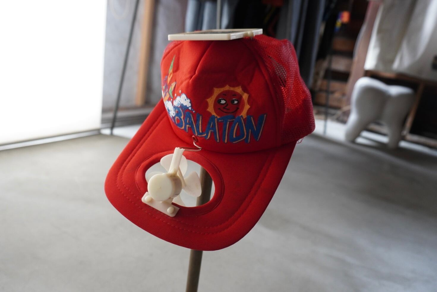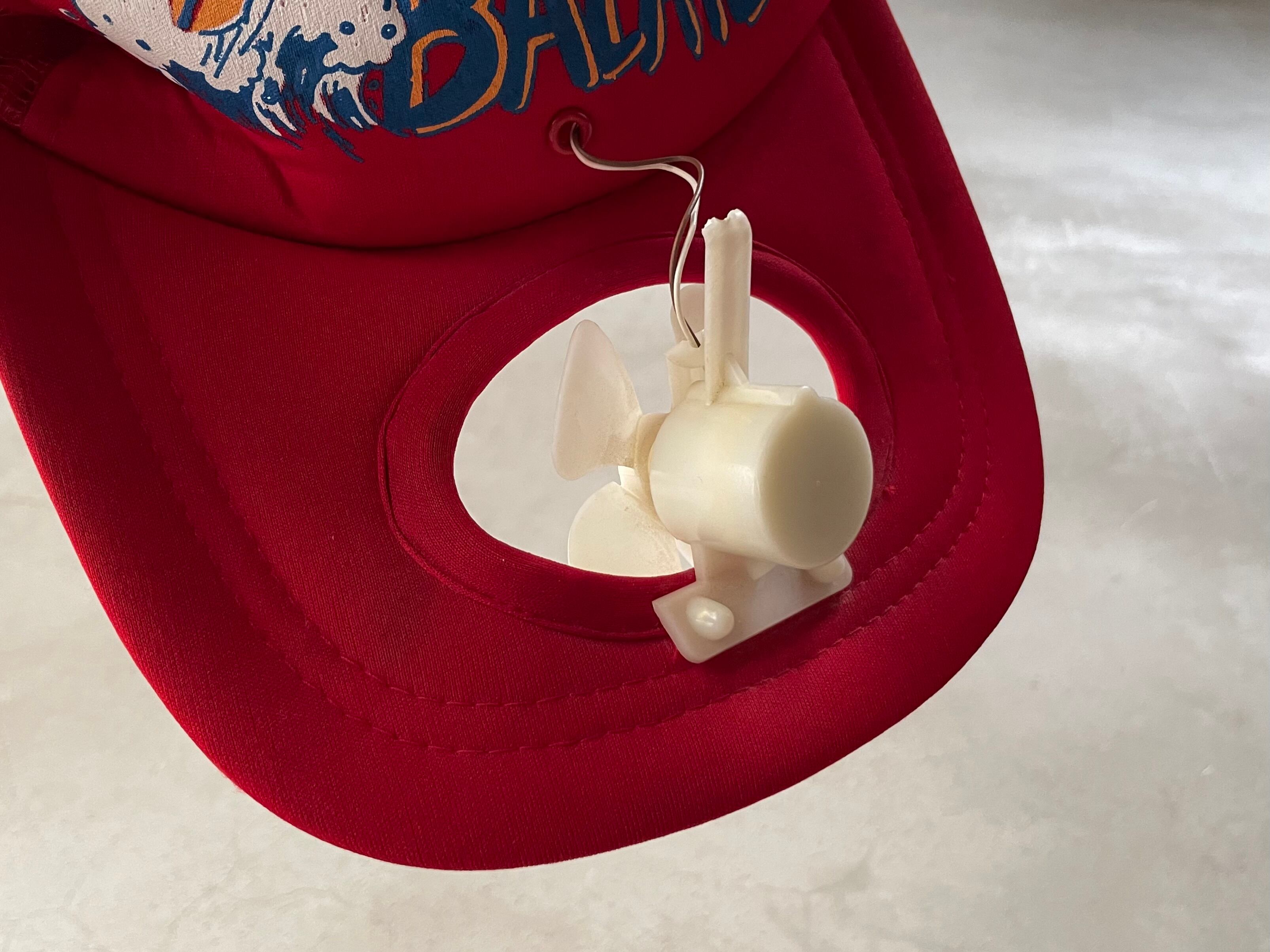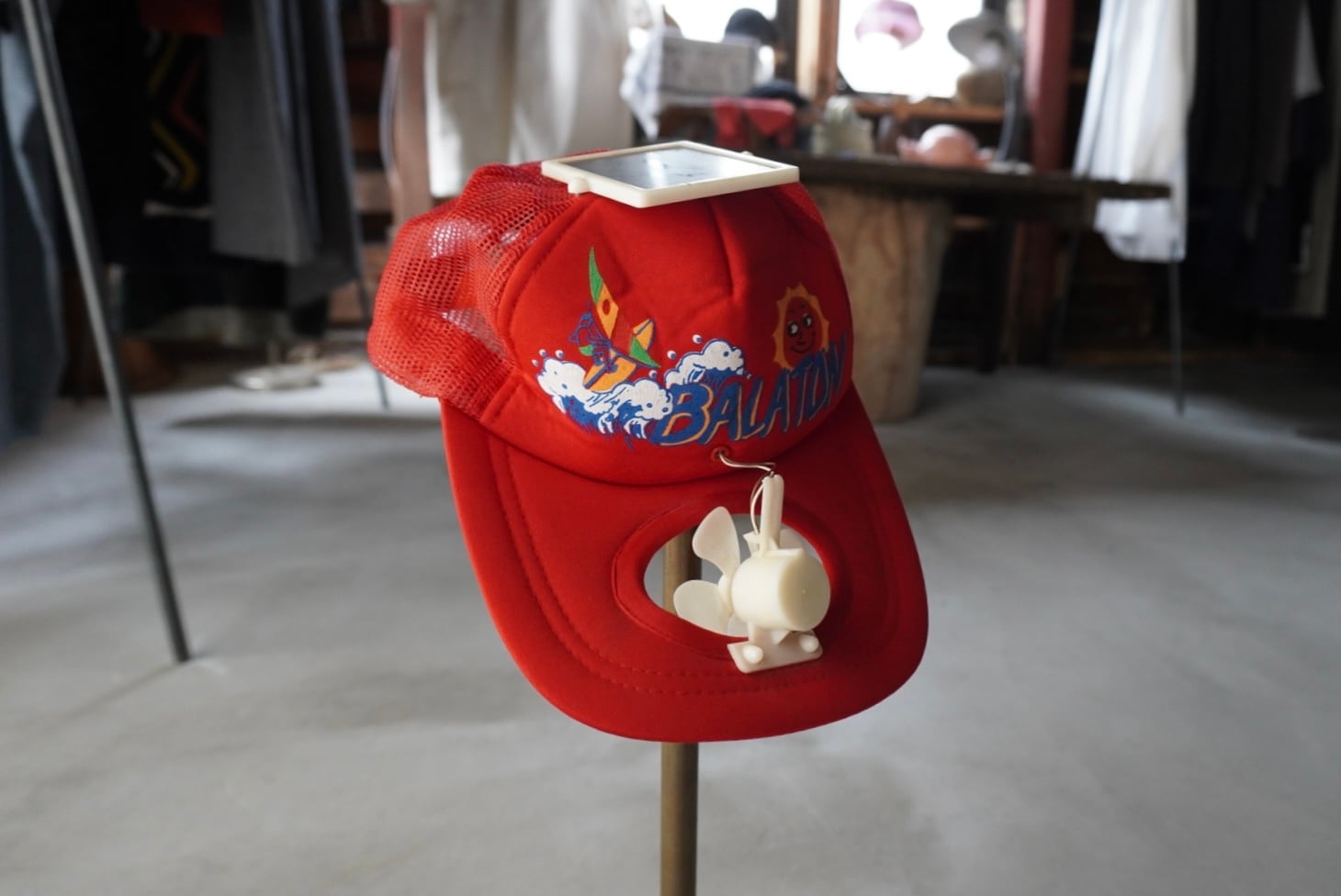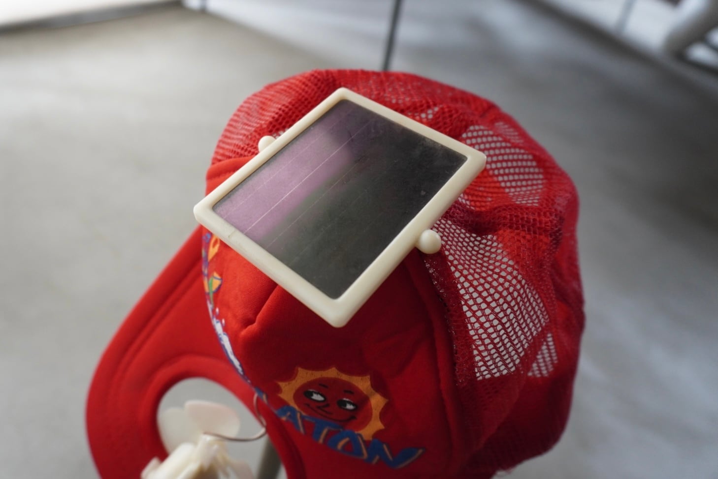 頭頂部のソーラーパネルで生まれたエネルギーをつば上の扇風機へ送る、自家発電スタイルのクーラーキャップ。