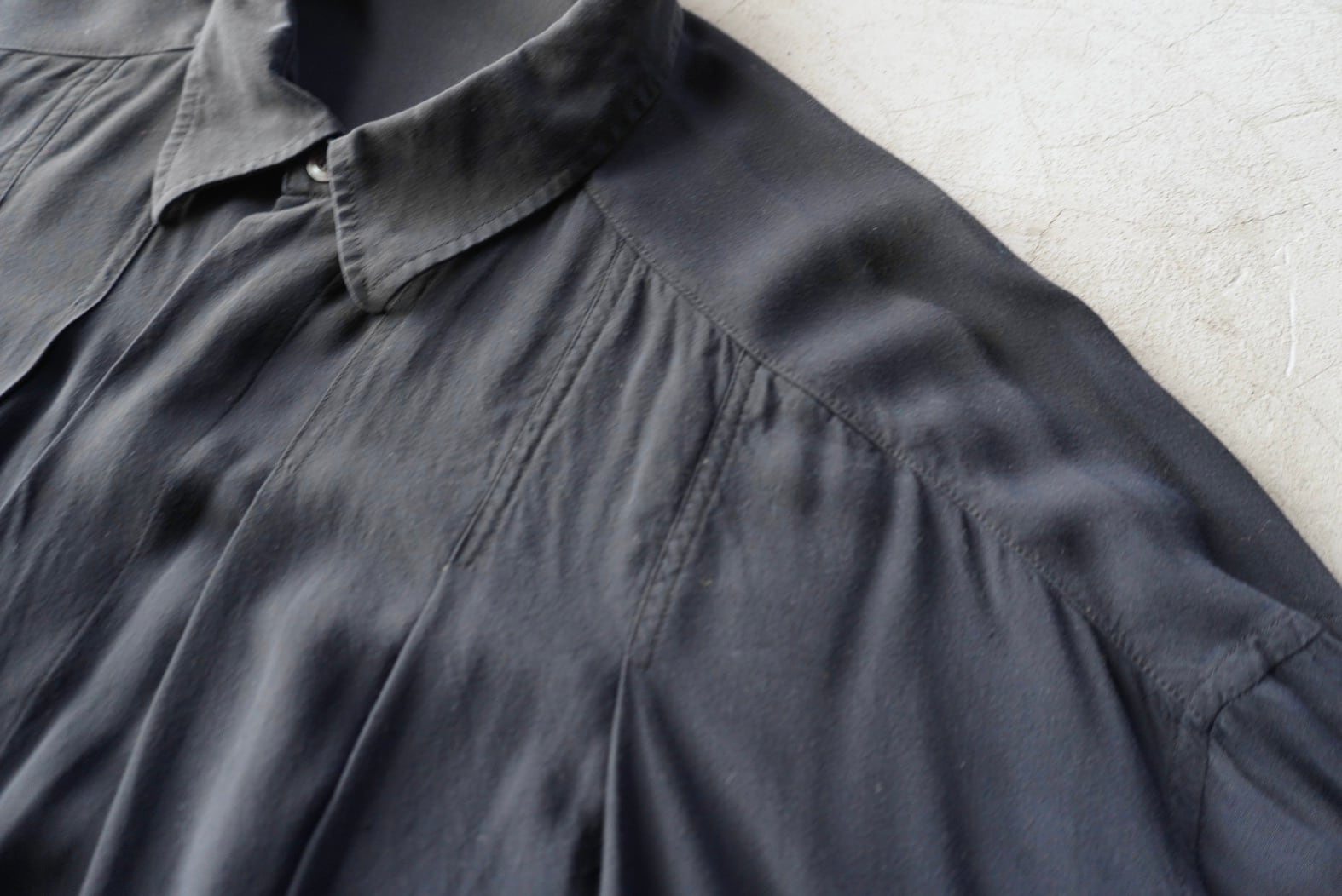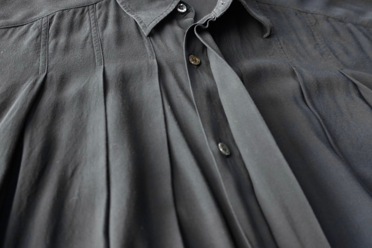 たっぷりな生地量が使用された、フロント6本の大判タックデザイン。