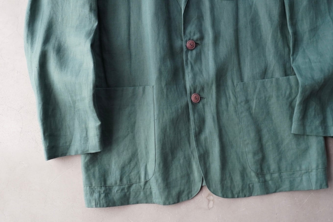 ほんのりとグレーがかった、曖昧なグリーンカラーのピュアリネン。