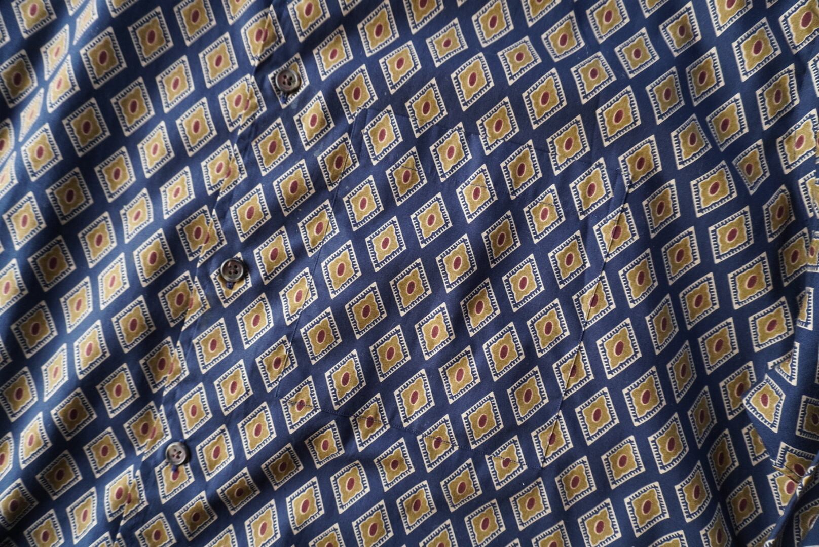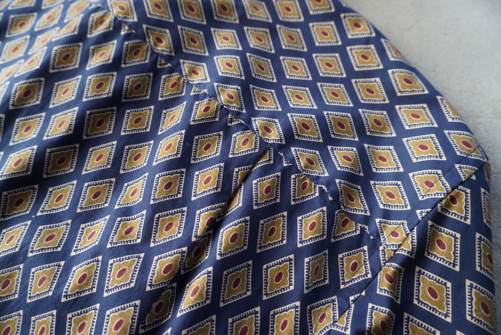 菱形の家紋、もしくは細胞が並んだ様な特徴的な総柄生地。