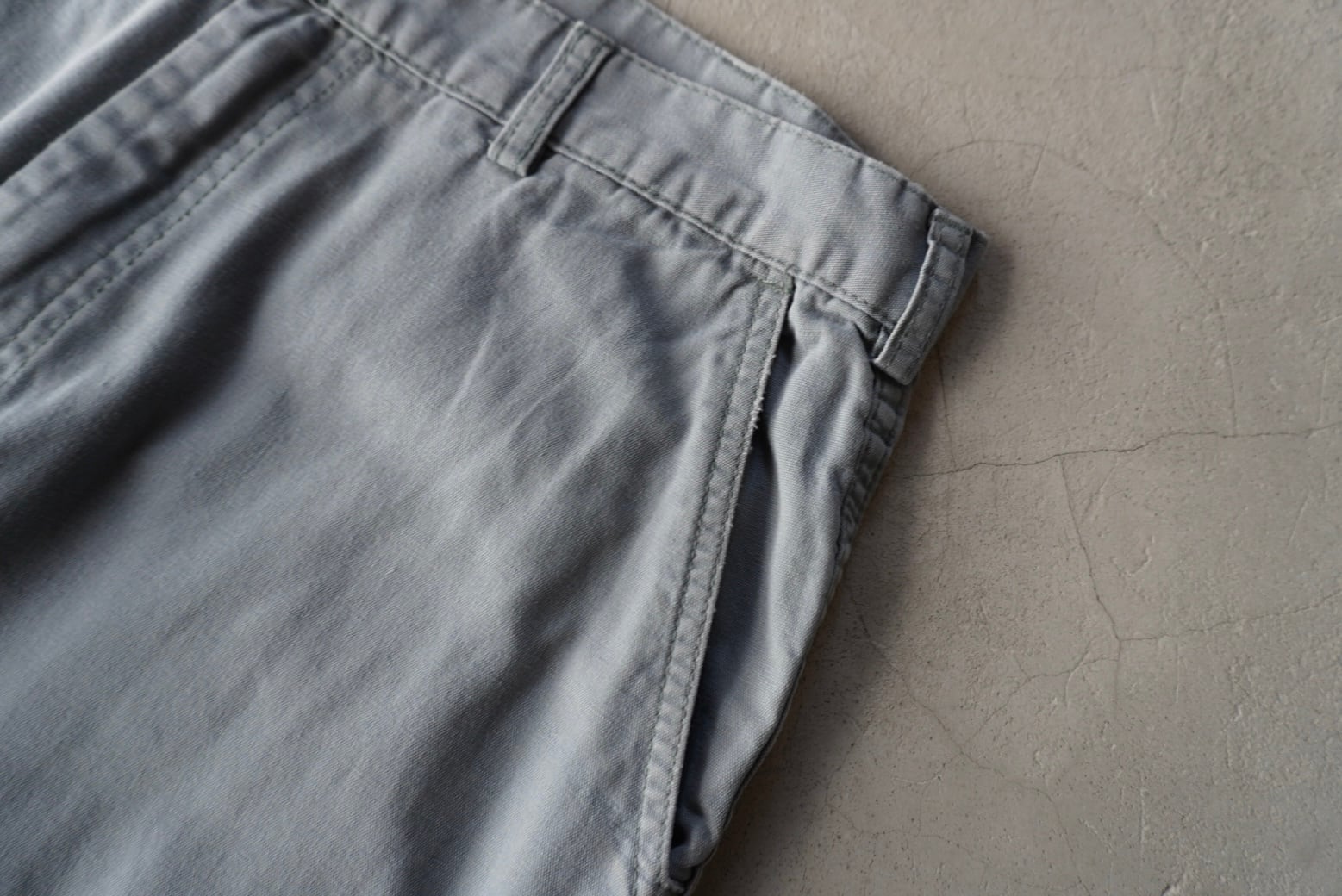 曖昧なブルーグレーのタフなコットン生地。