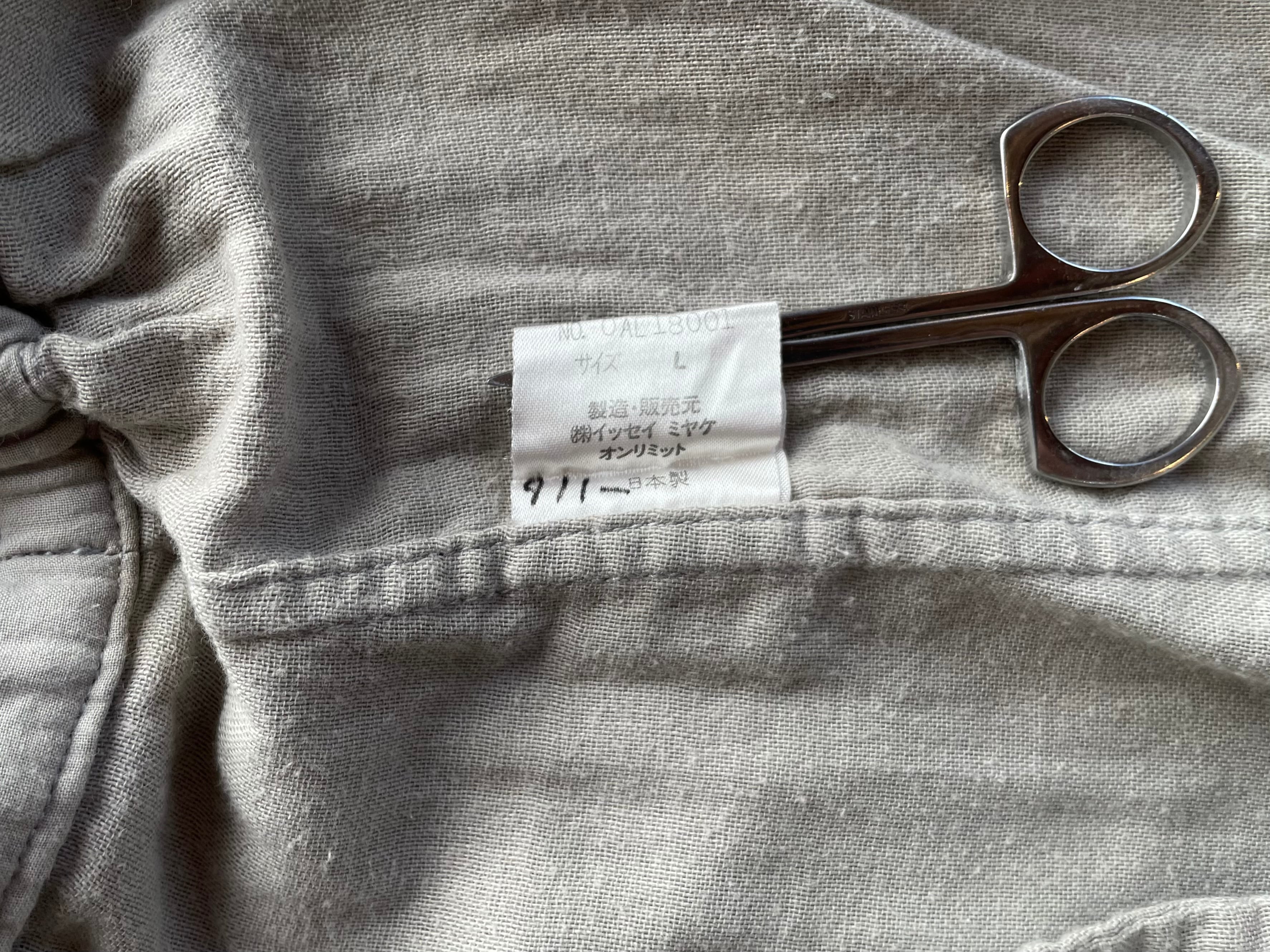 このラベルらしいカラーレス、両胸に向かい合う垂直方向のスリットポケット。