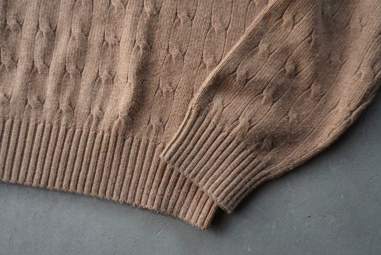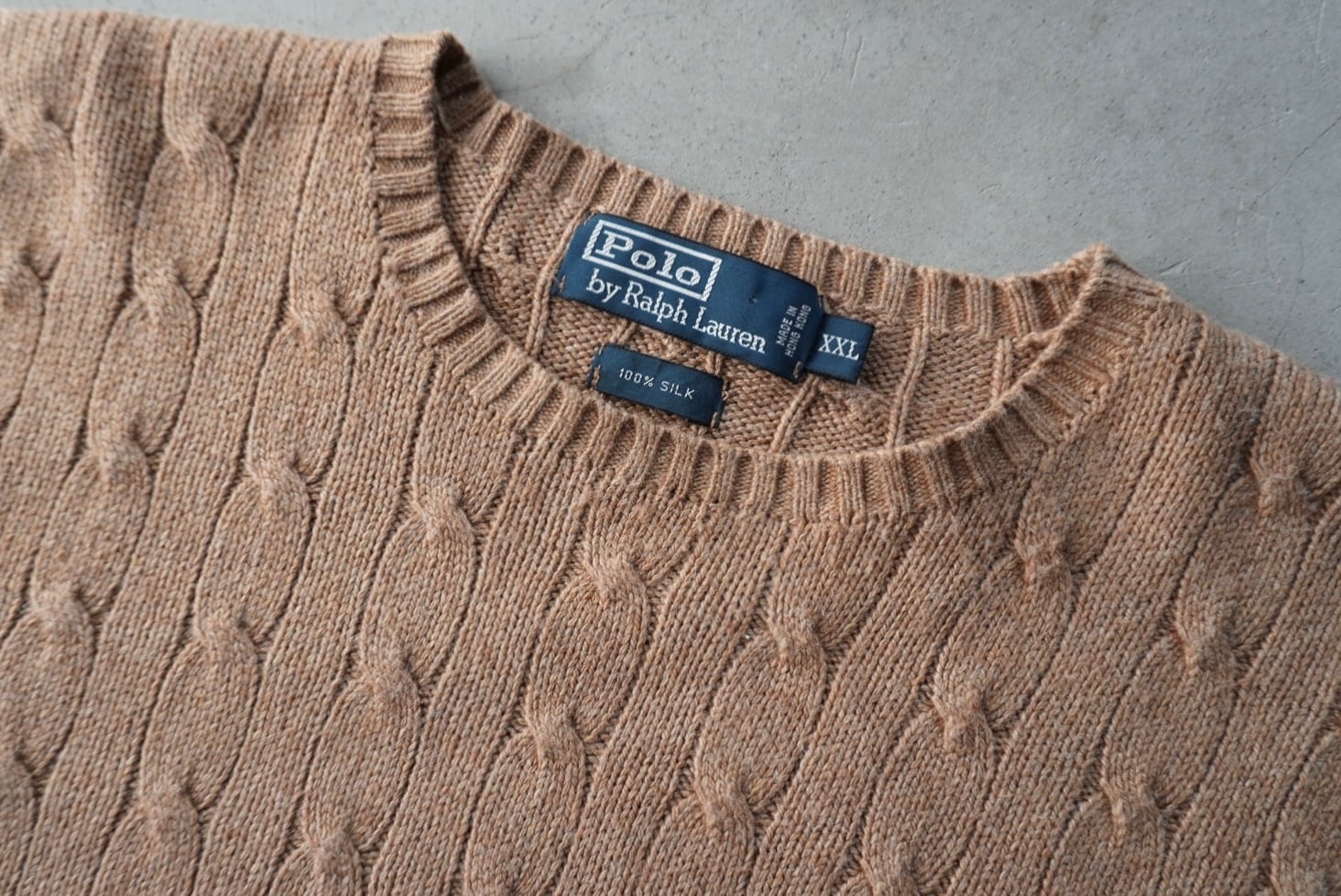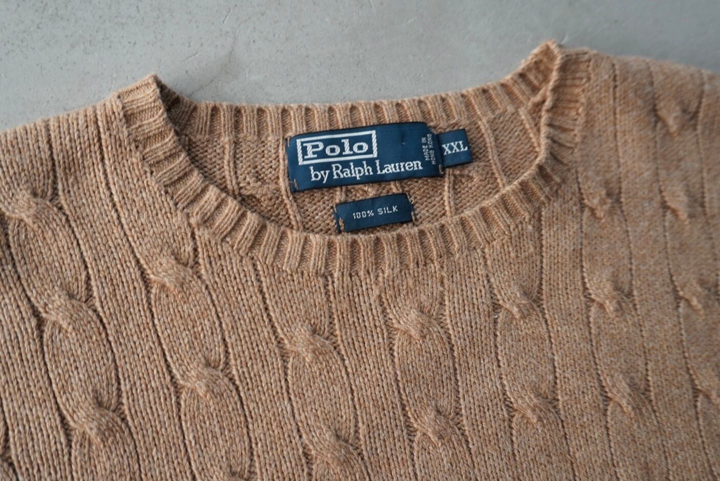 非常に上質なオールシルクのケーブル編みでのXXL表記のビッグサイズ。