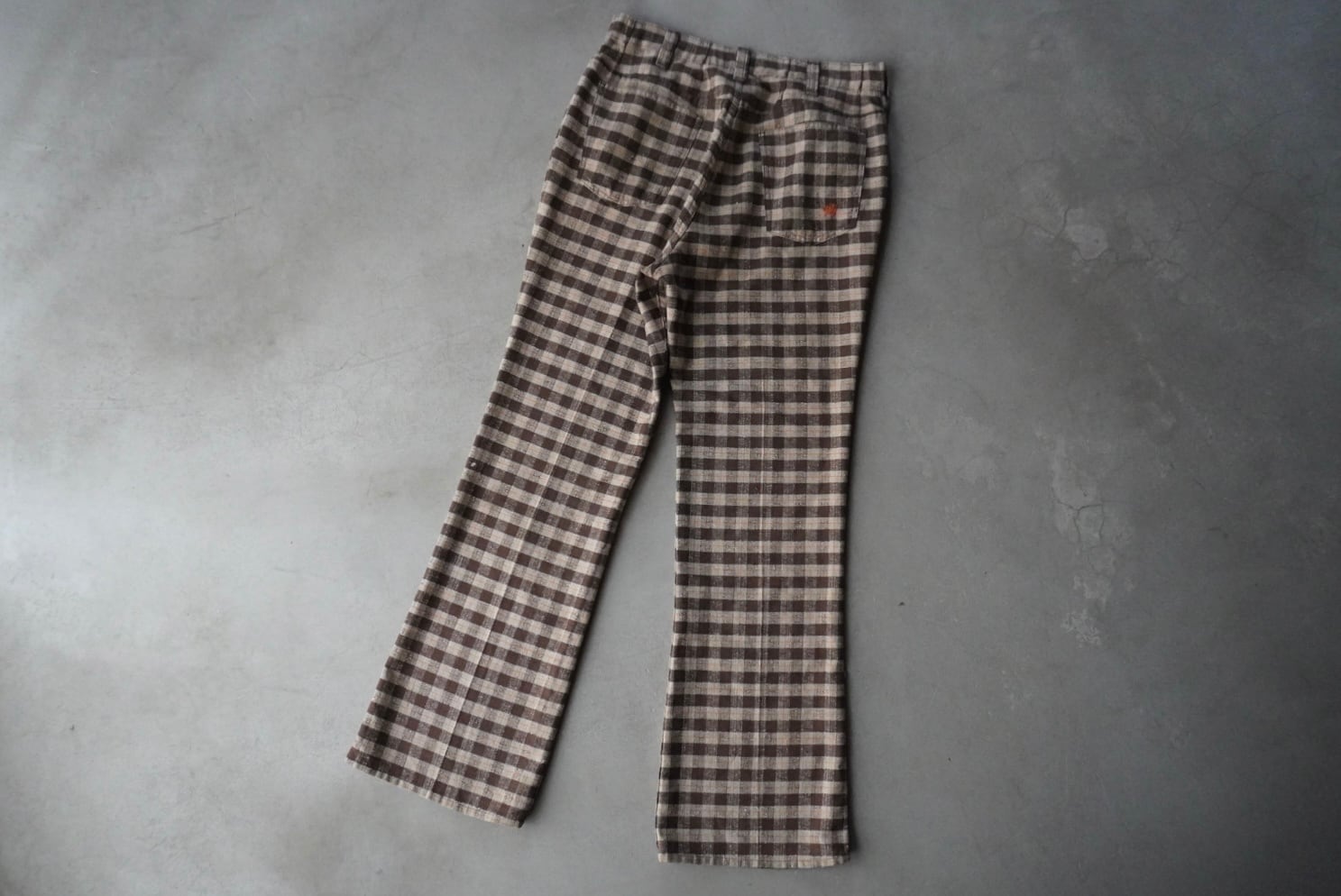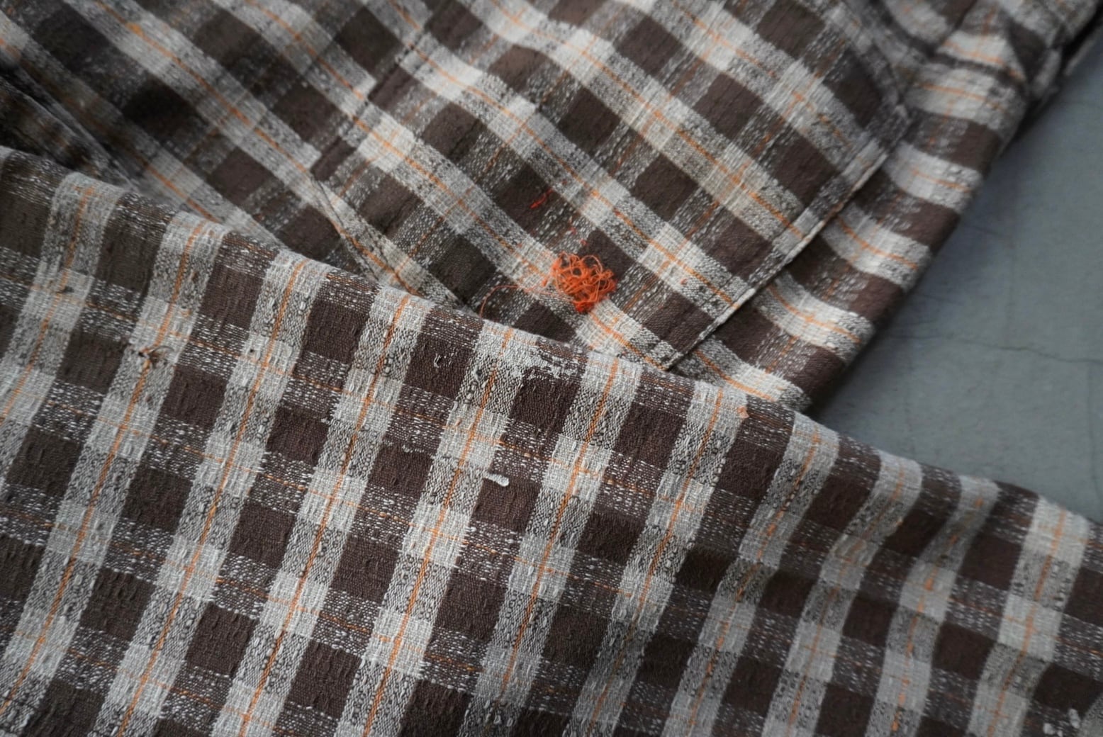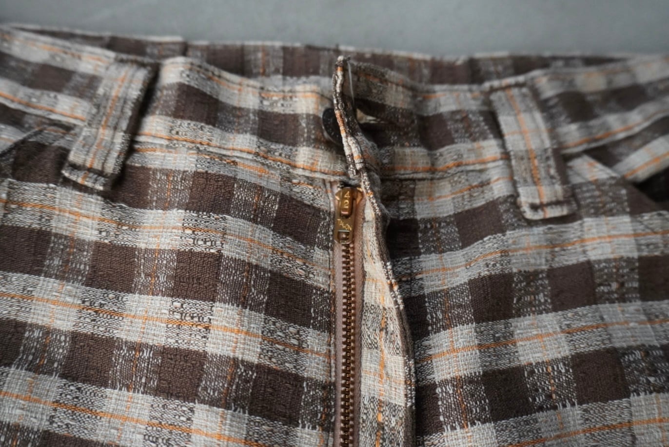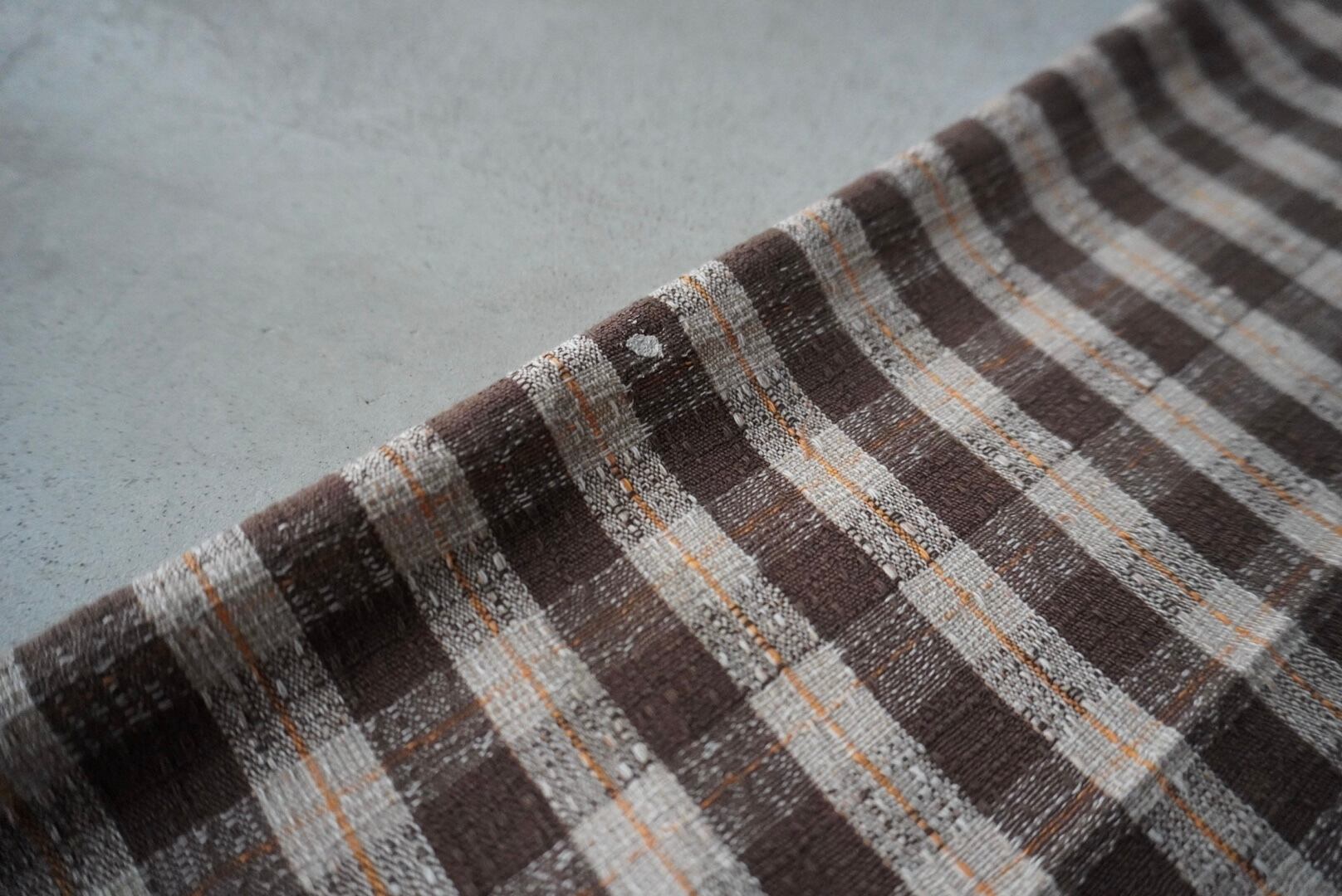 ブラウン×オートミールにオレンジが混じる、好配色のチェック柄。