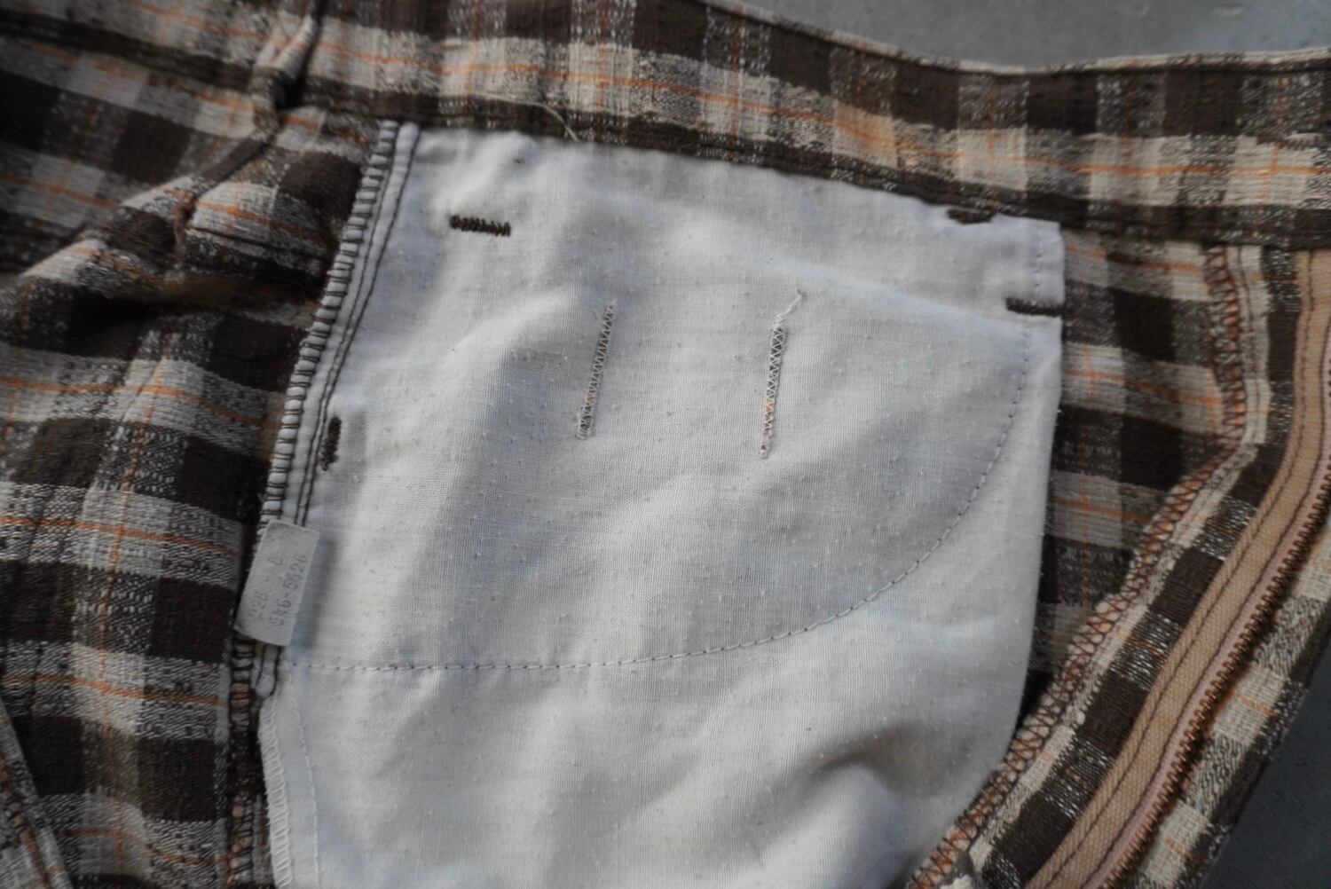 随所に飛んだ少量の染料。 前オーナーによる大雑把過ぎる直しだと思われる、バックポケットの糸玉もとても気に入っております。