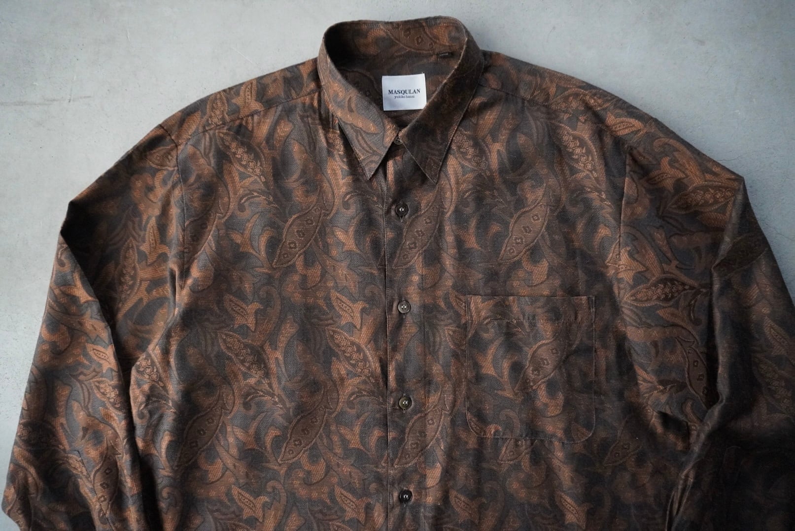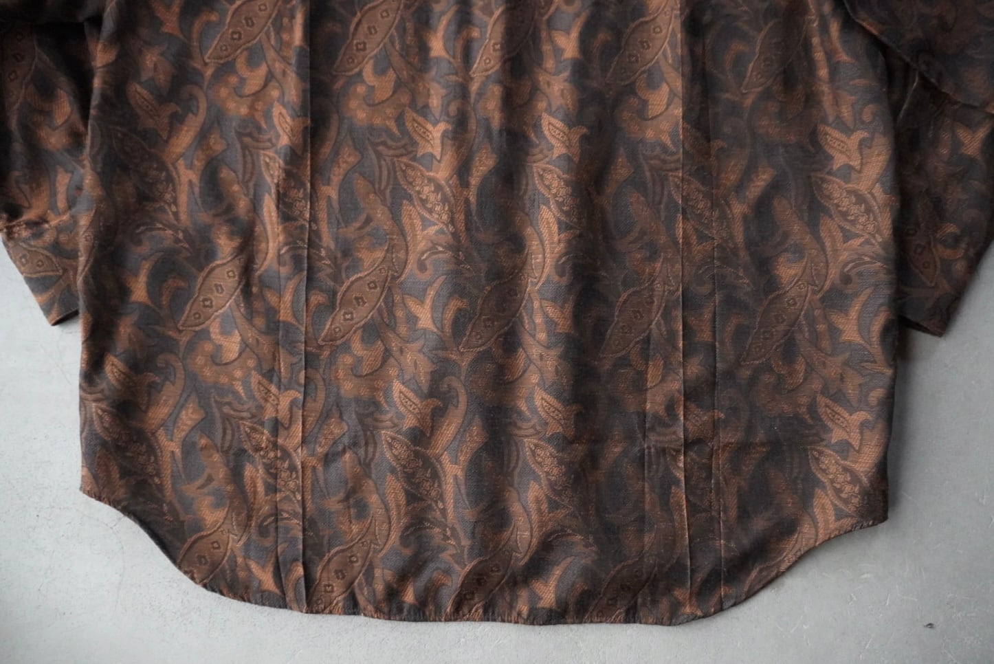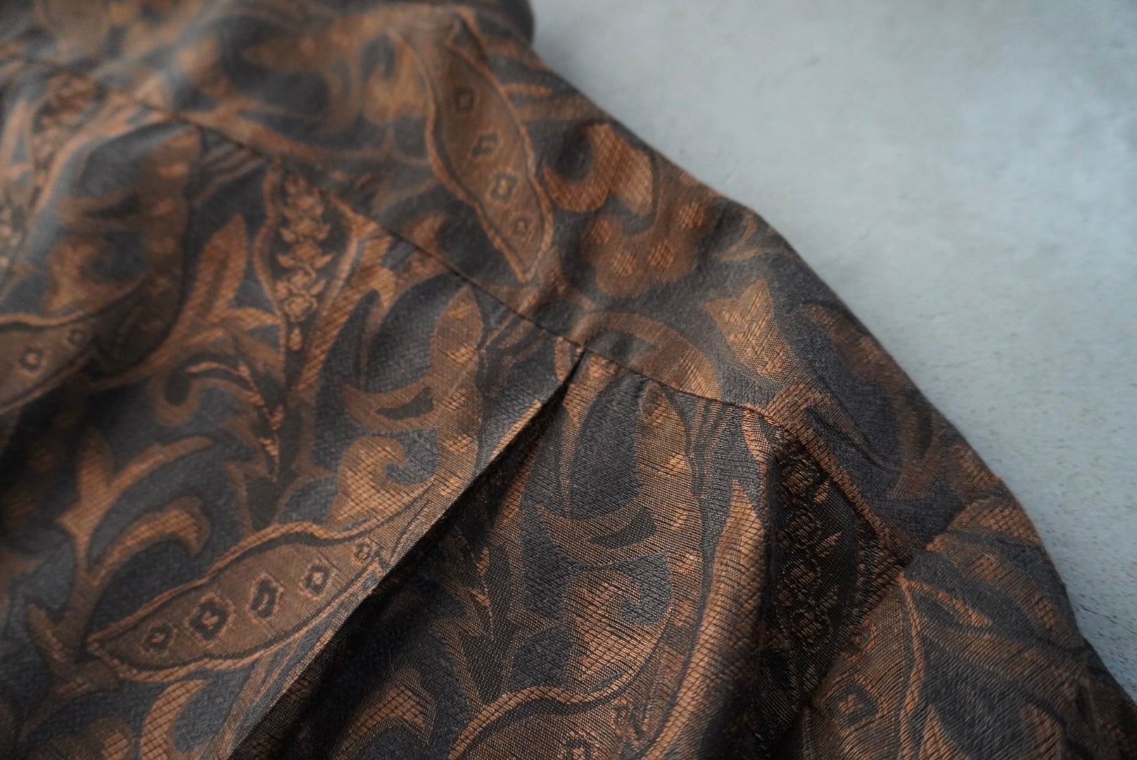 黒地に深いオレンジブラウンの奥行きのある織柄。
