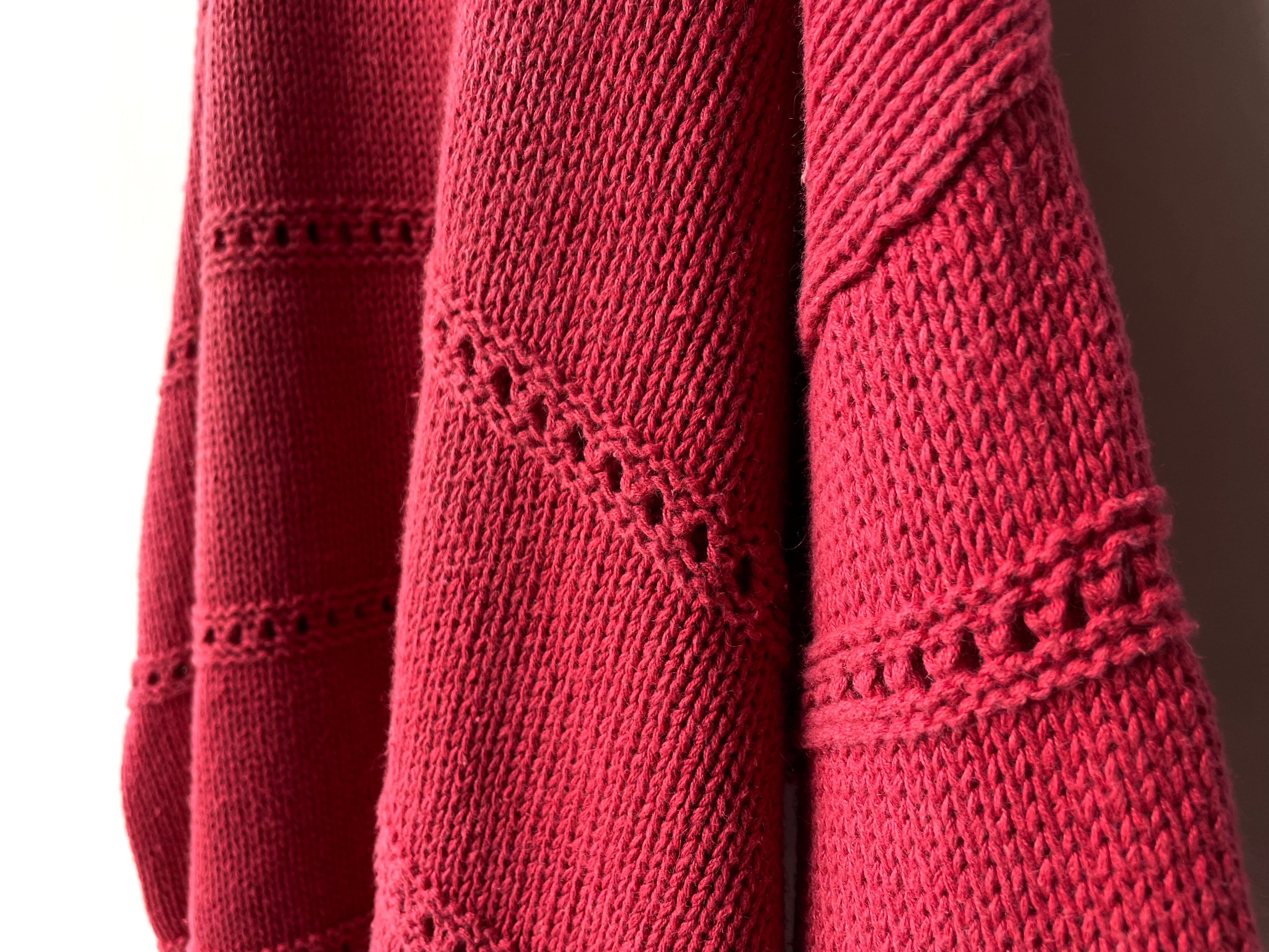 ざっくりとした小窓が並ぶ特殊な編み地です。