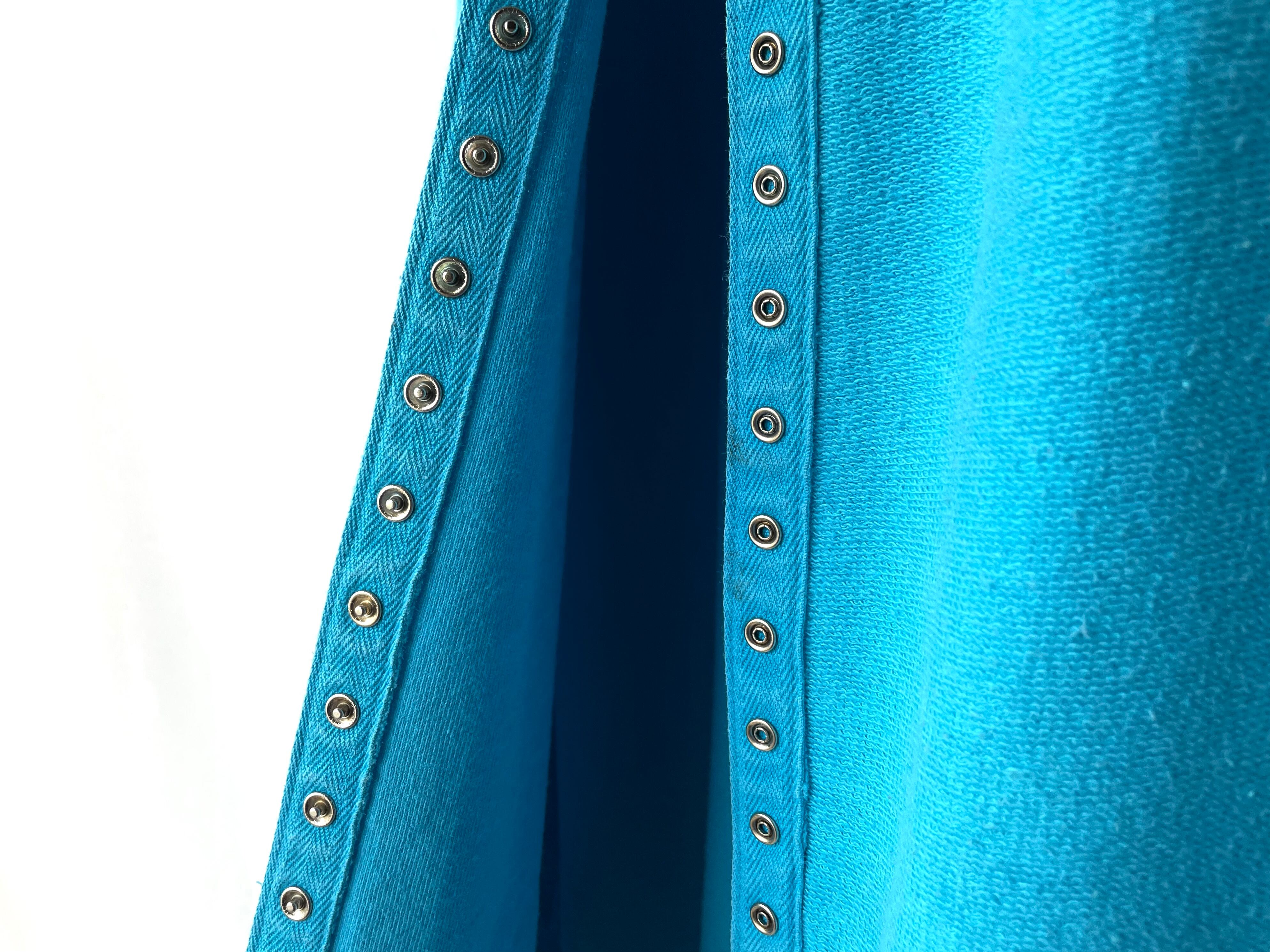 首元から裾までずっしりと並べられたメタルスナップ