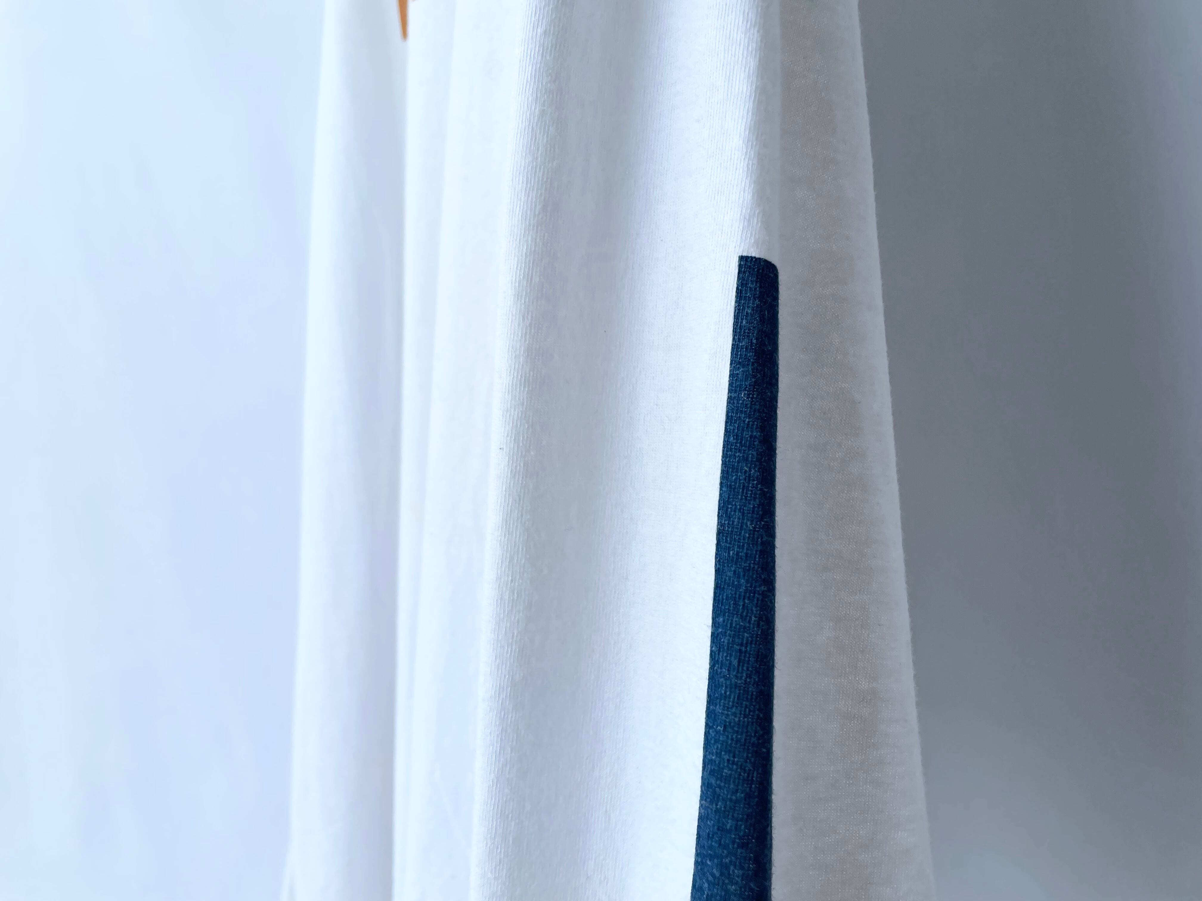左袖は深いブルー×ゴールドのプリント
