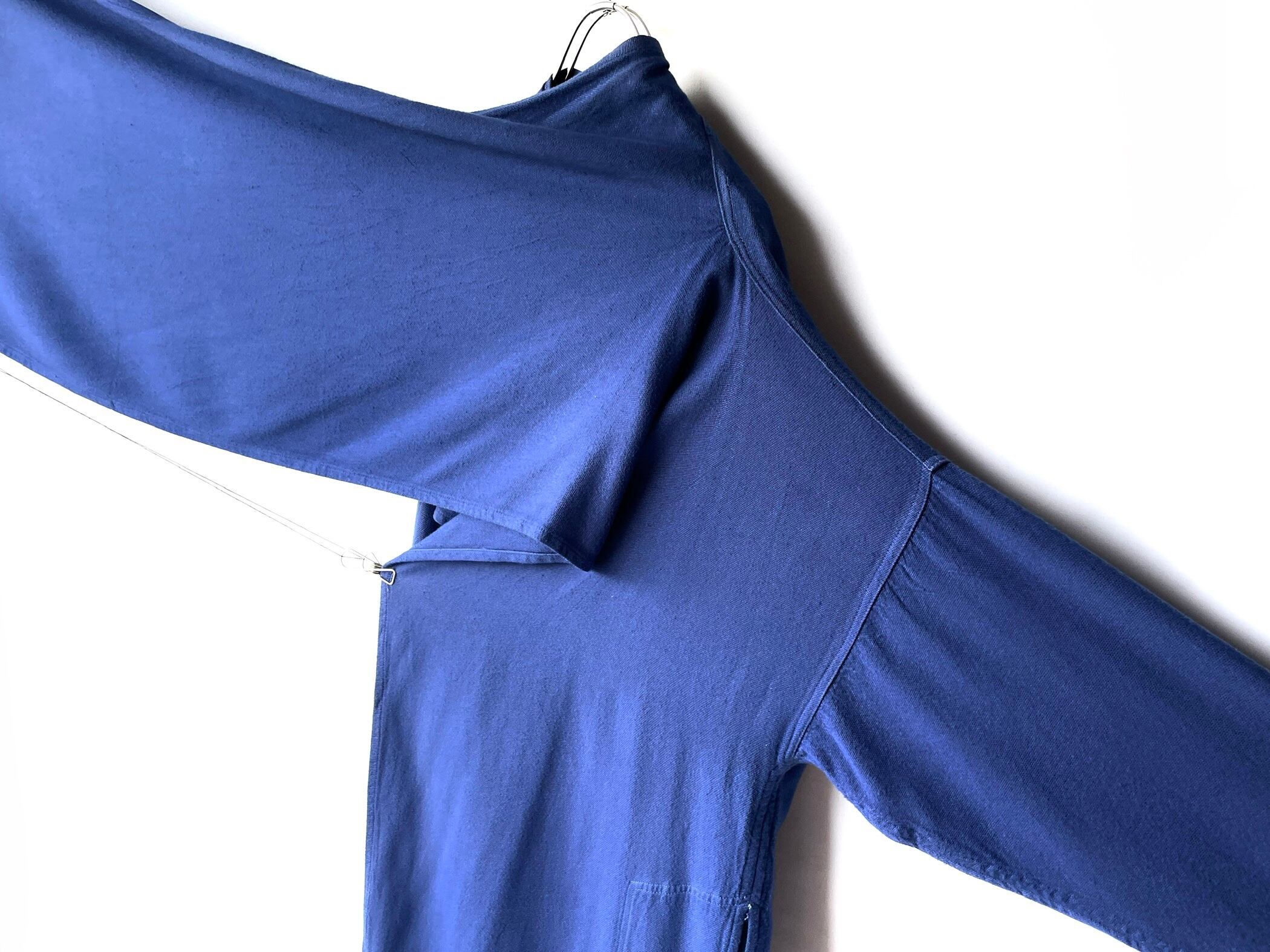 フロント約半分の生地が胸元深い位置から割れる特別なディテール