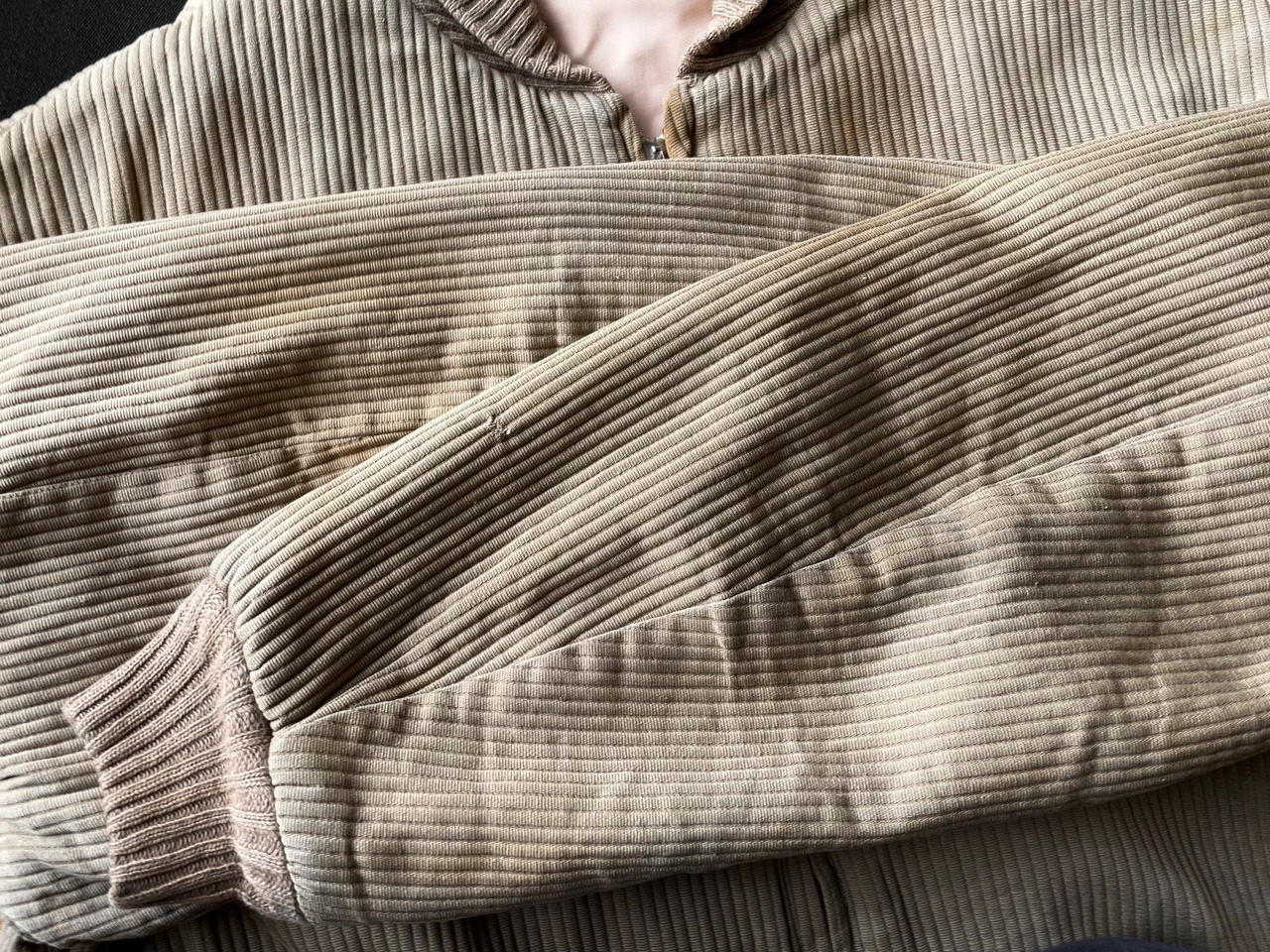 淡いベージュの太畝のコットンピケに