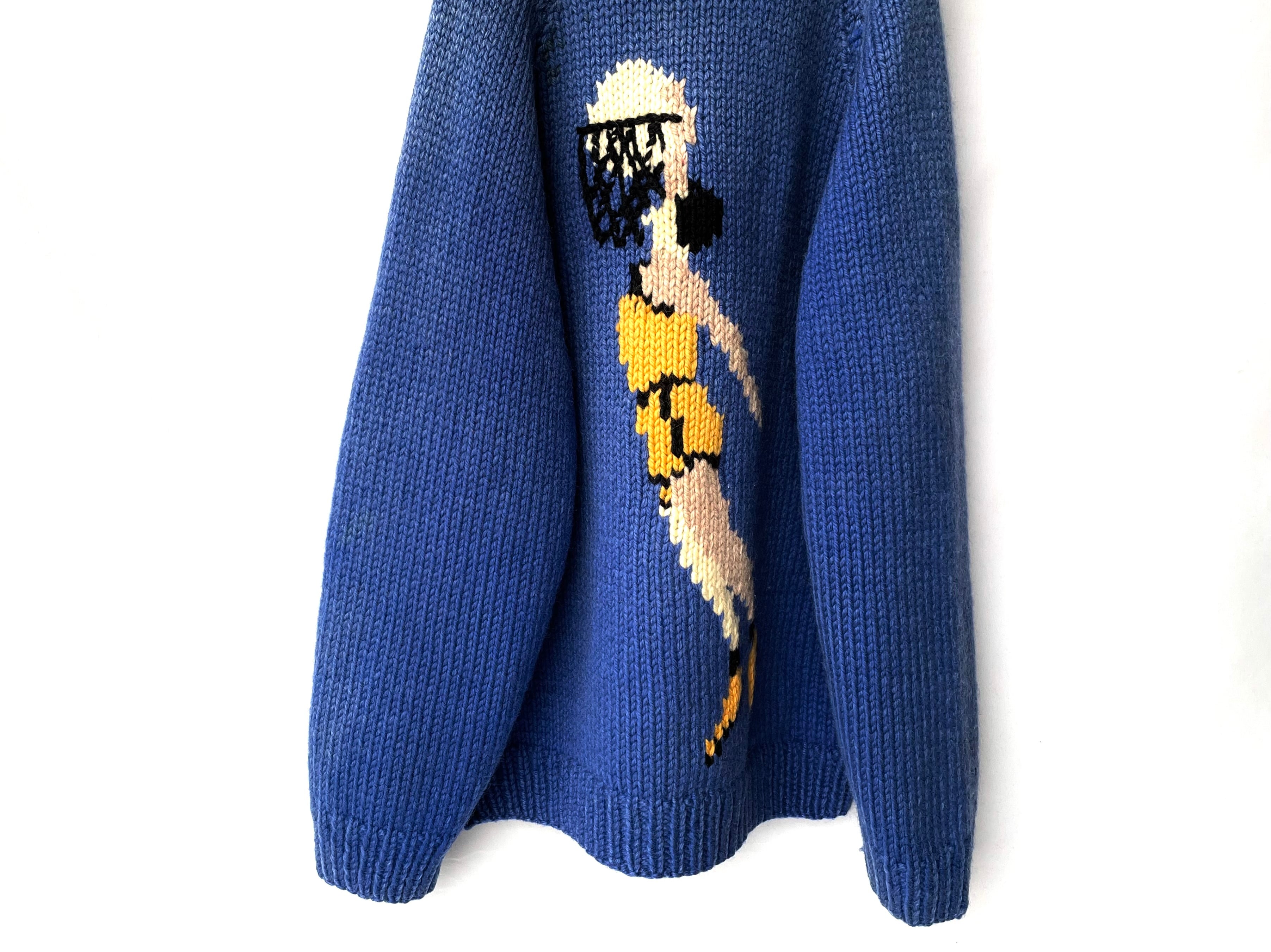 数の少ないブルーボディ、更に希少なバスケットボールモチーフのカウチンニット。