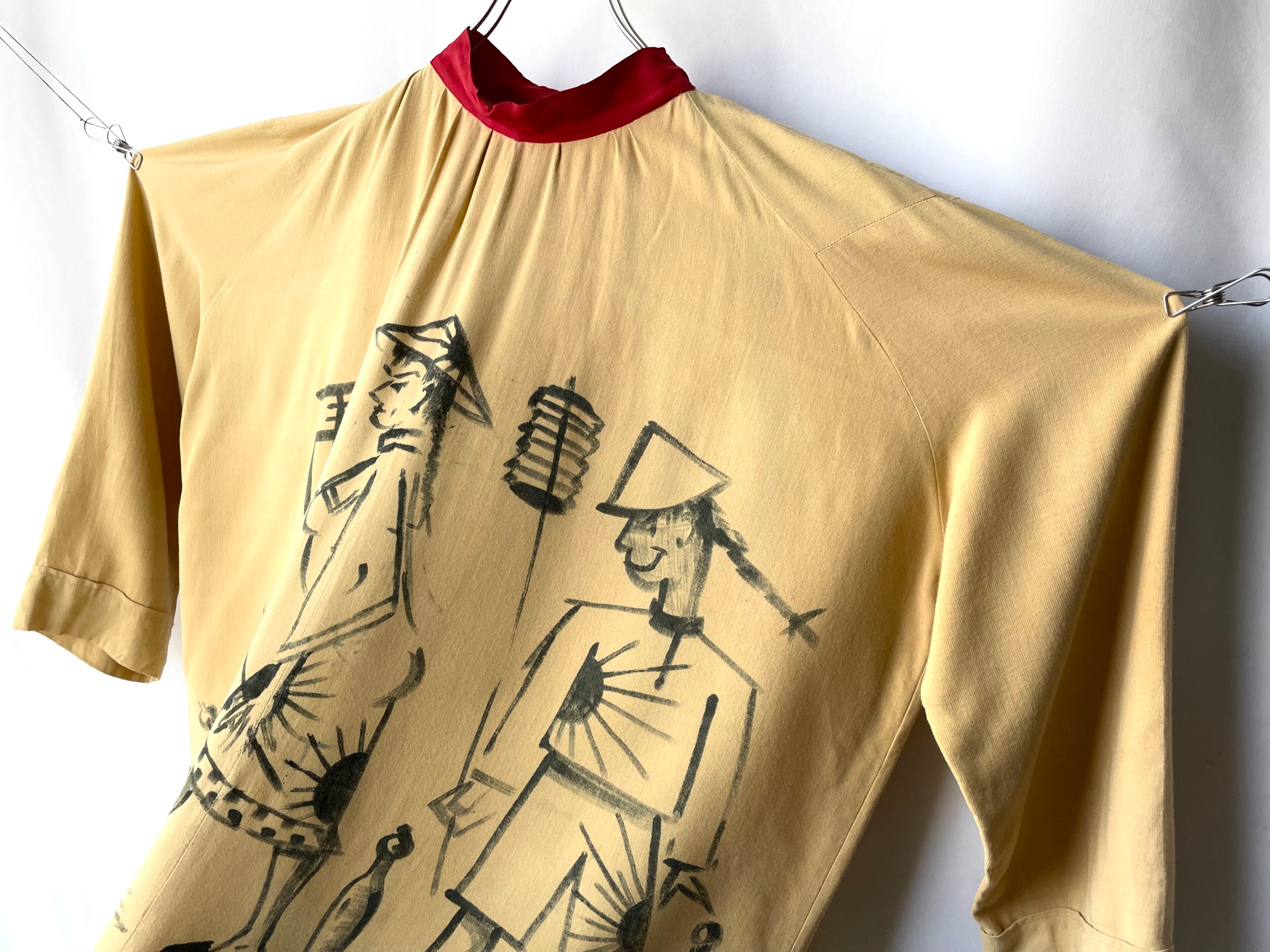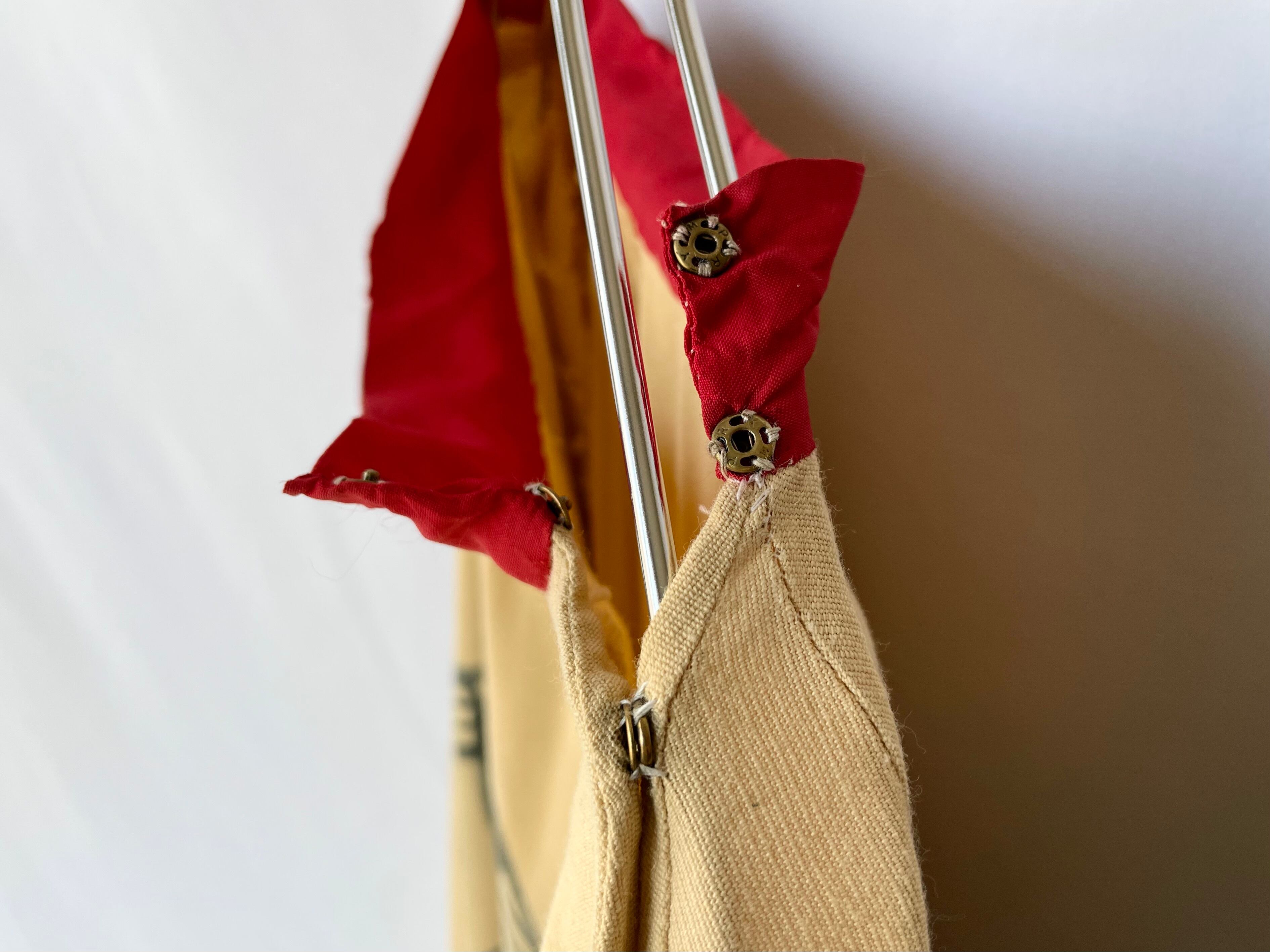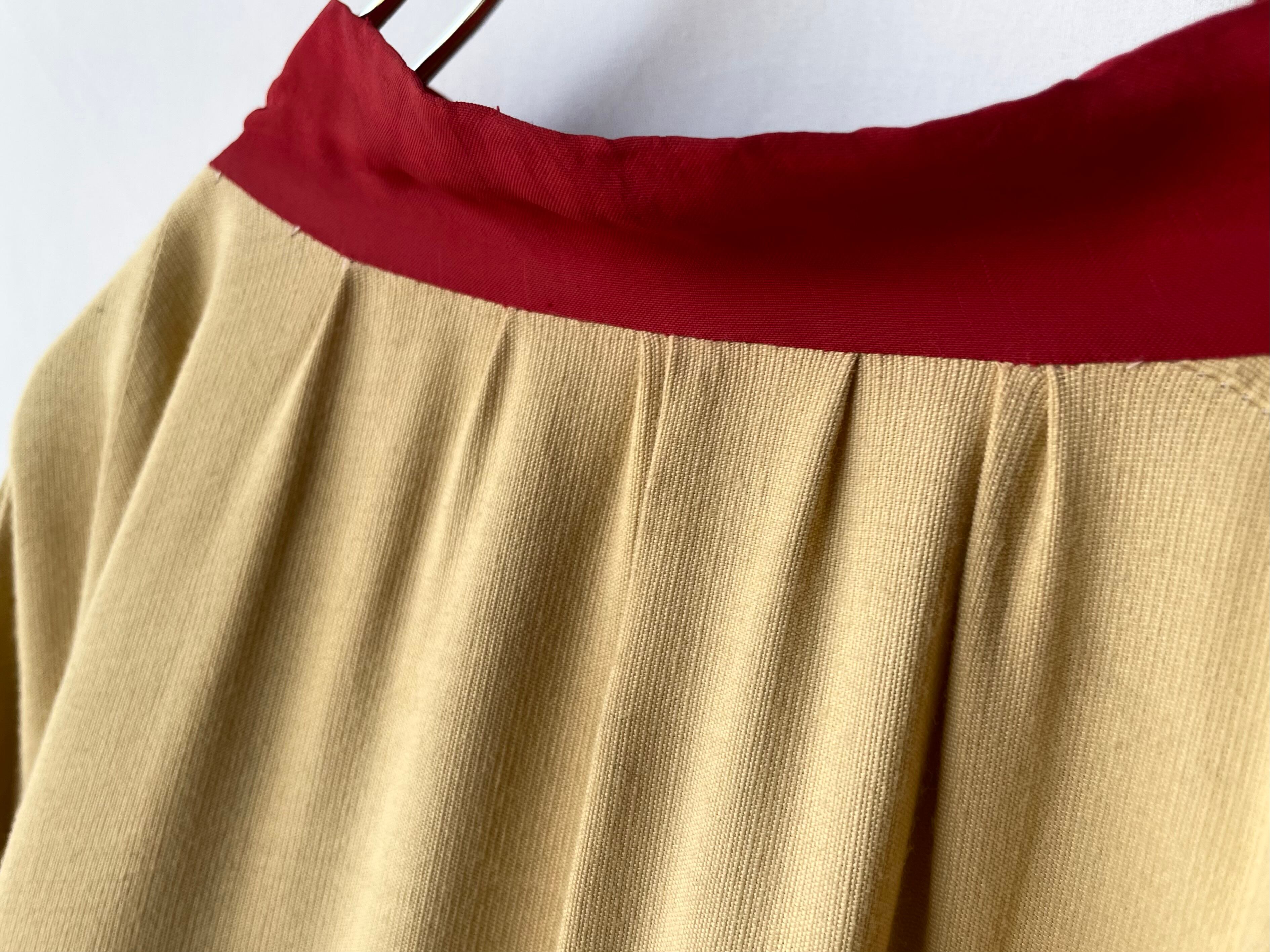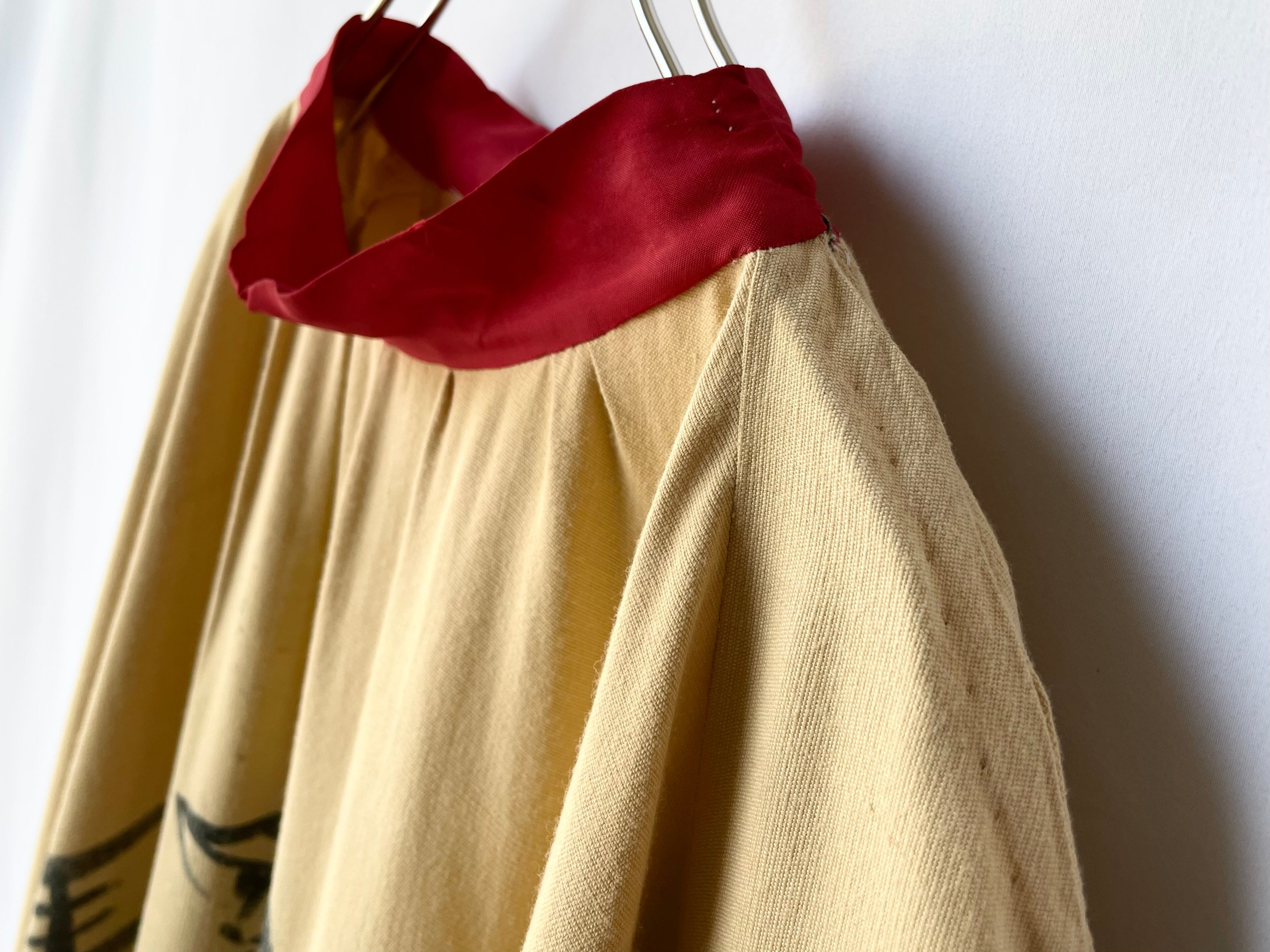 朱色のスタンドカラー×ライトなクリームベージュのボディ