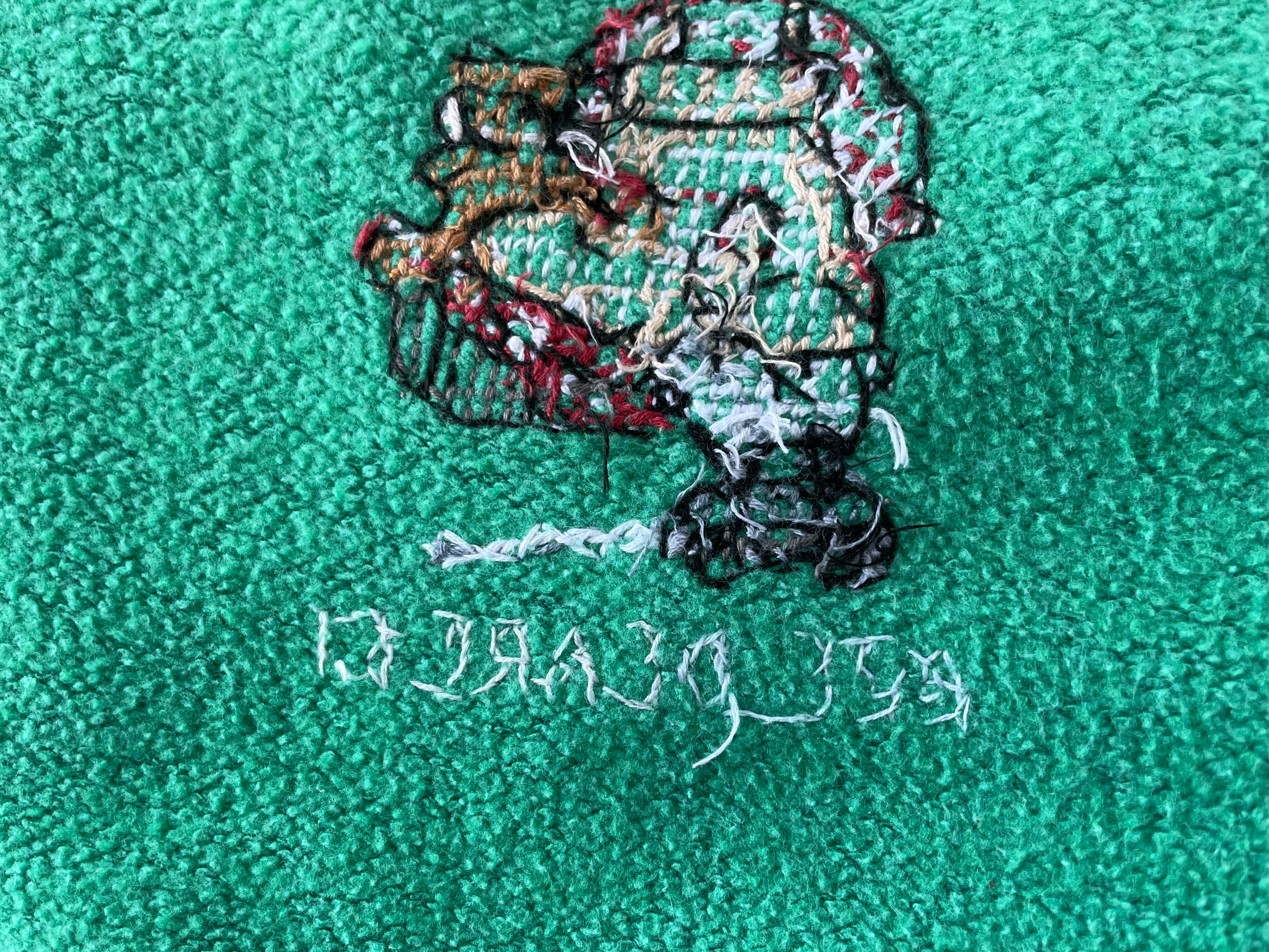 I picked it because of its good looks and how interesting it is as a product, but the hand-sewn messages and letters on it are also very nice.