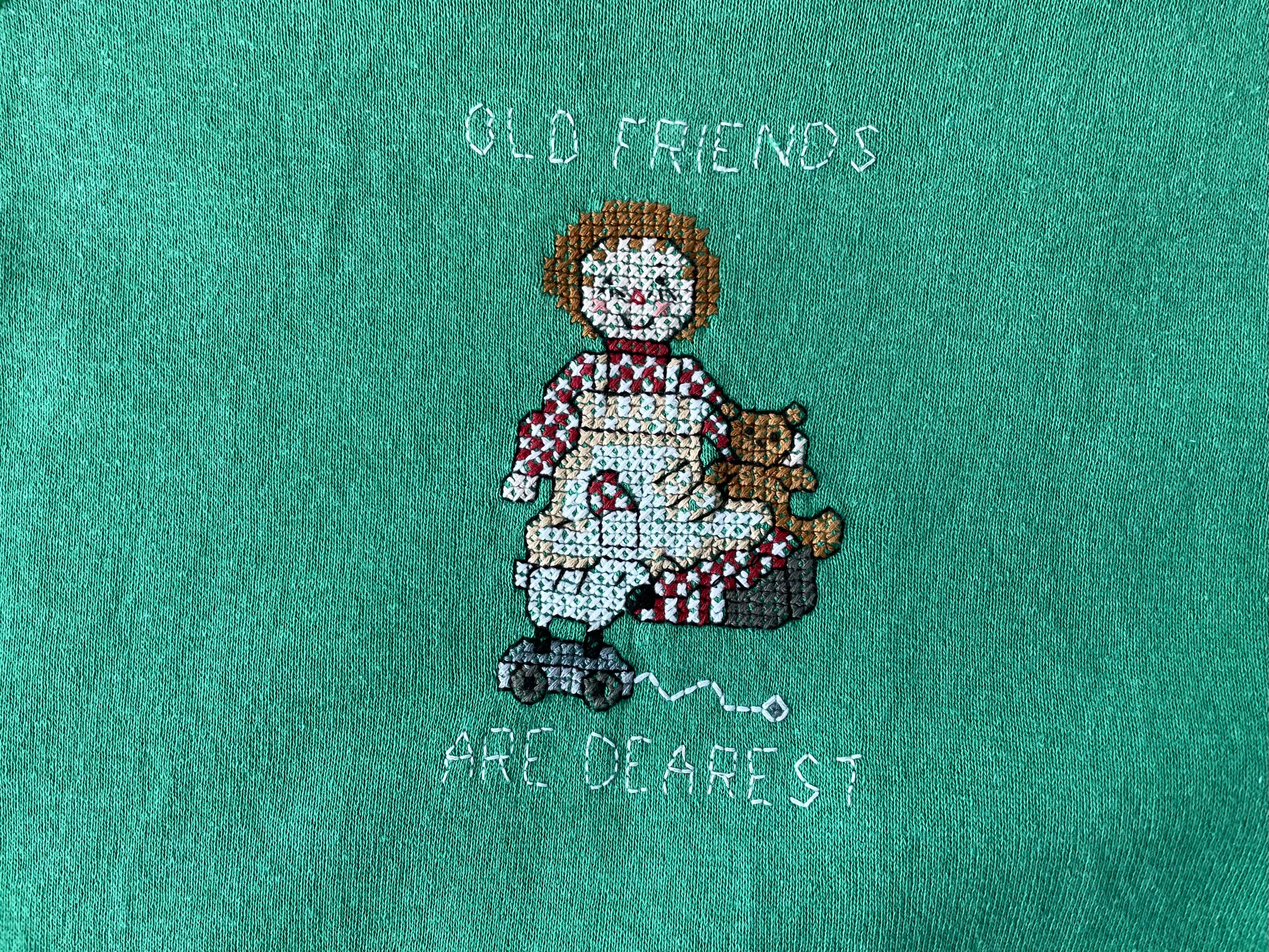 手縫いで乗せられたメッセージ、アルファベットの表情もとても良いです。
