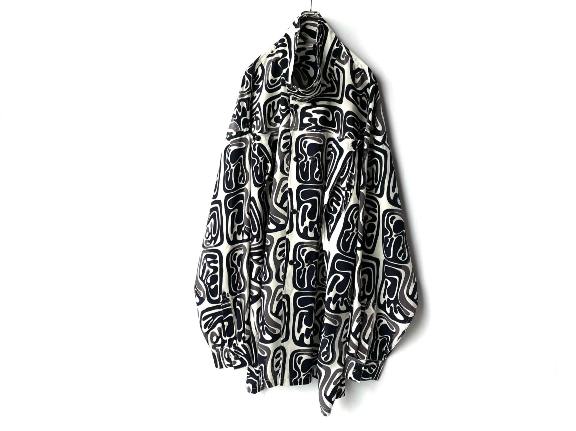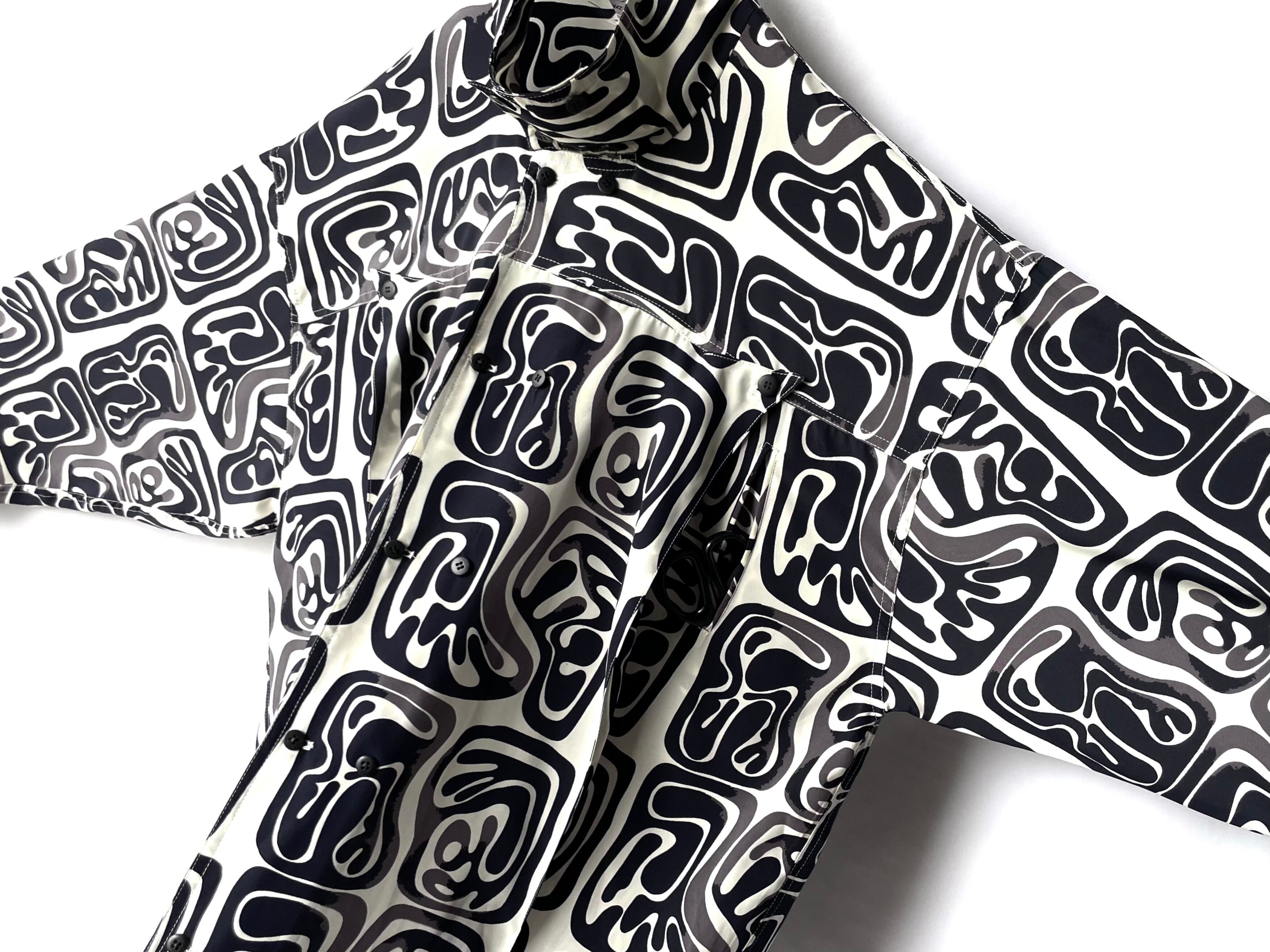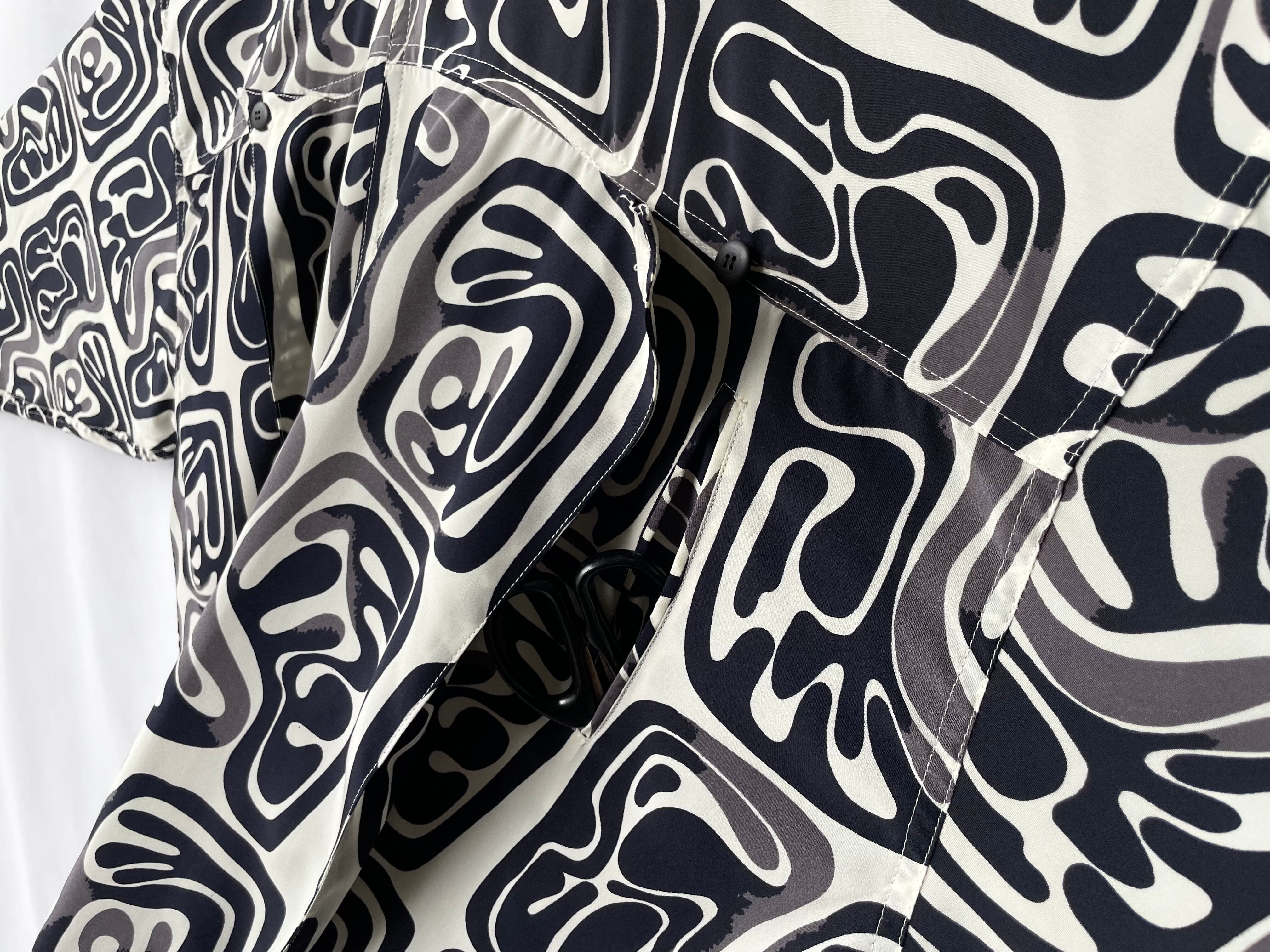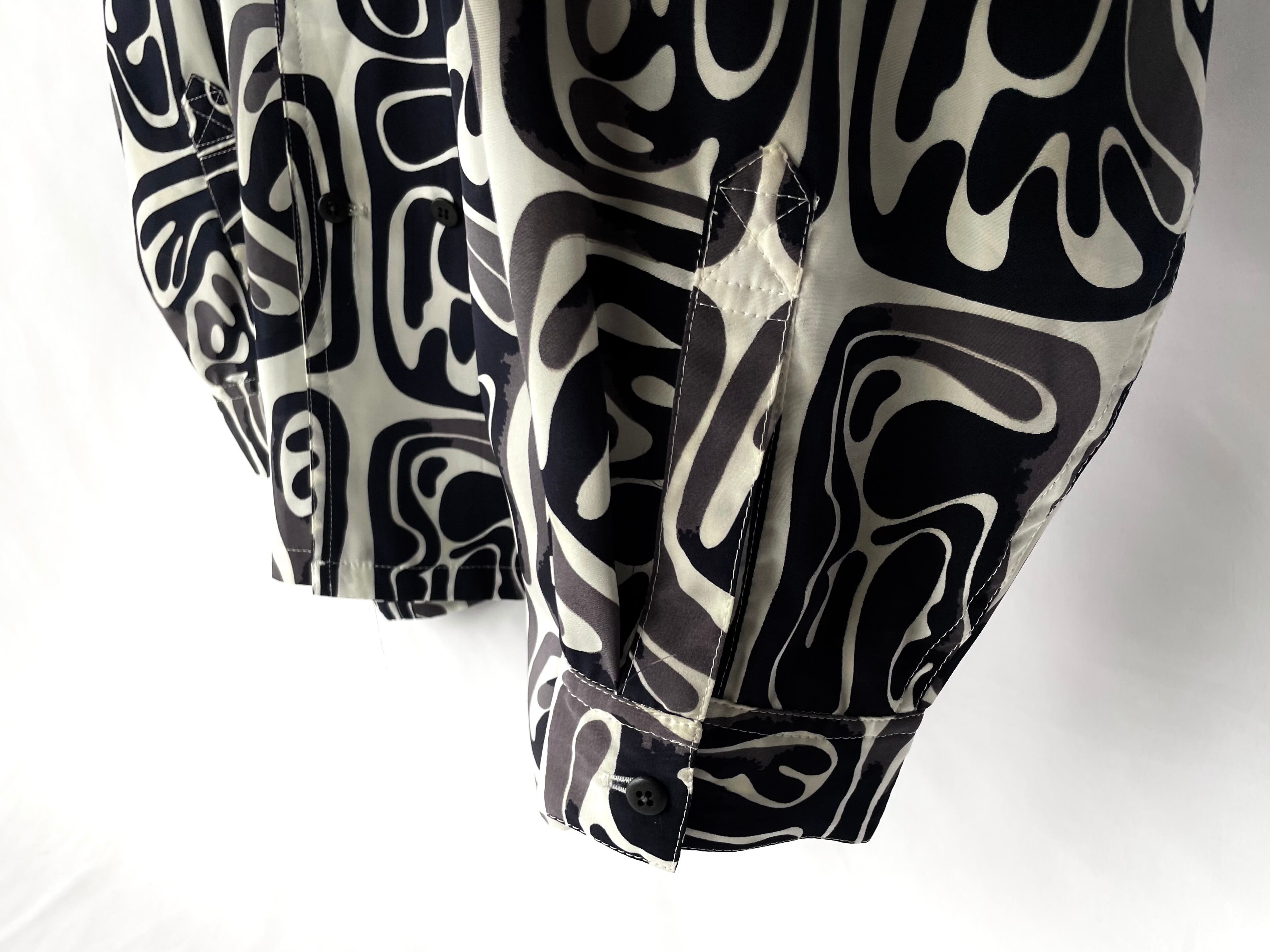 淡いアイボリーベースに、ダークネイビー×ブラウングレーの捻れたカモ柄
