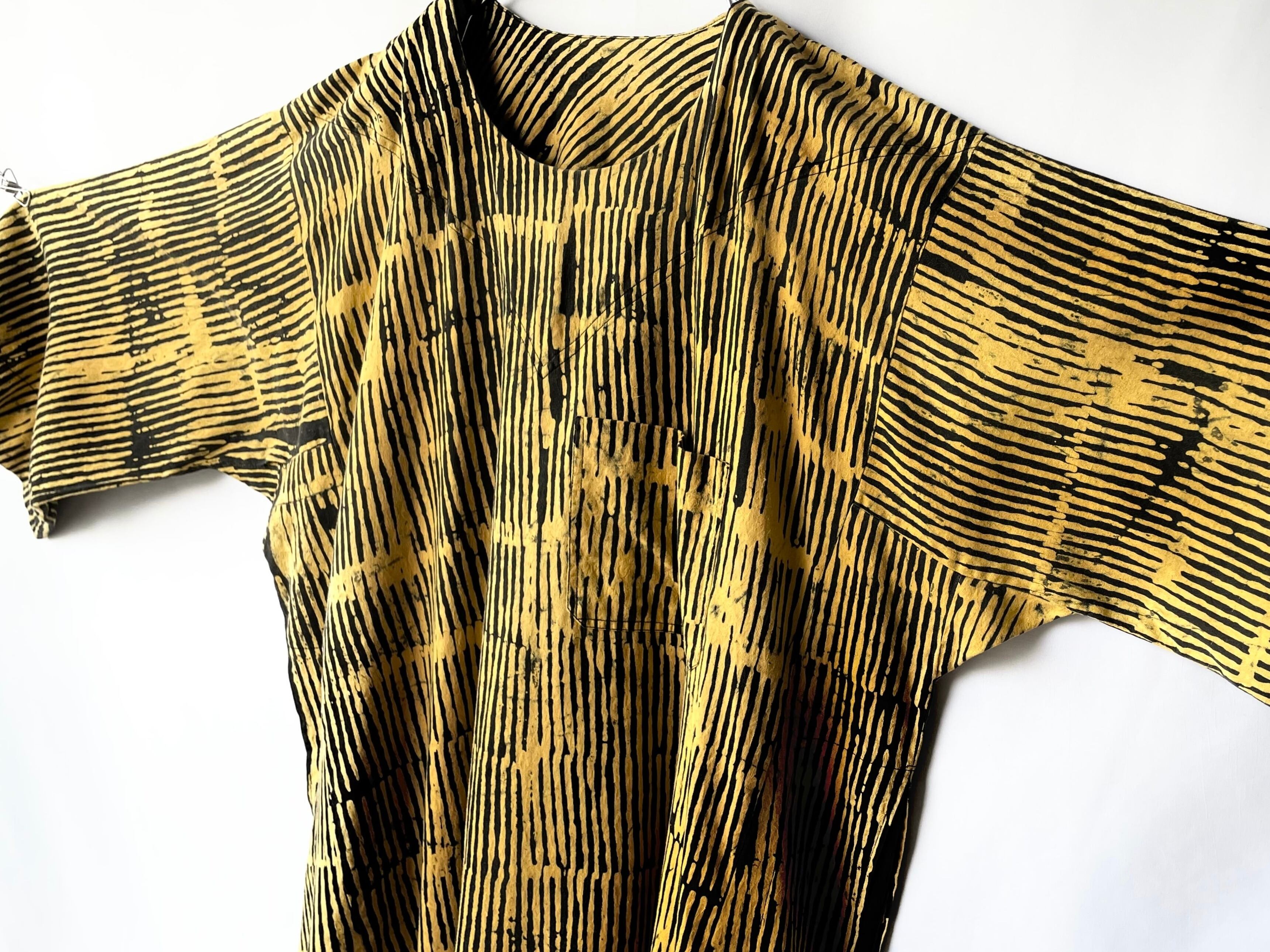 膝上のハーフ丈、たっぷりと空気を孕む丸首の貫頭衣。
