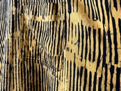 A unique all pattern in which uneven black dye is placed on a detailed weave pattern like a handprint or tree.