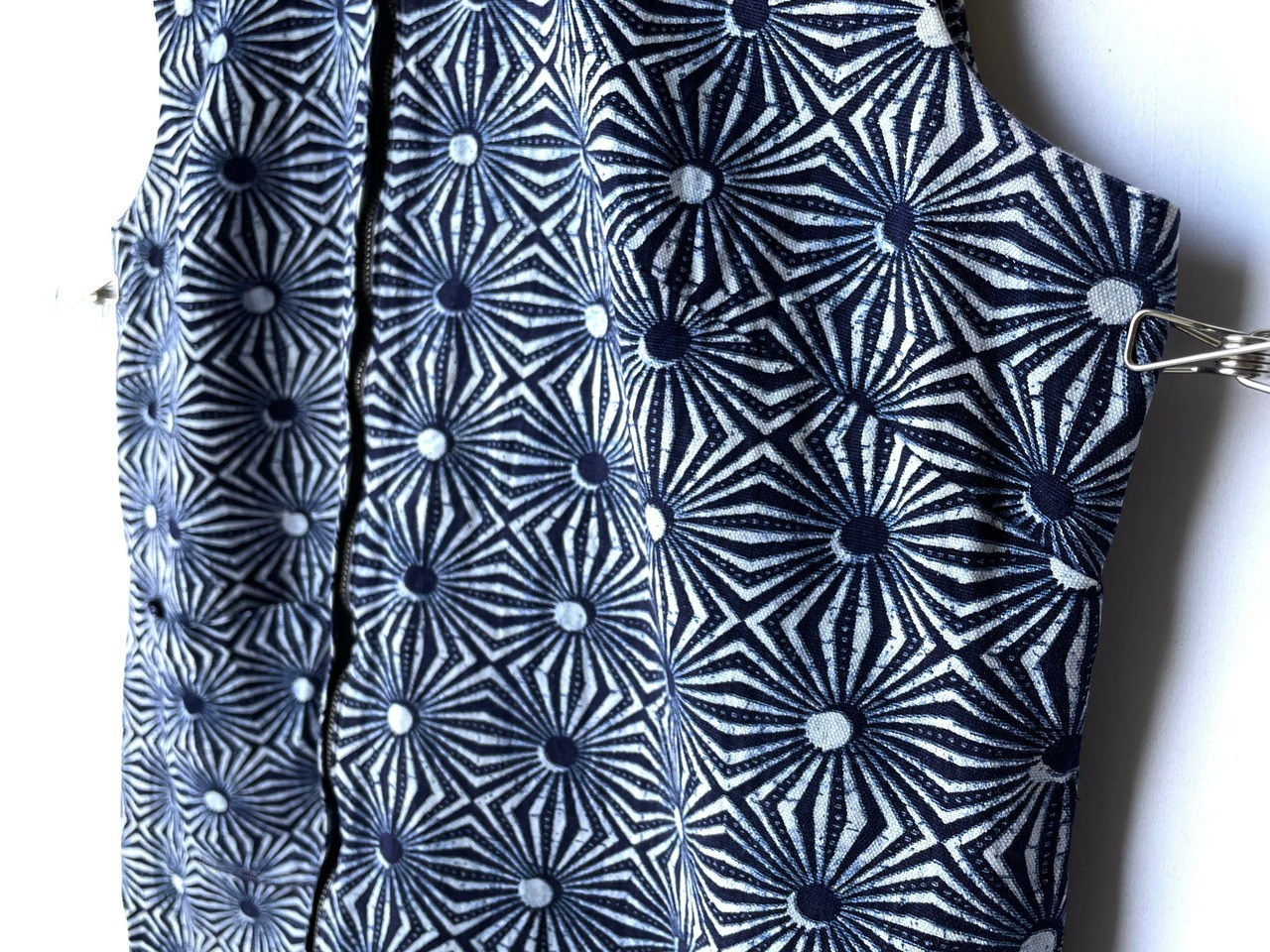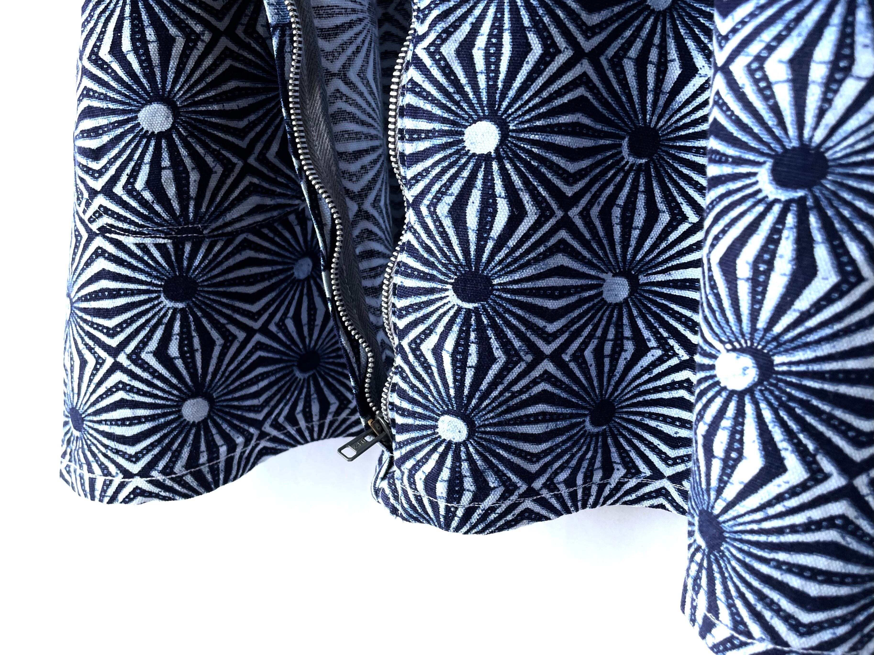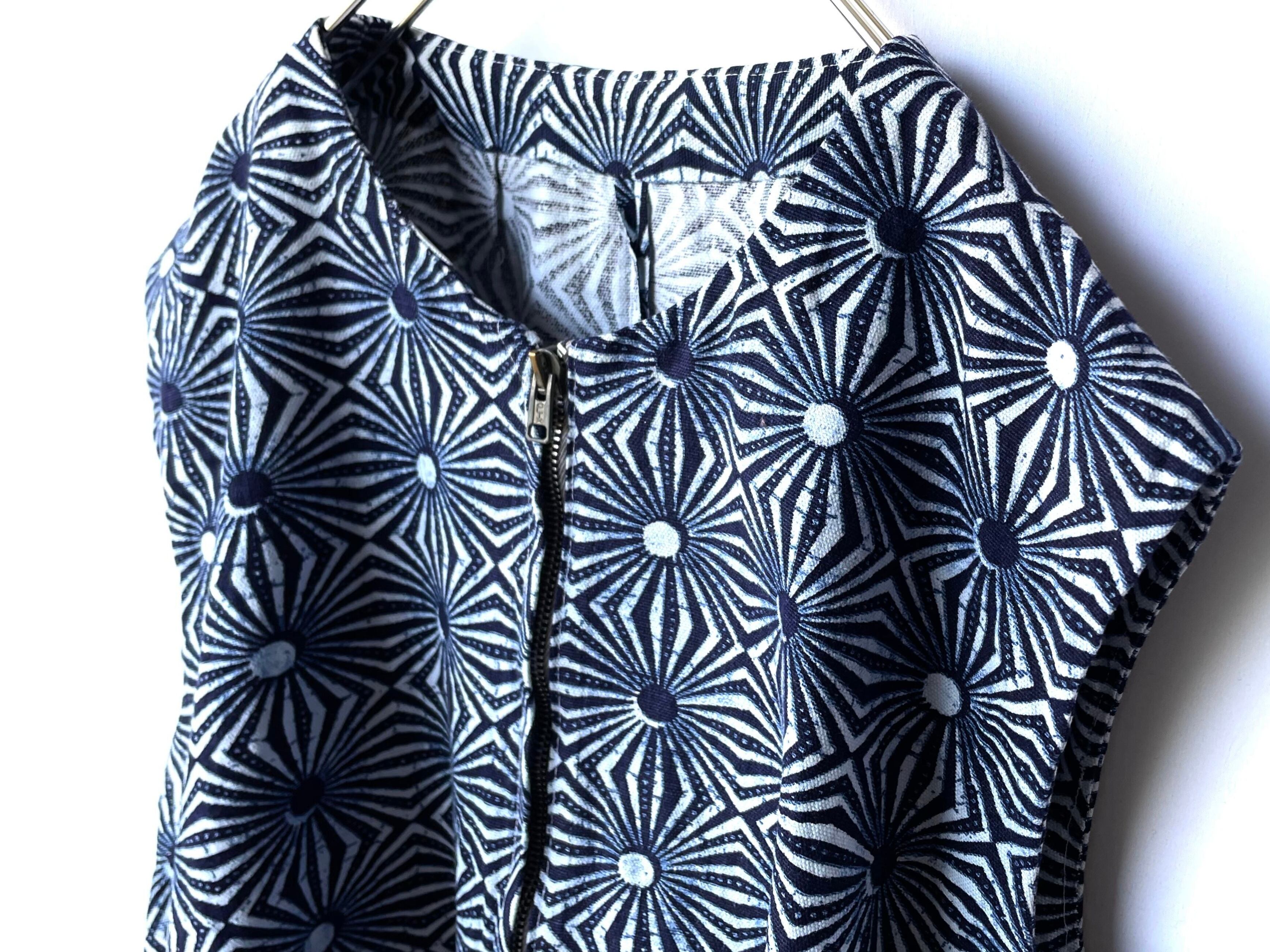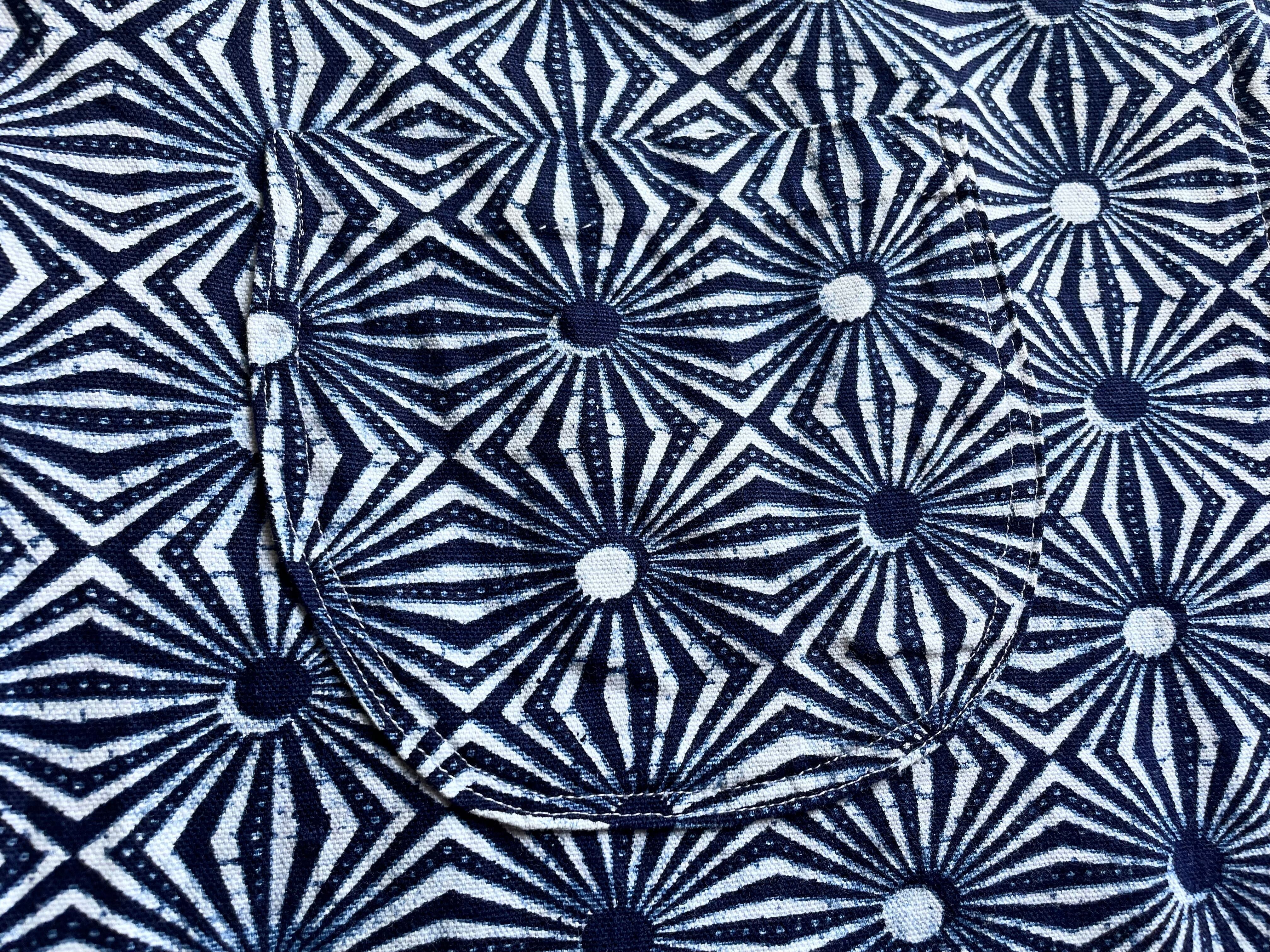 素材は恐らくオールコットン、白/紺の細かなバティックモチーフ