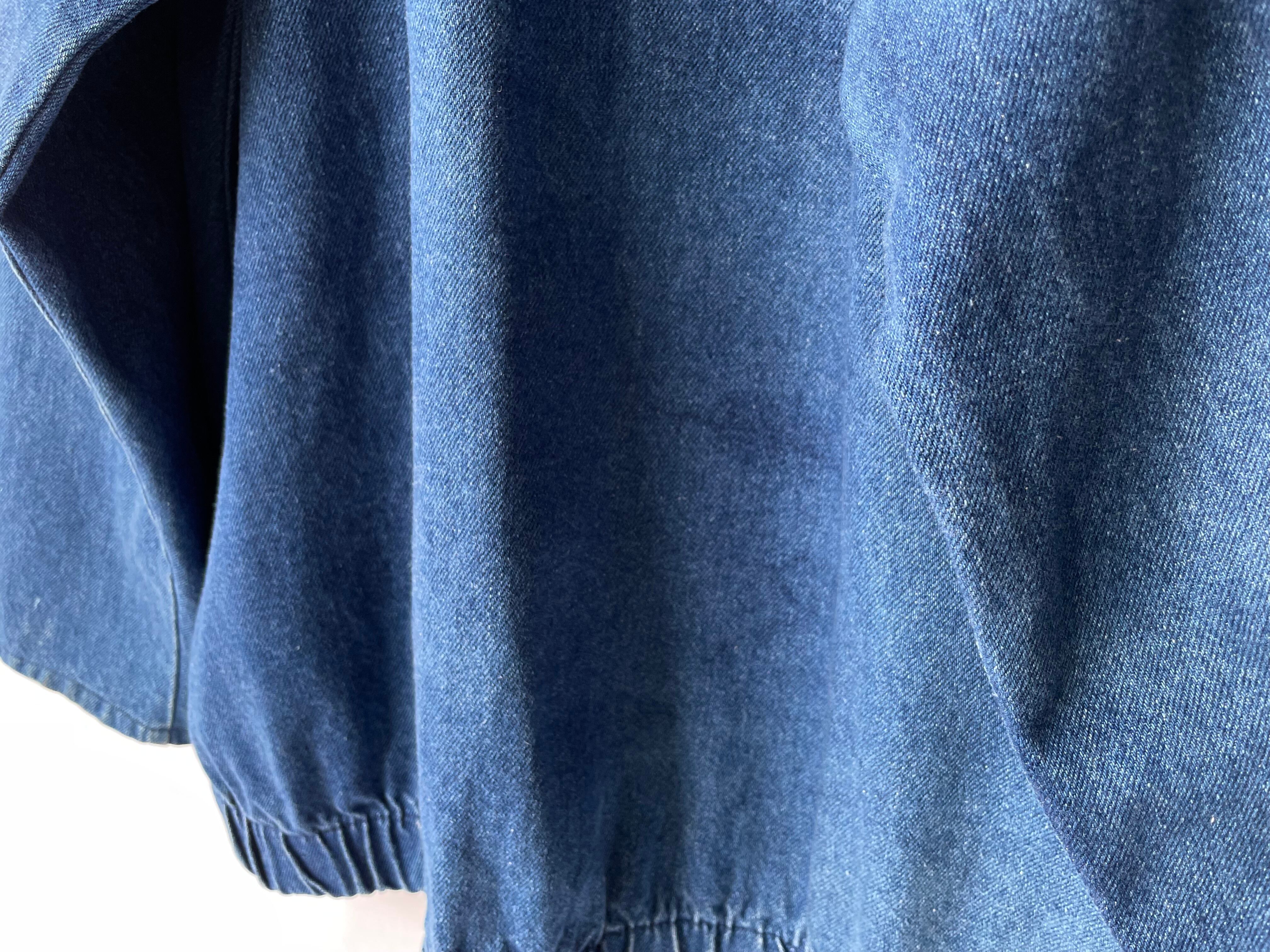素晴らしい表情のデニム地で仕立てられたスモックジャケット。