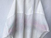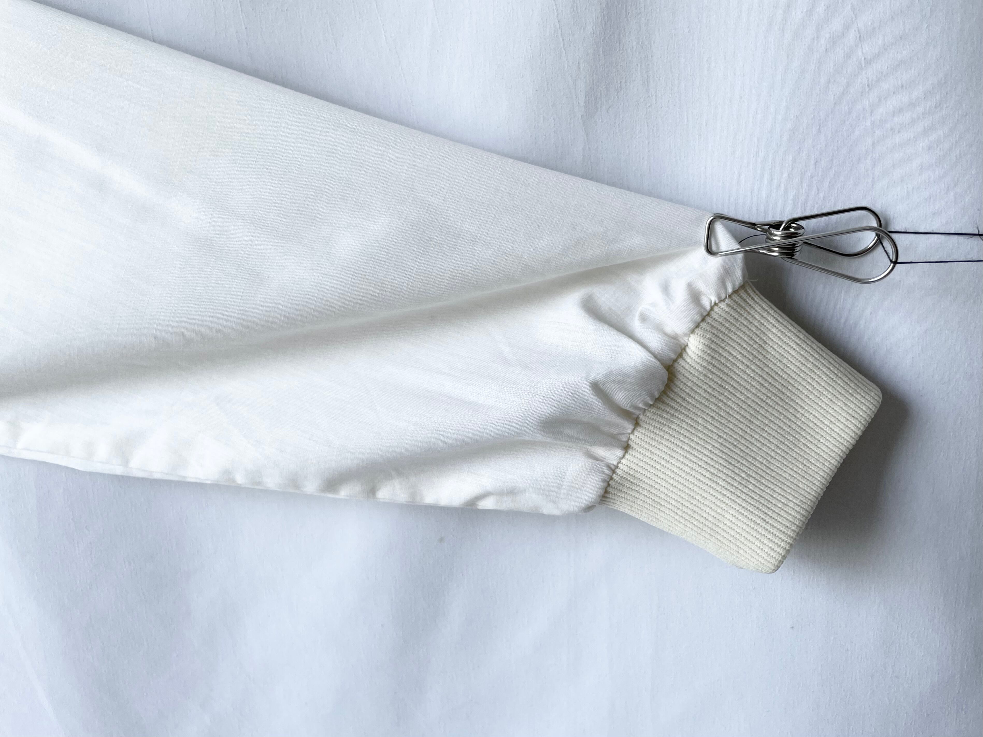 緩く湾曲したラウンドカットヘム、袖口は同色のリブ留め。