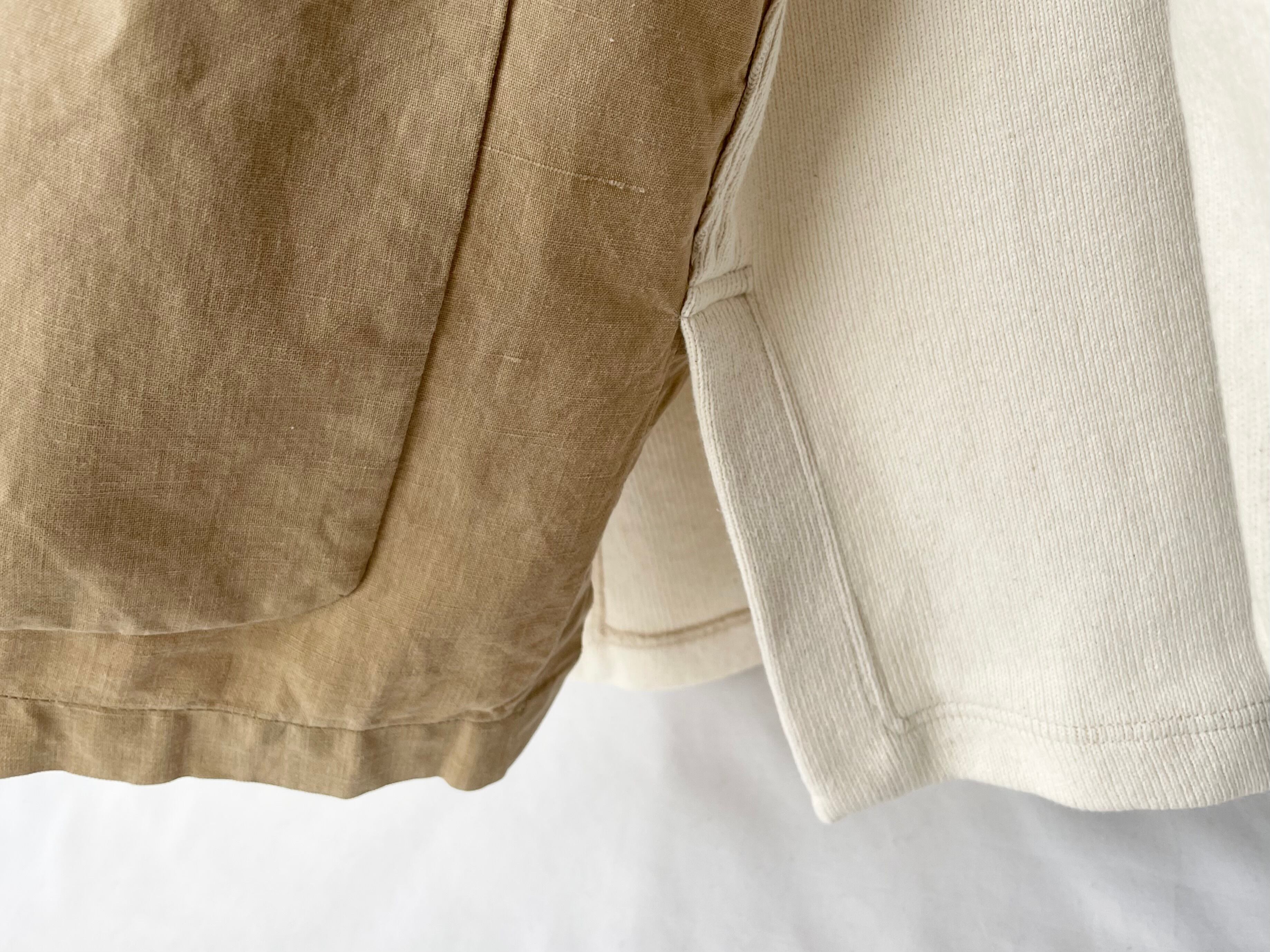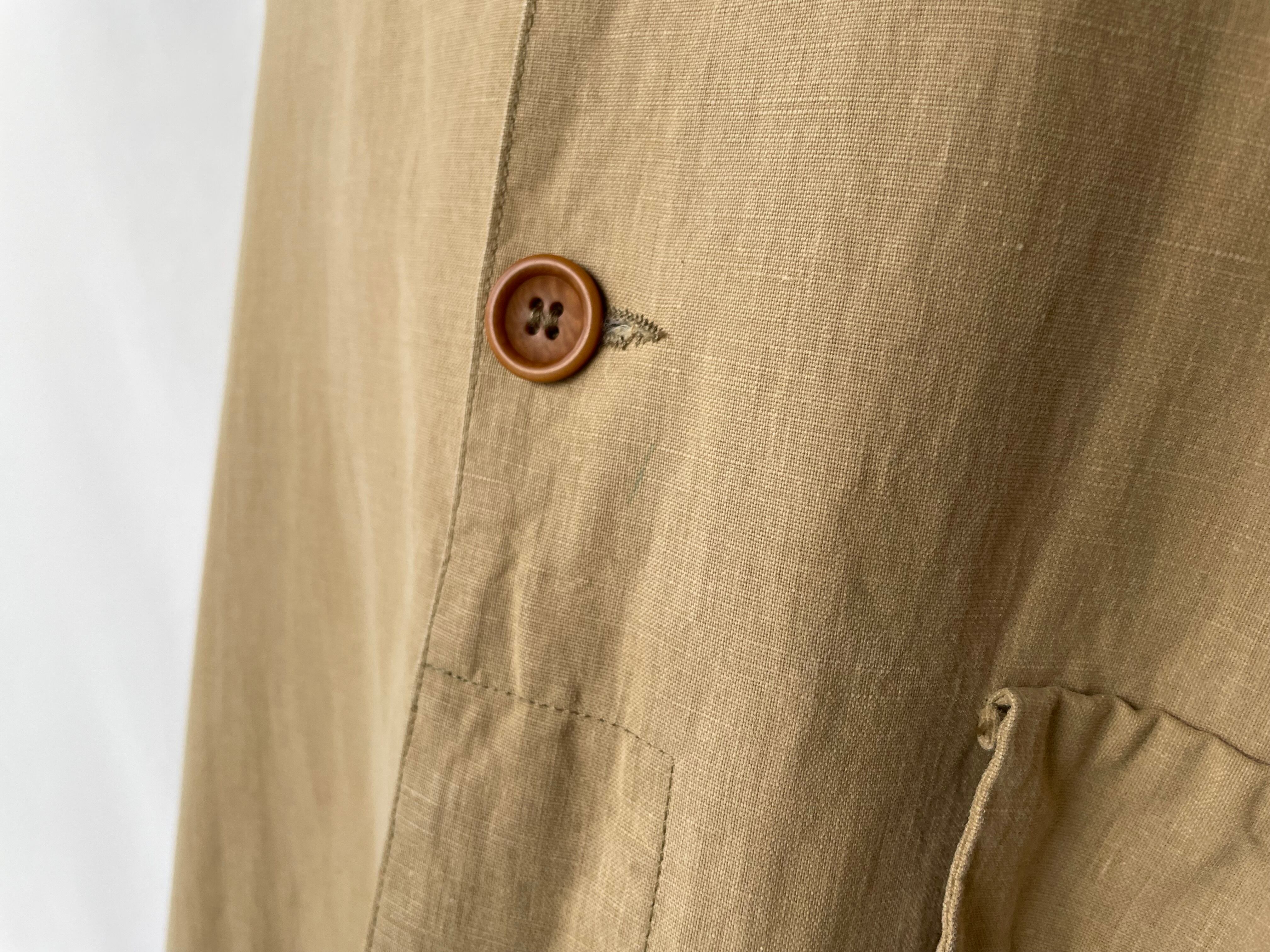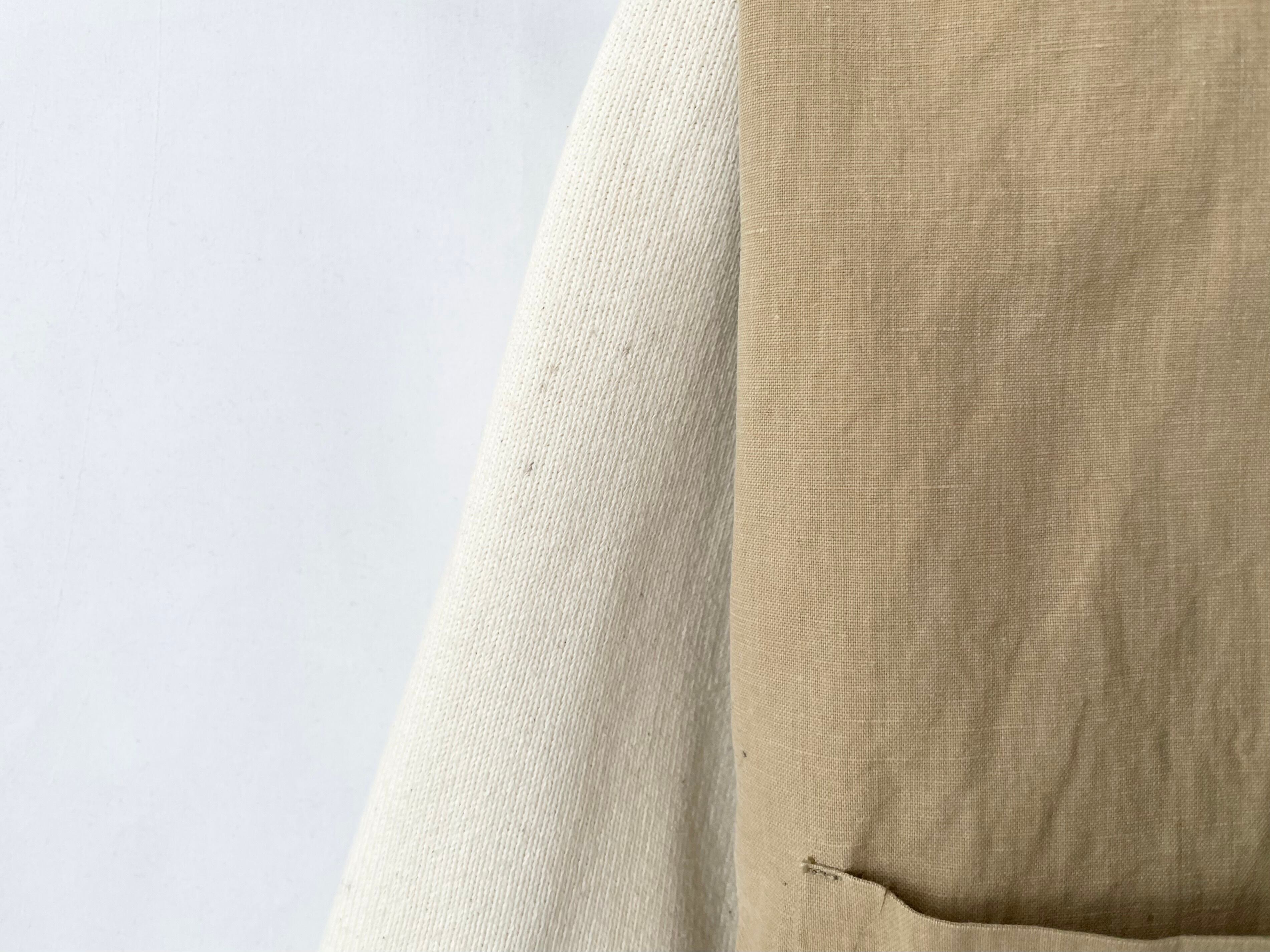 適度な張りと厚み/鈍い艶のある生地は、恐らく薄い樹脂コーティングが乗ったピュアリネン。