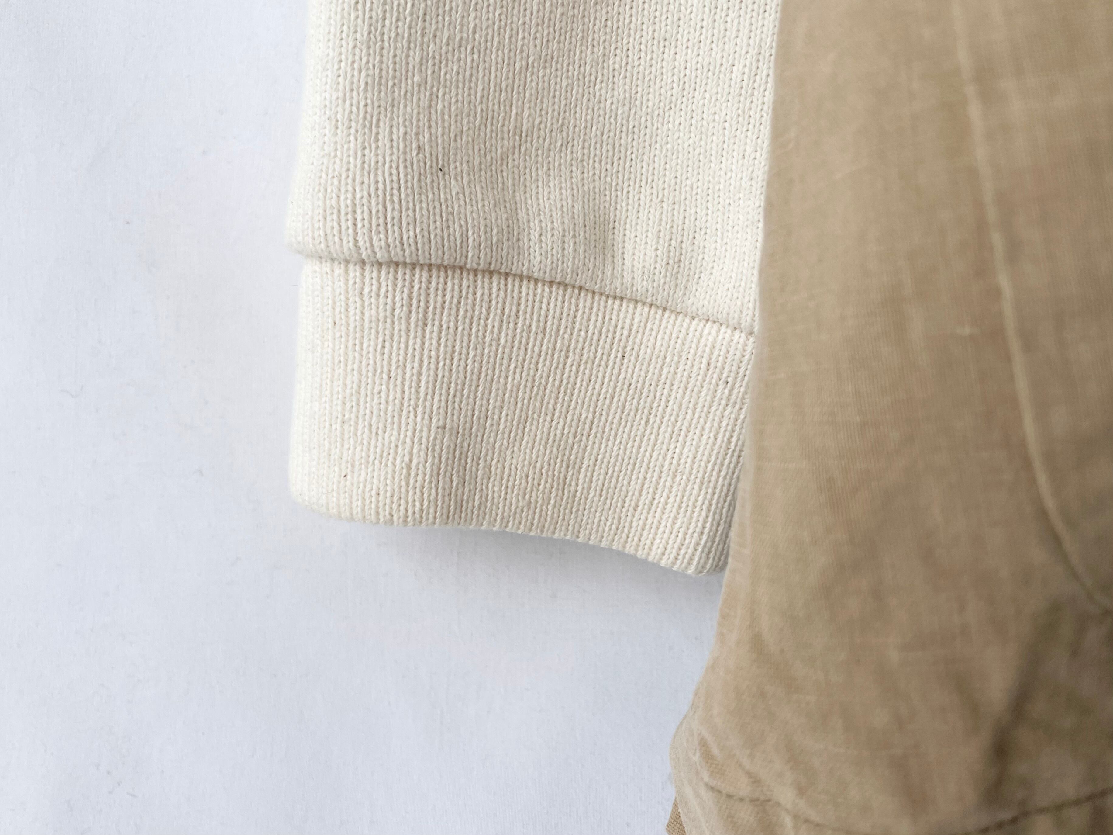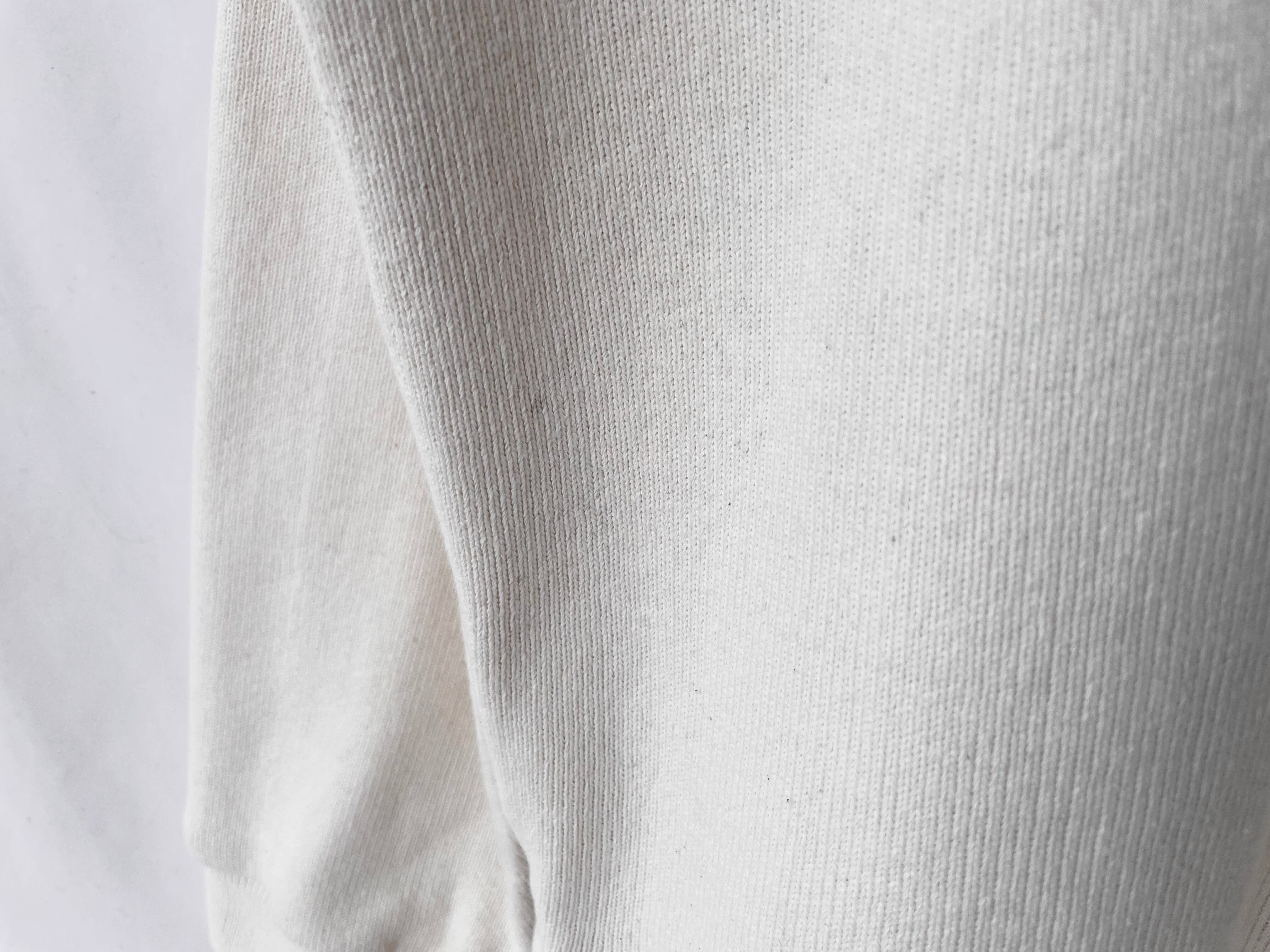 柔らかくぎっしりと目の詰んだ編み地は、オールコットンによる物だと推測します。