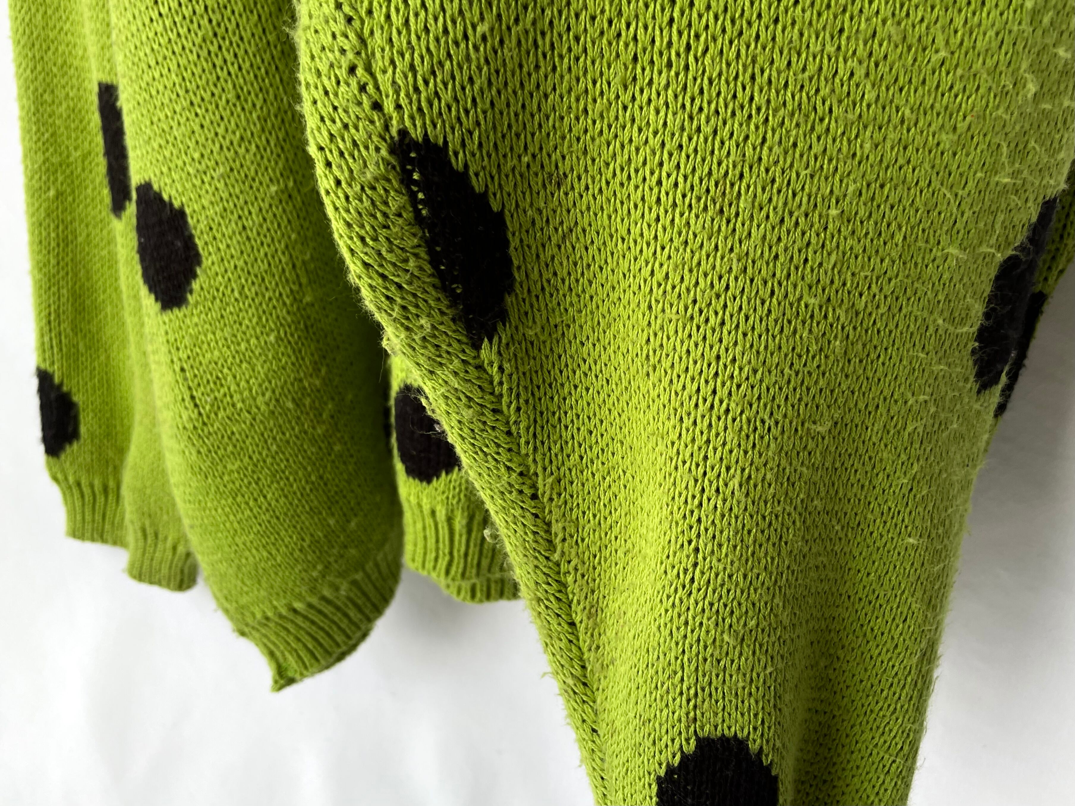 ライトグリーンベースに黒糸が乗った大判なドット柄。
