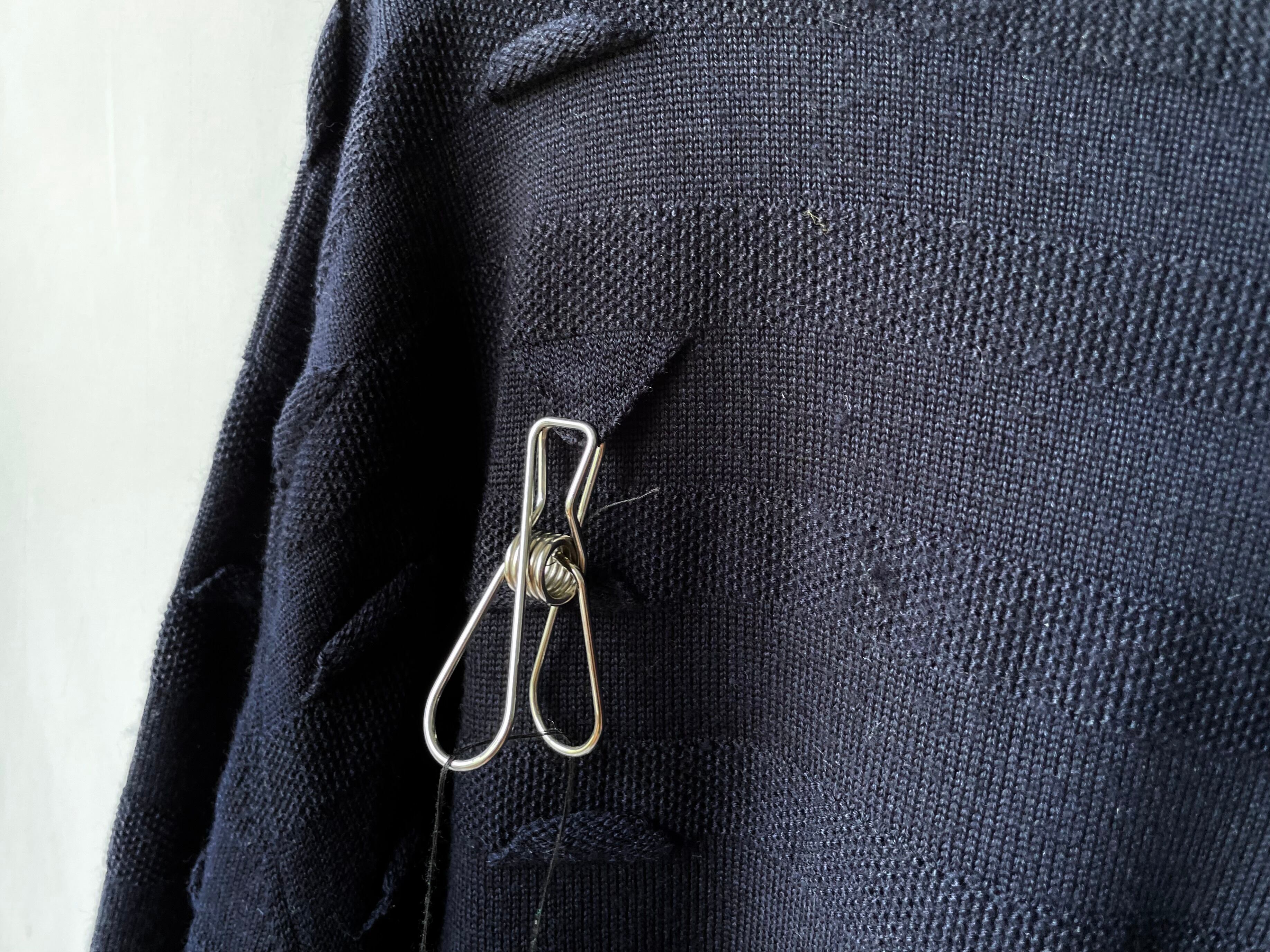 Due to the characteristics of small knit parts, almost all parts are rounded into a cylindrical shape, but there are a few parts on the front where the bottom corners are sewn, making the small triangular design easier to understand. .
