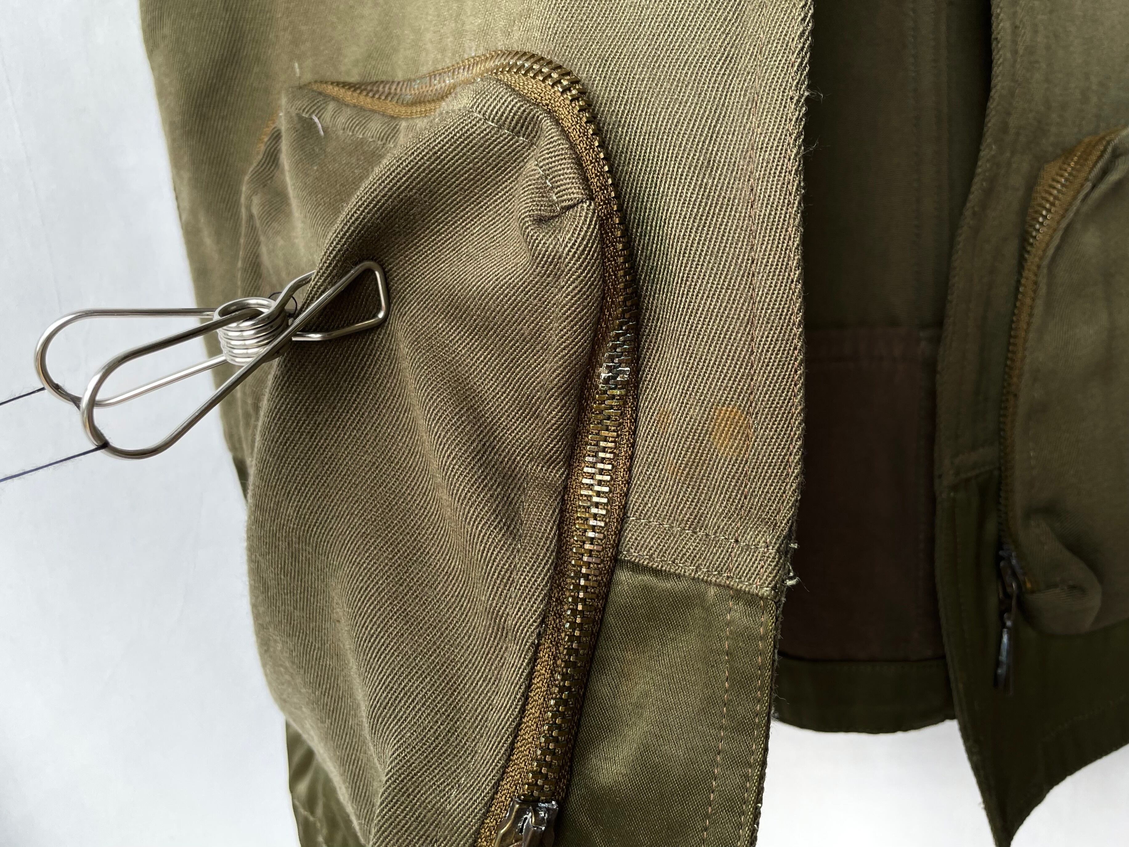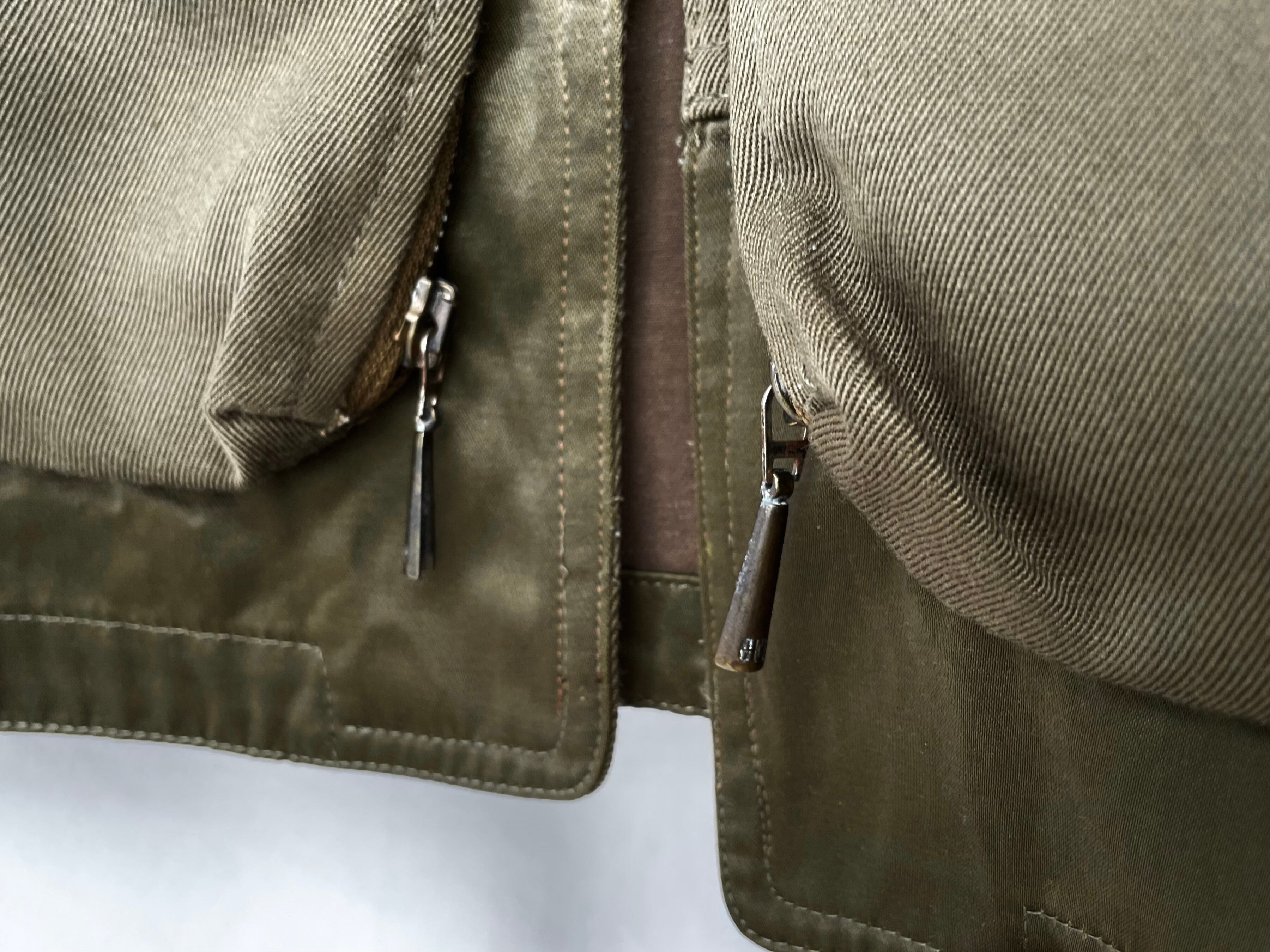 There are light stains, scratches and rust stains on the pocket zip as shown in the images.