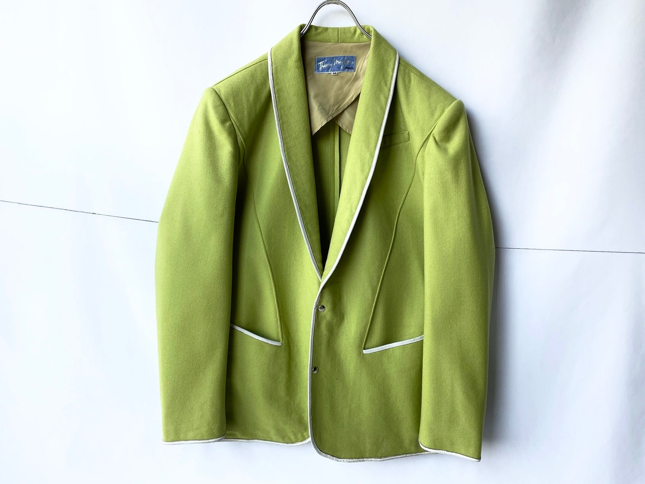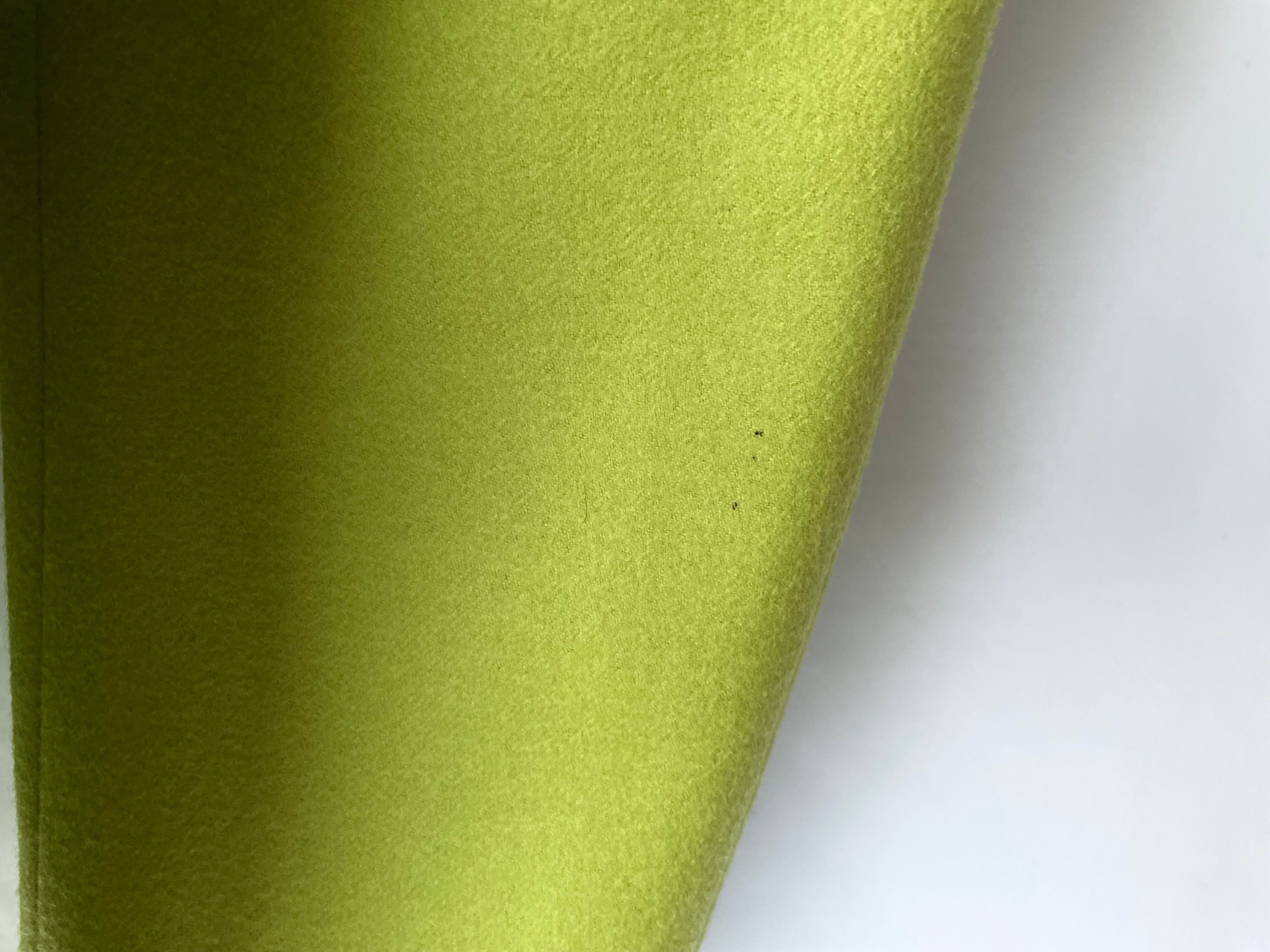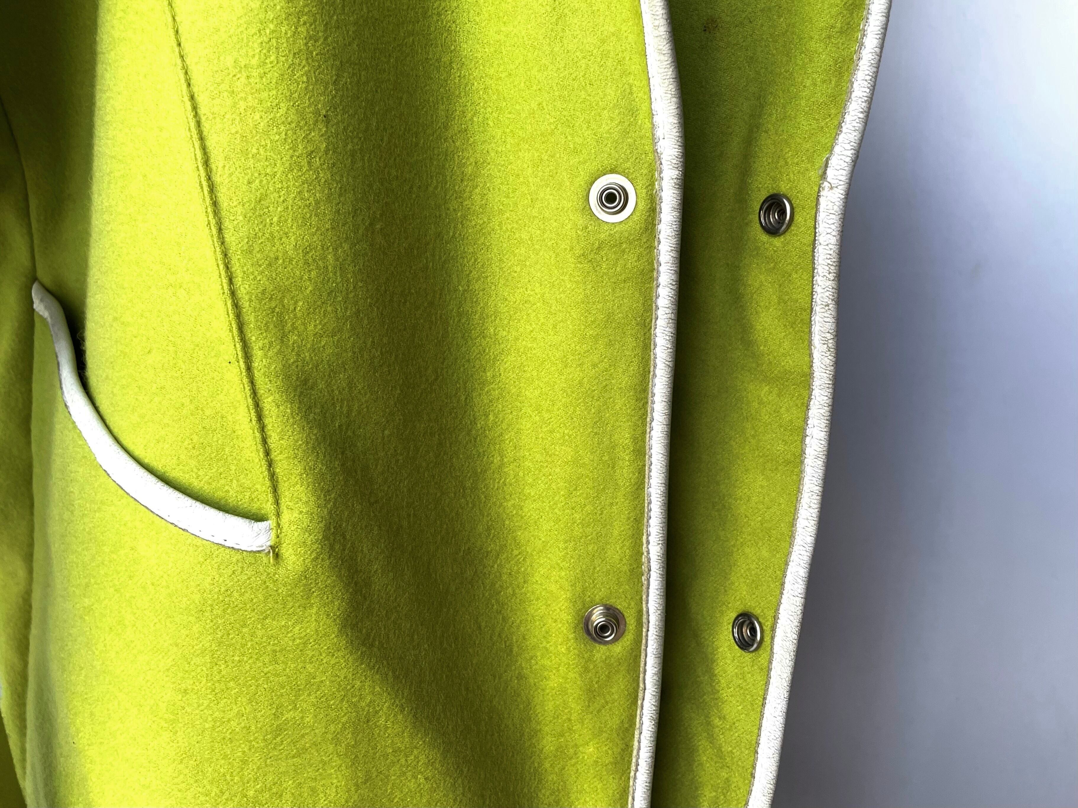 白のパイピングが映える鮮やかなライトグリーンのウール地。