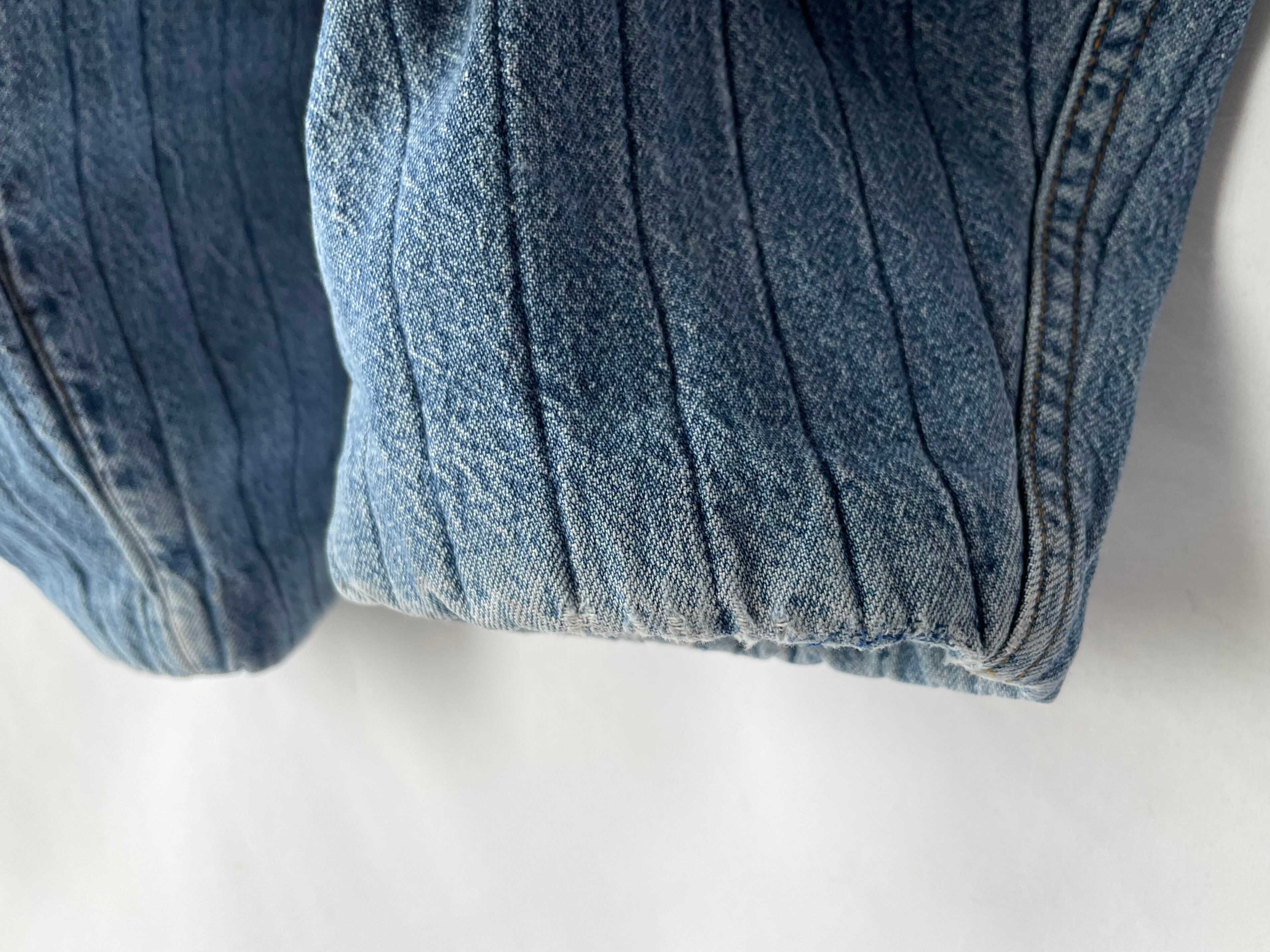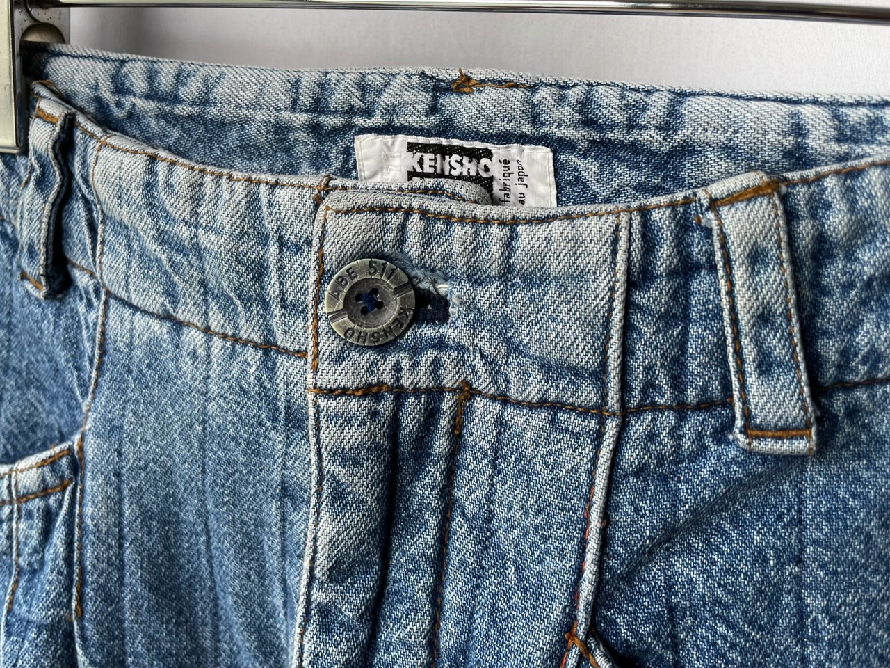 There are small scratches, cracking on the button and some color unevenness unique to denim fabric as shown in the images.