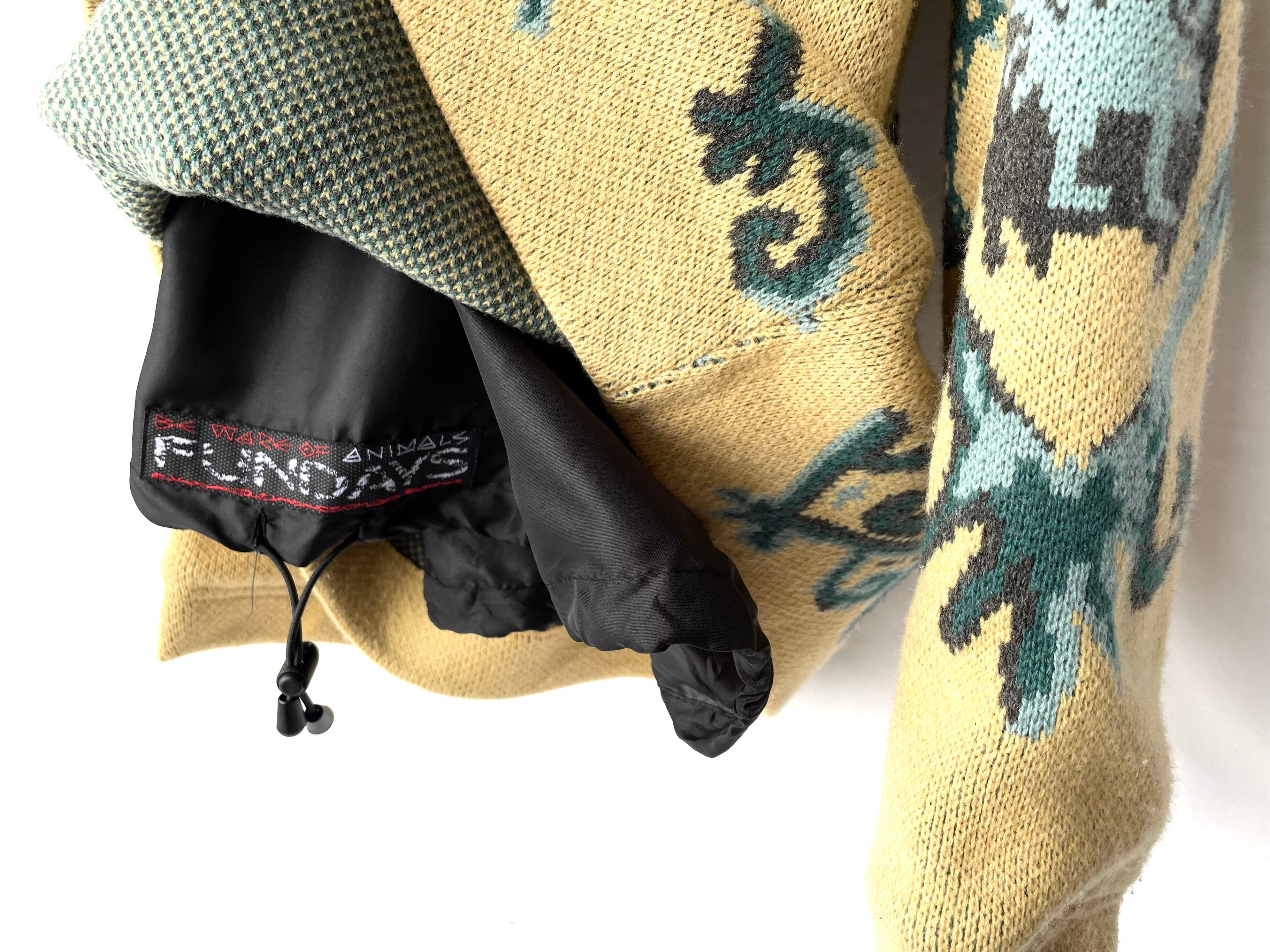 真冬に一枚で成立するニットウェアでこの配色は中々出会えないと思います。
