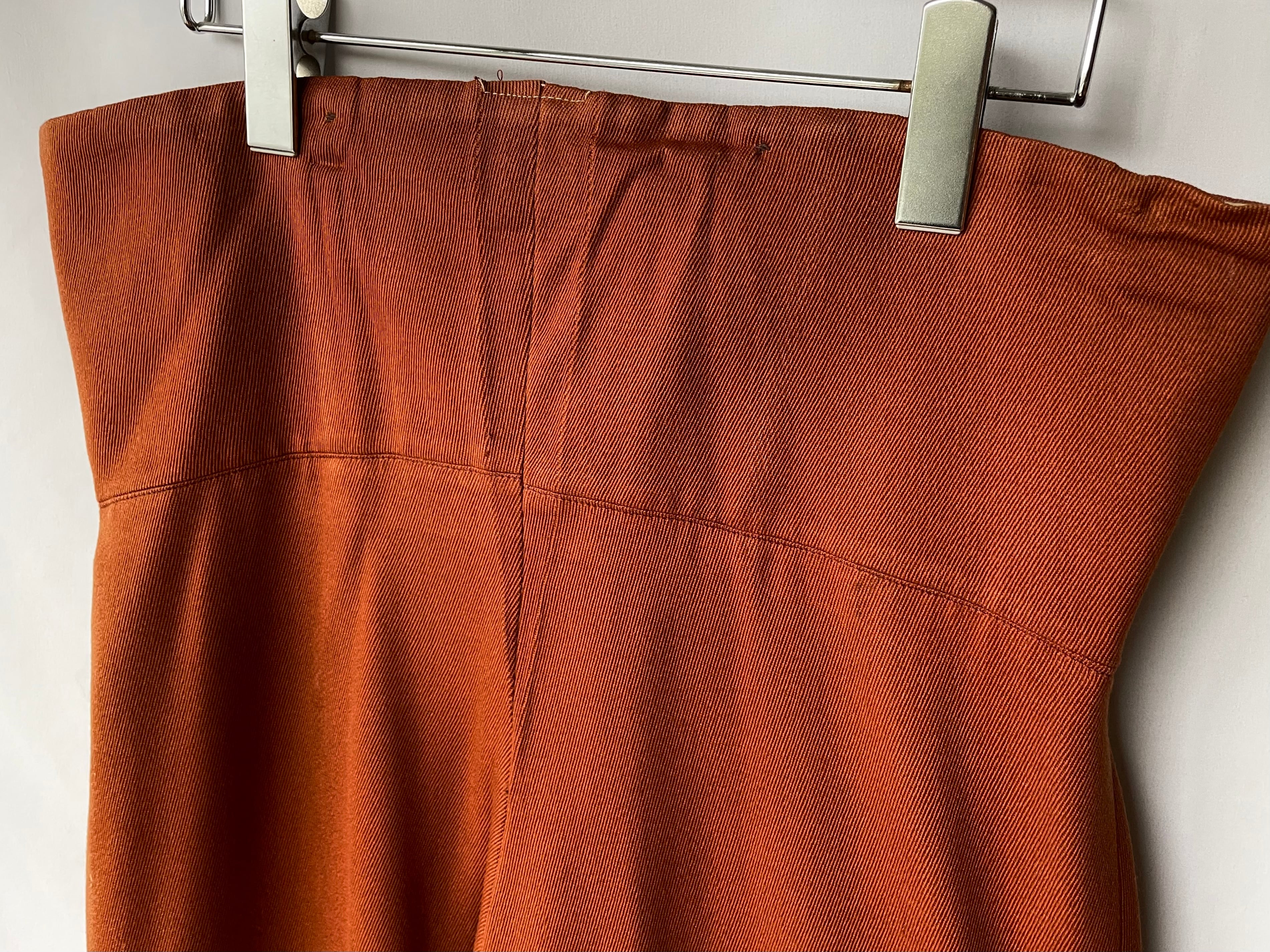 ボトムスはボタンフライ/腹部は金属製のフック留めの仕様。