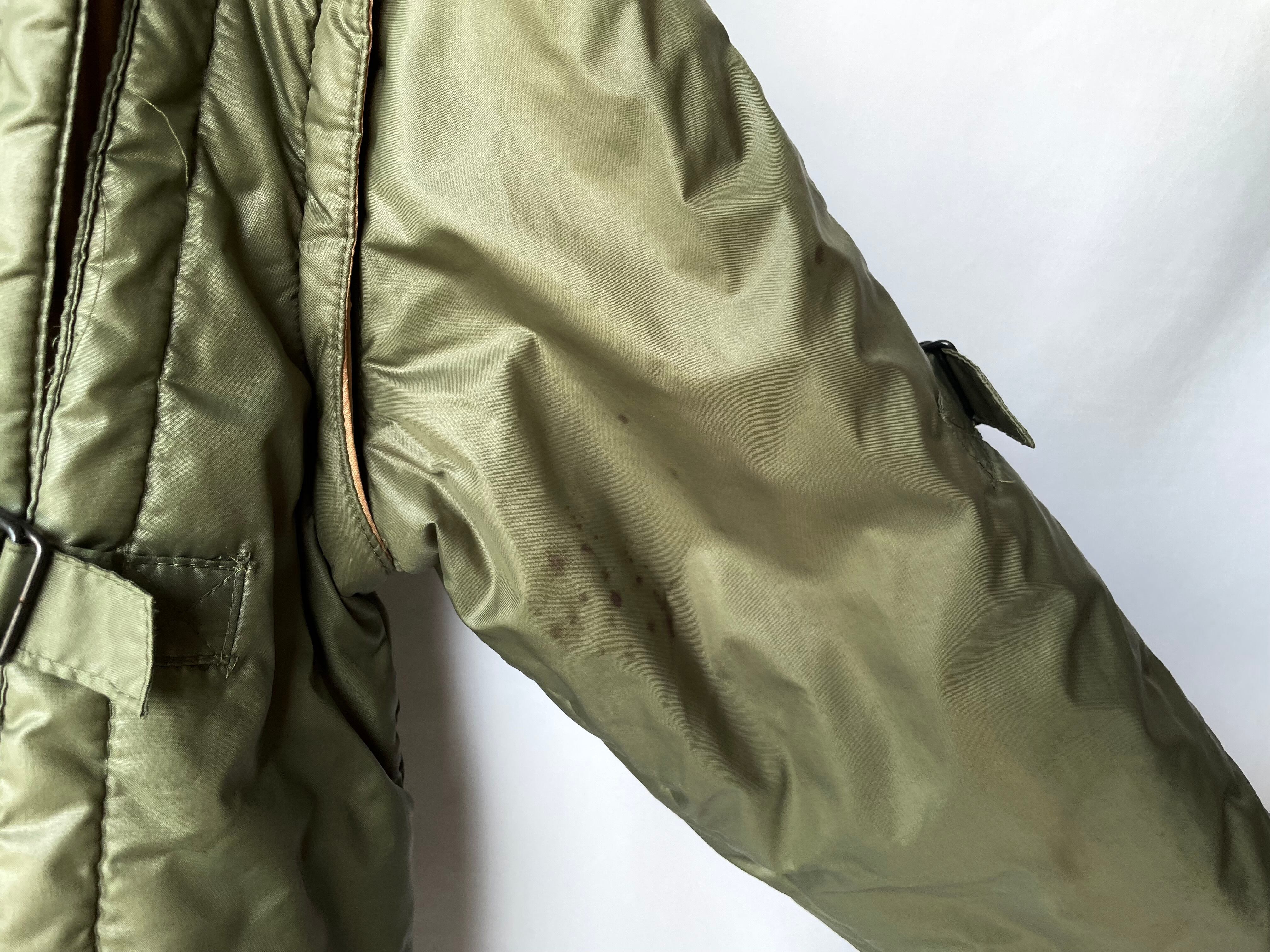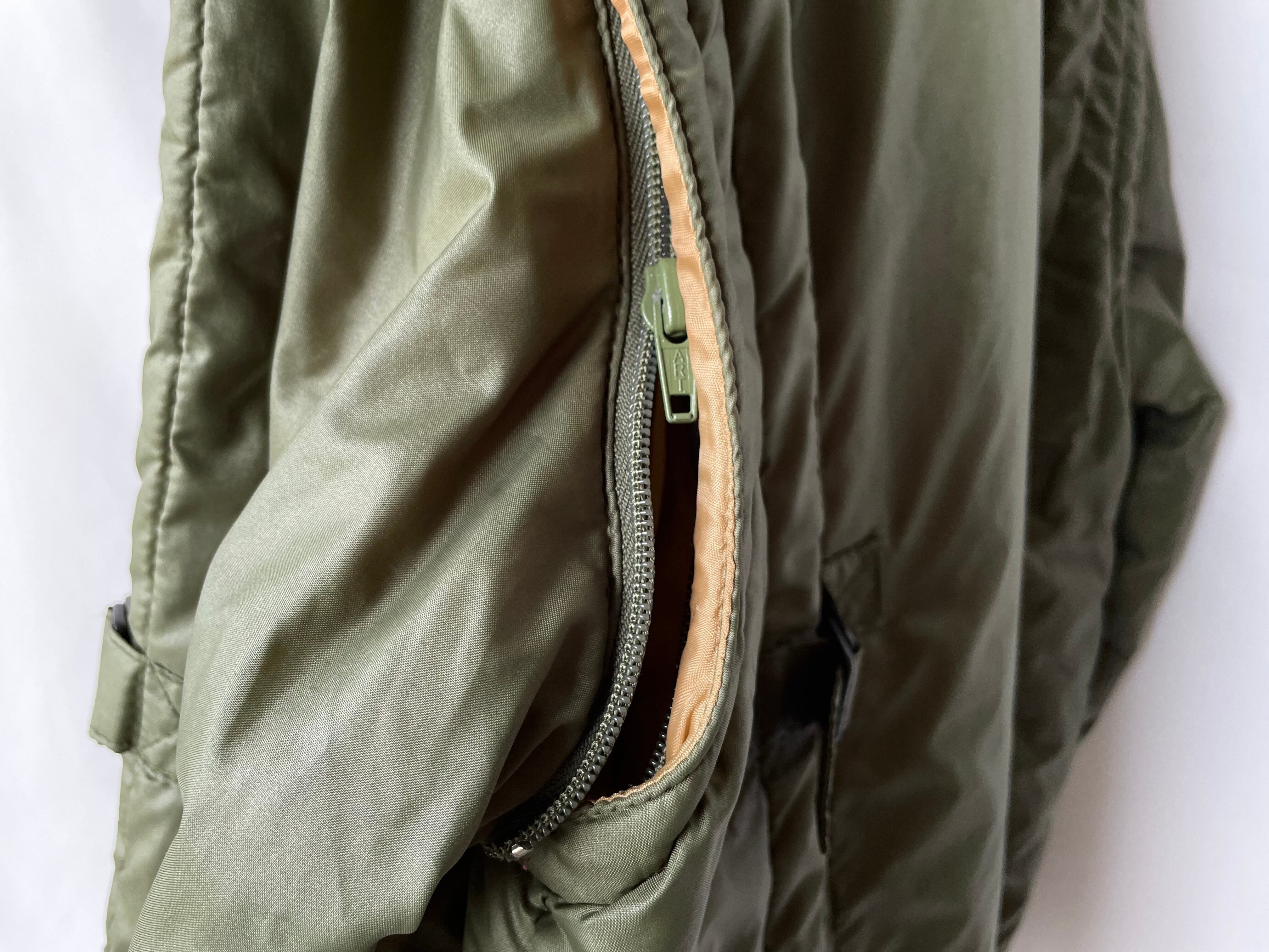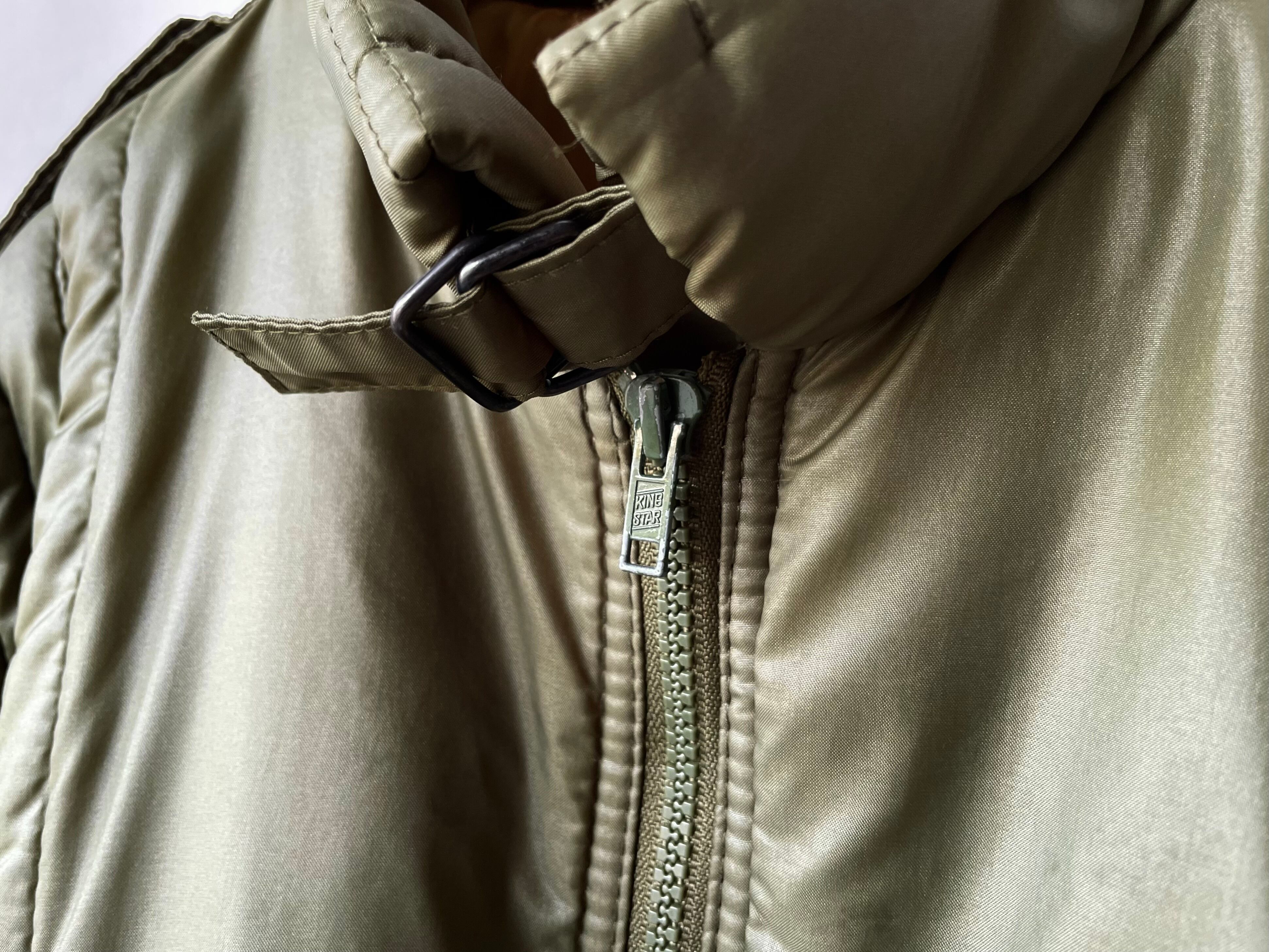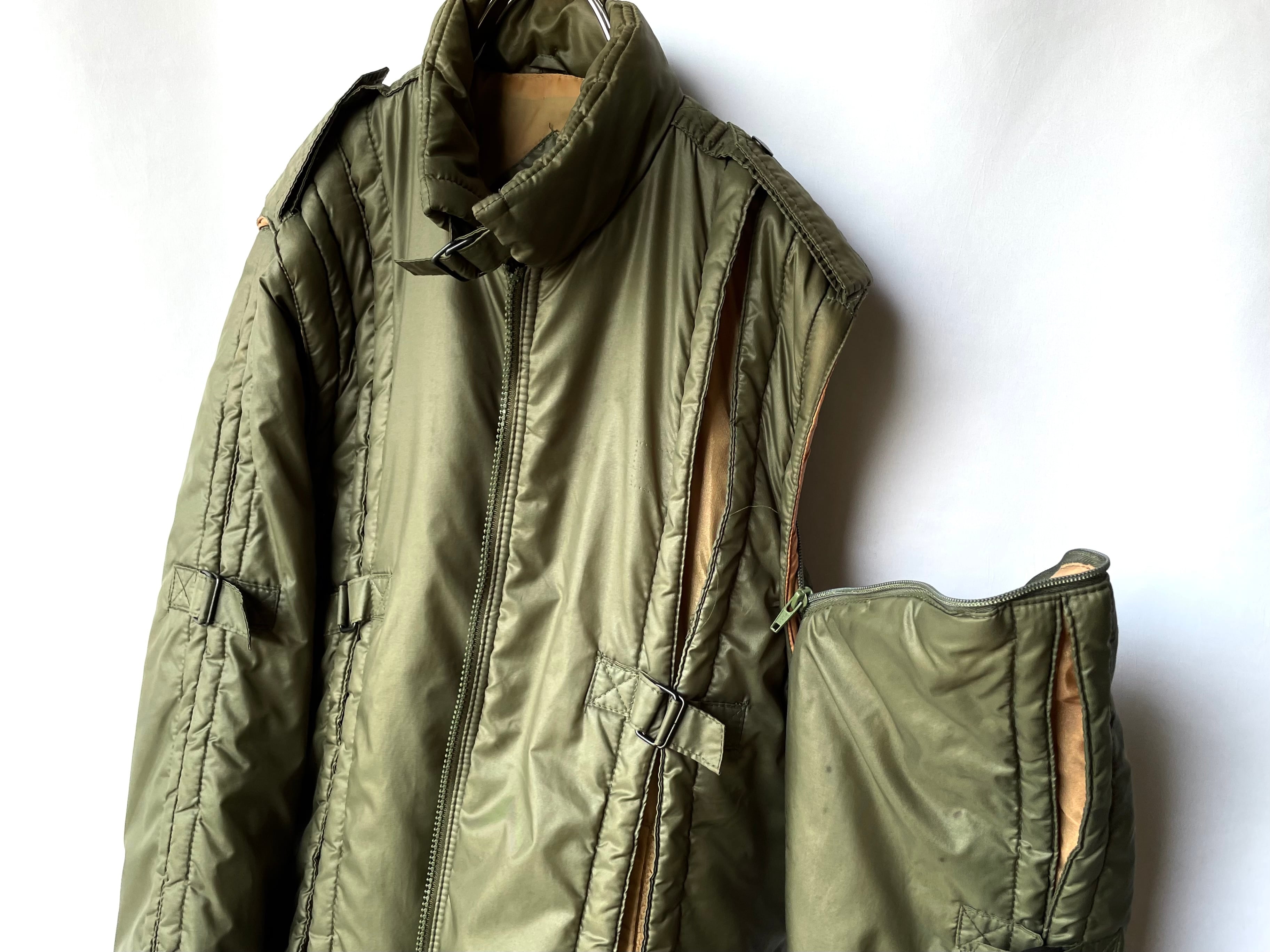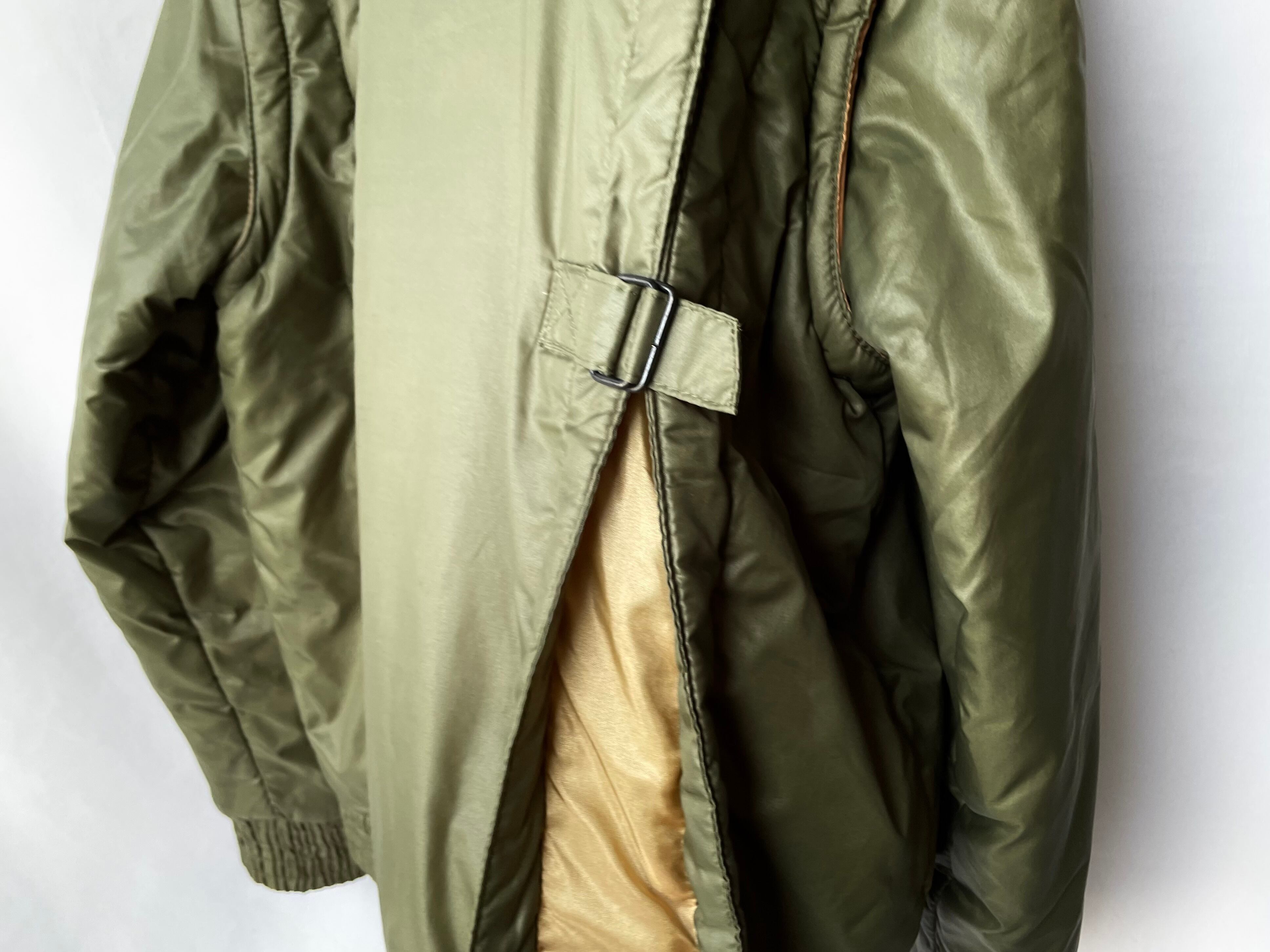 上記同様のベルト留めのスタンドカラー、ジップ着脱式のスリーブデザイン。