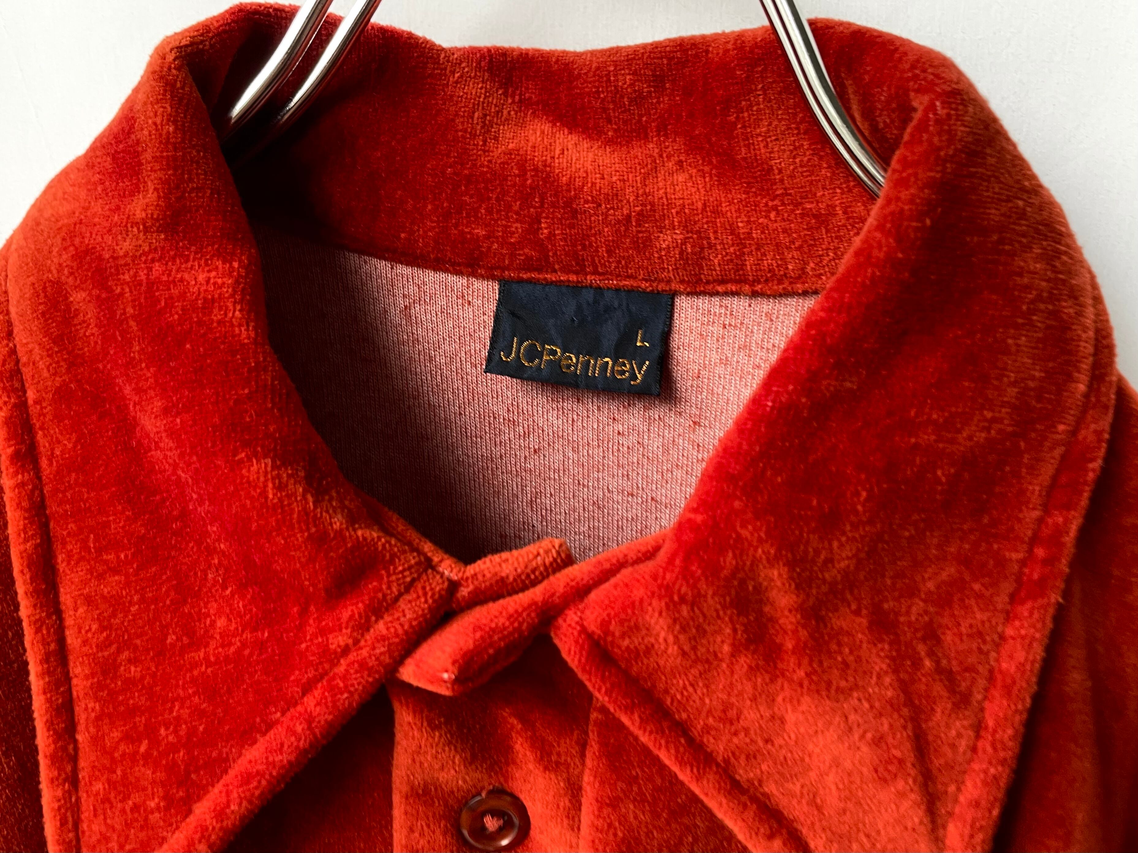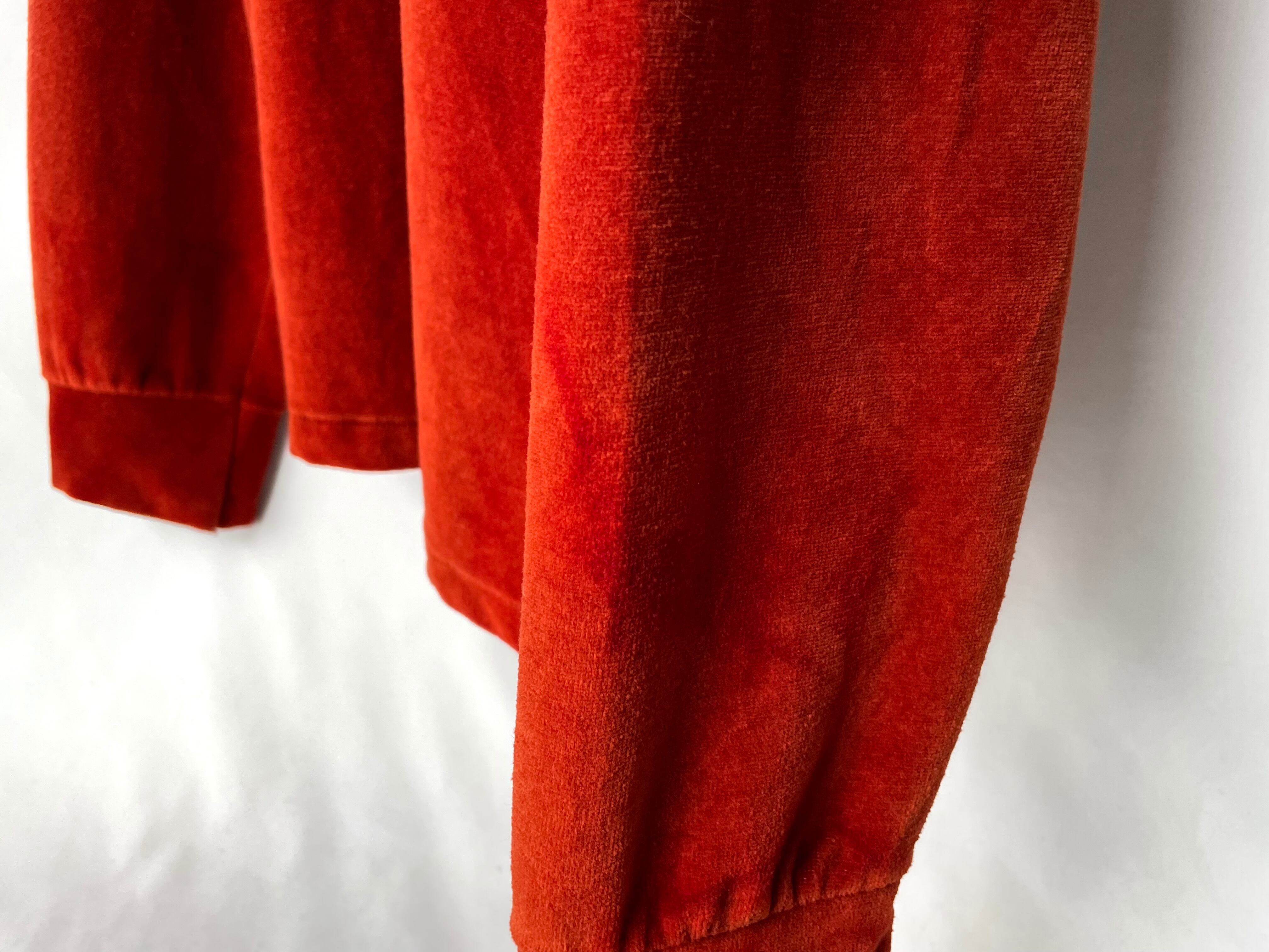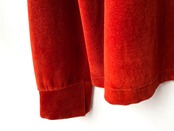 年代ならではのやや大ぶりな襟に、間隔の狭い4つボタンのプルオーバー。