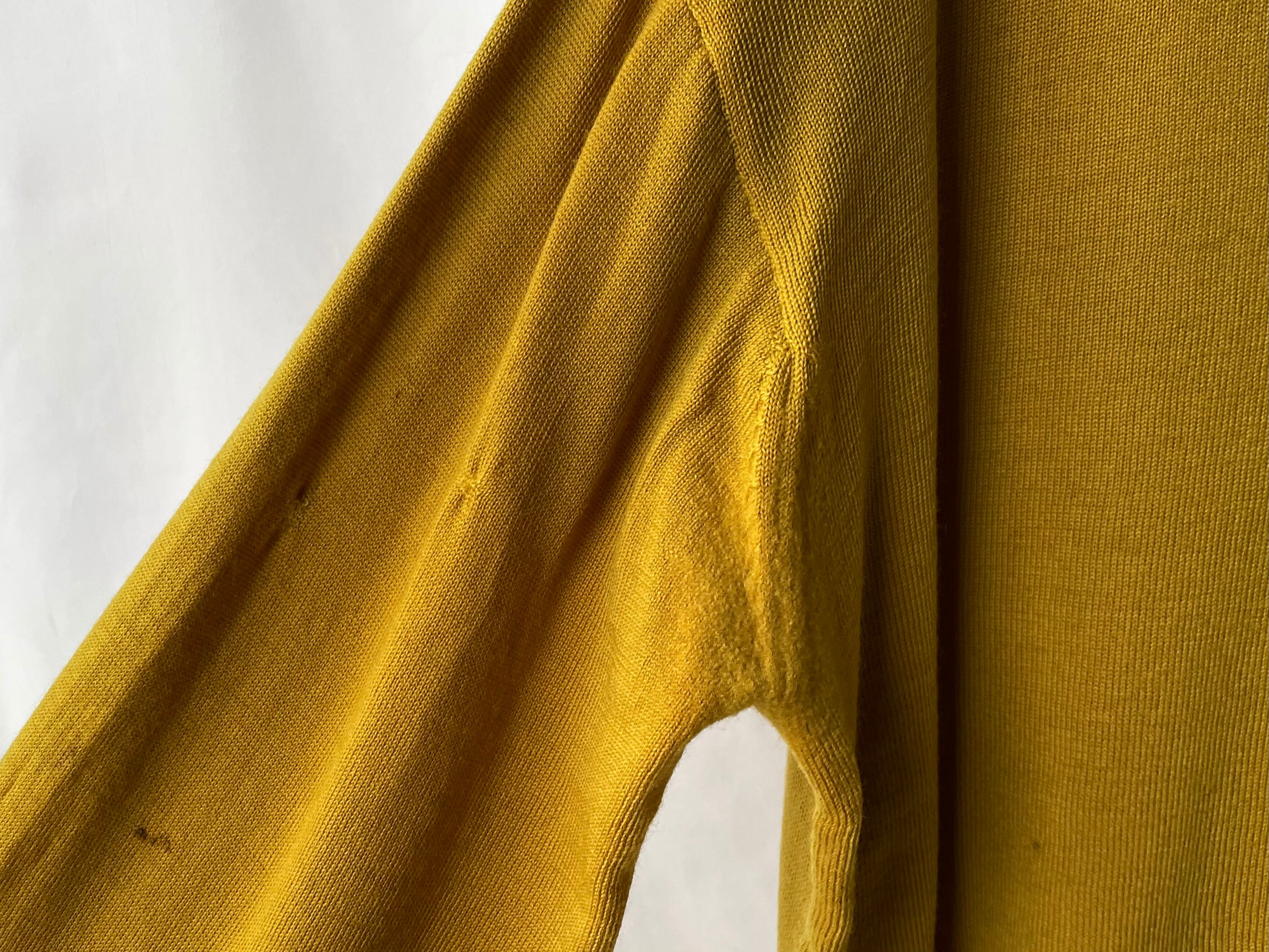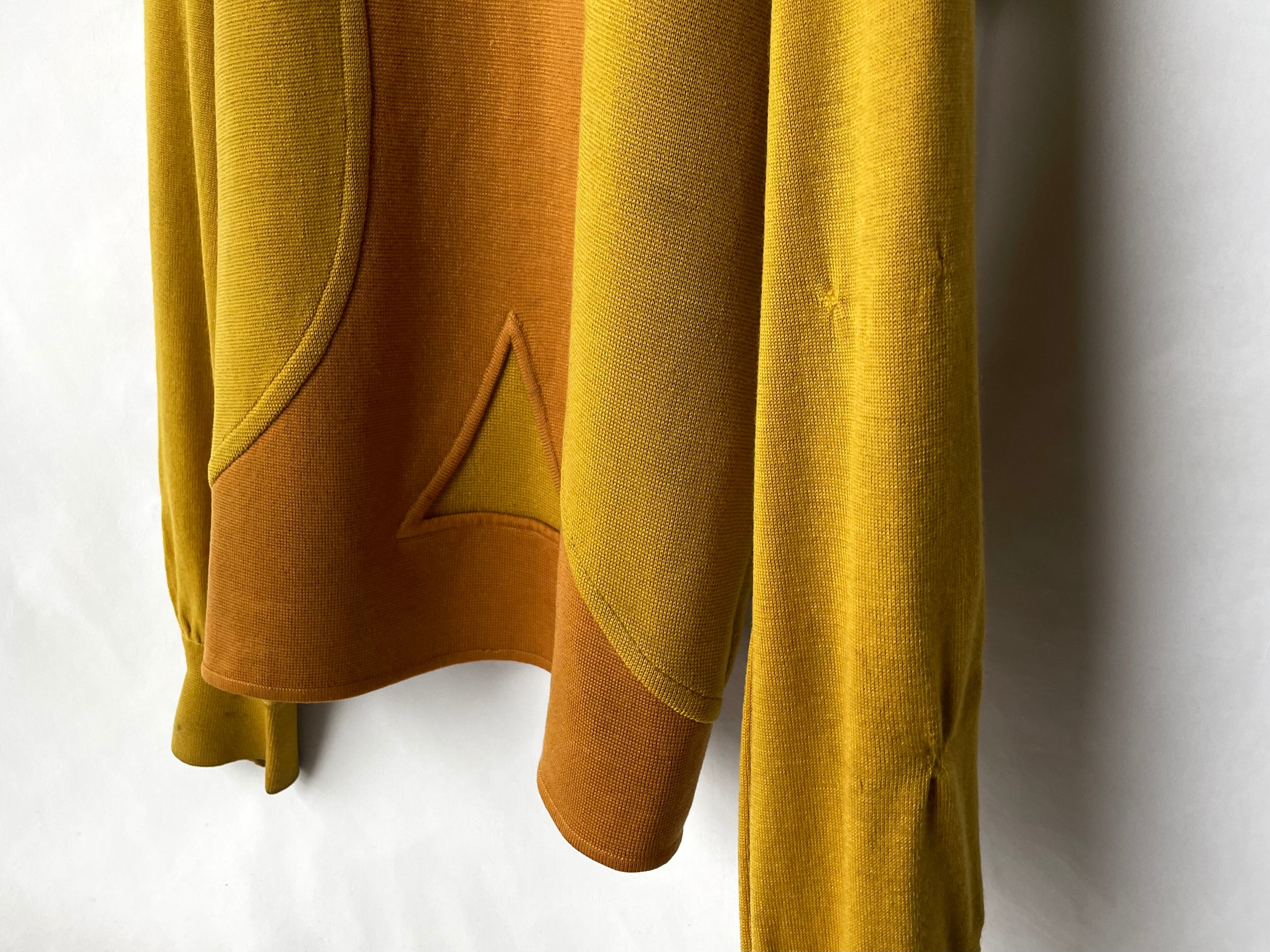 高密度に編まれた上質なウールニット生地においての、イエロー×オレンジの好配色。