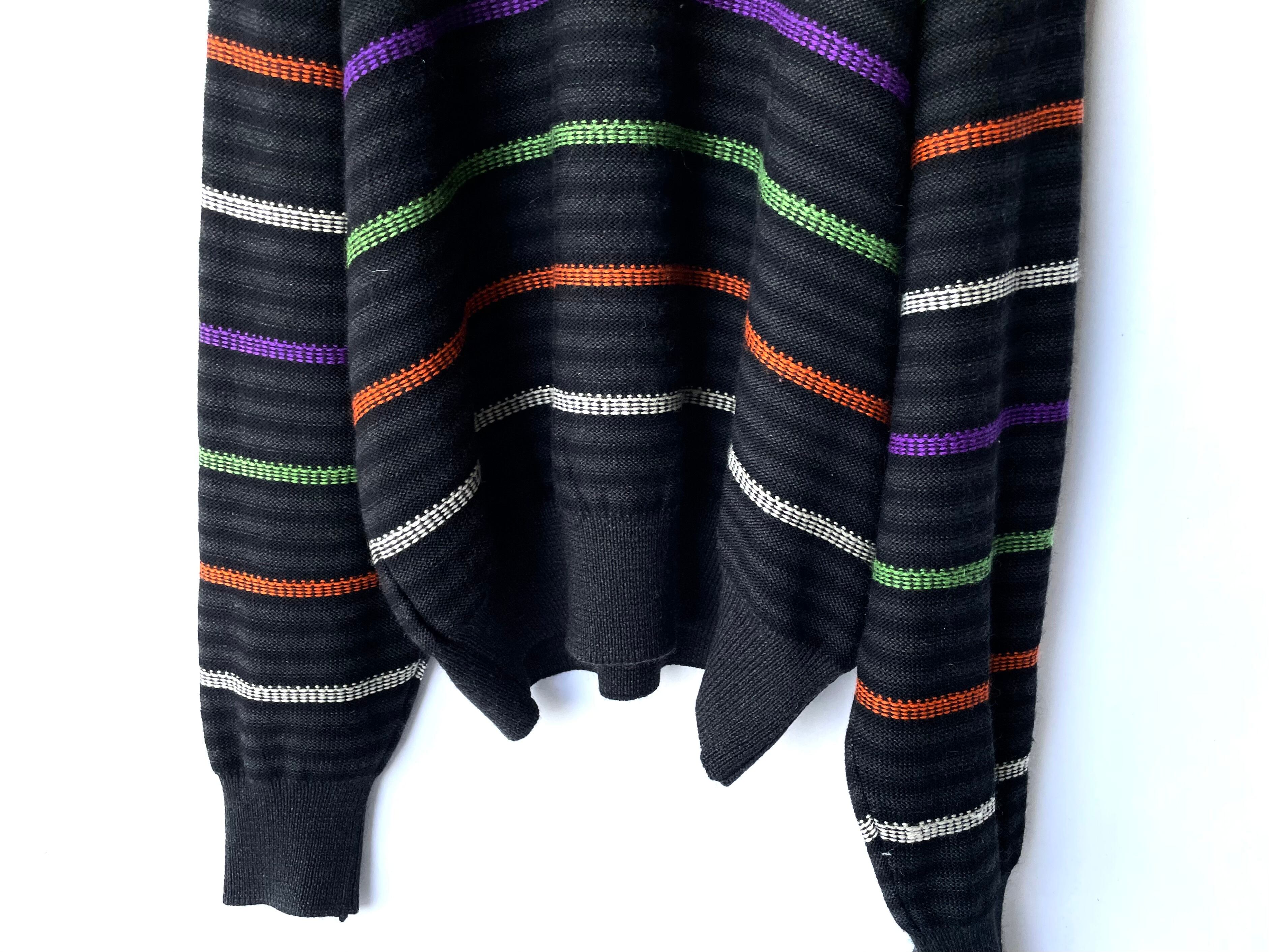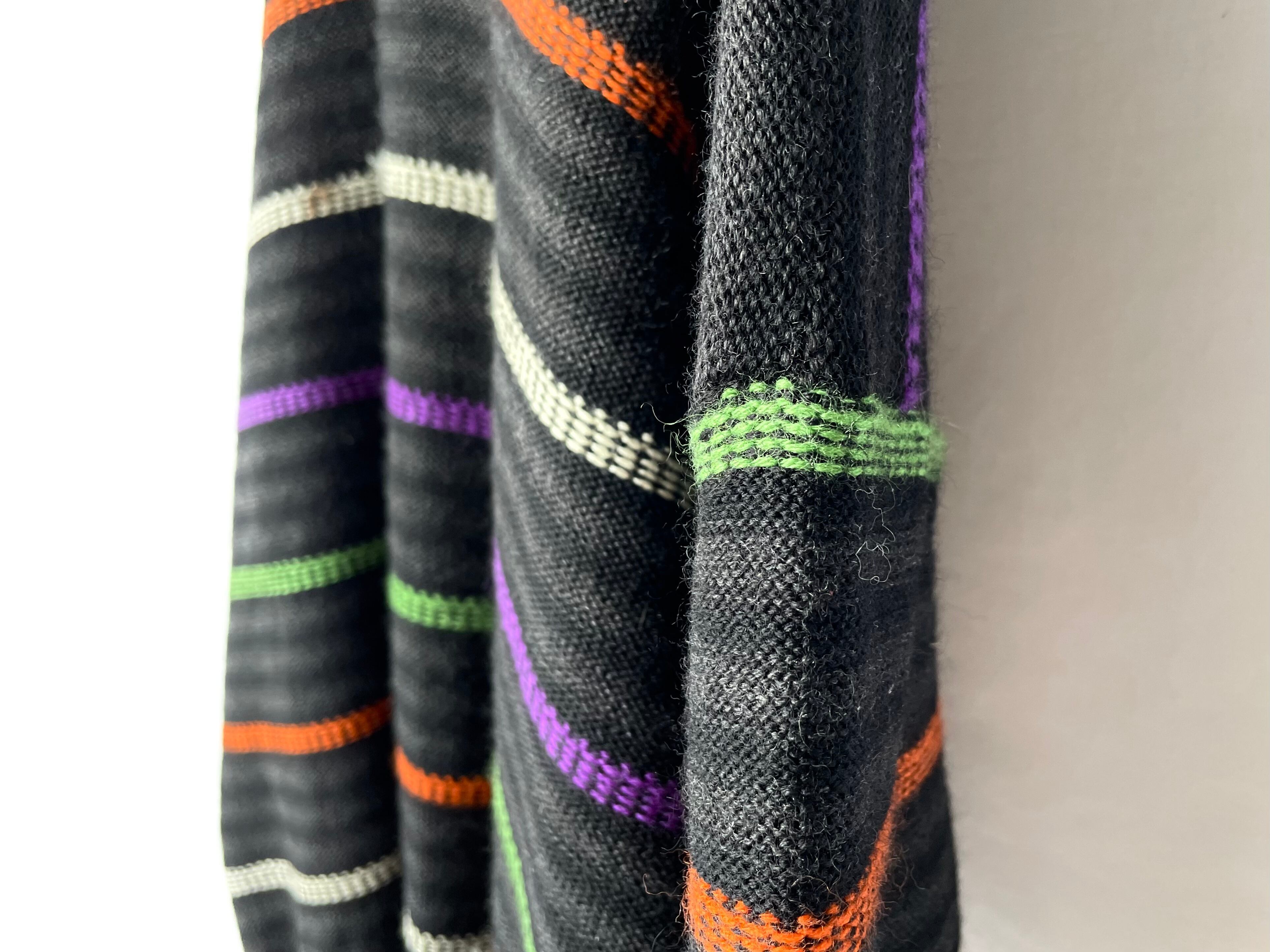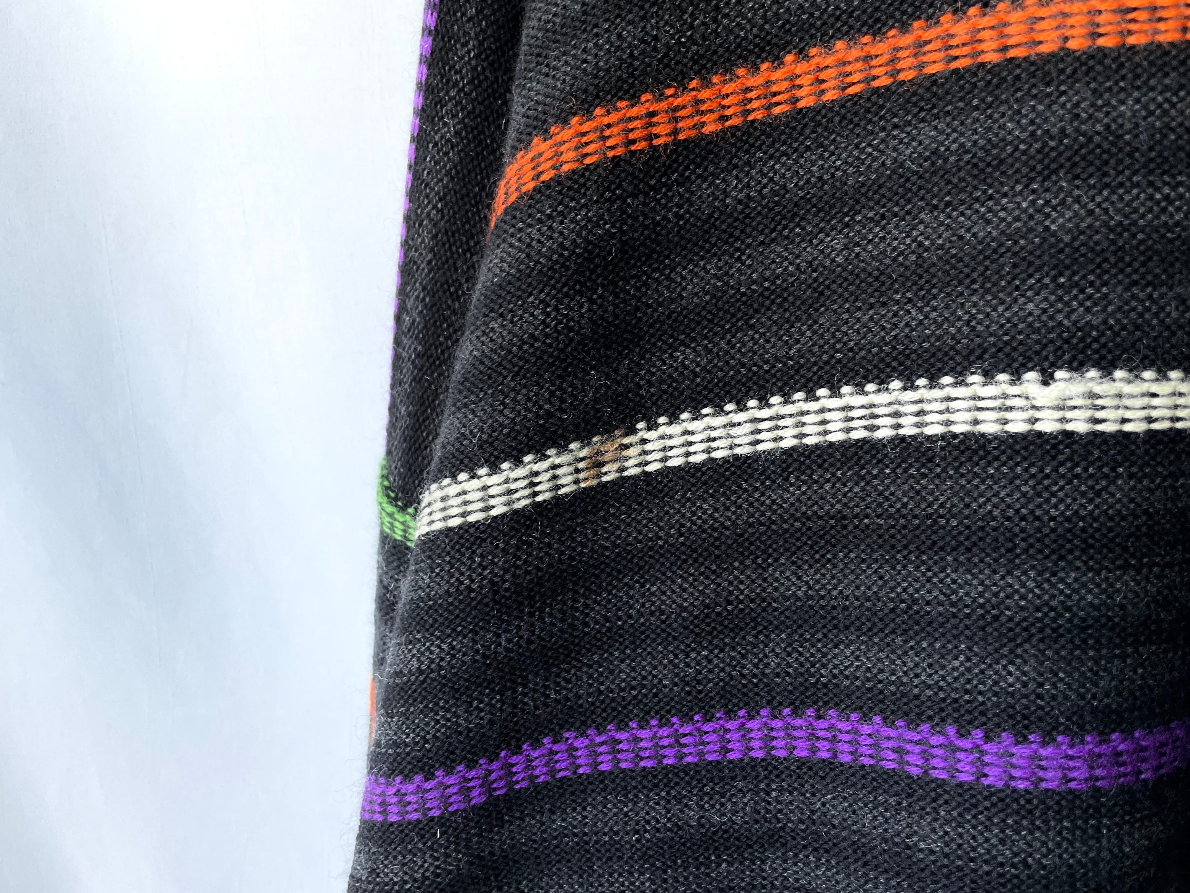 発色の良い4色の糸が編み込まれた、特徴的なストライプパターン。