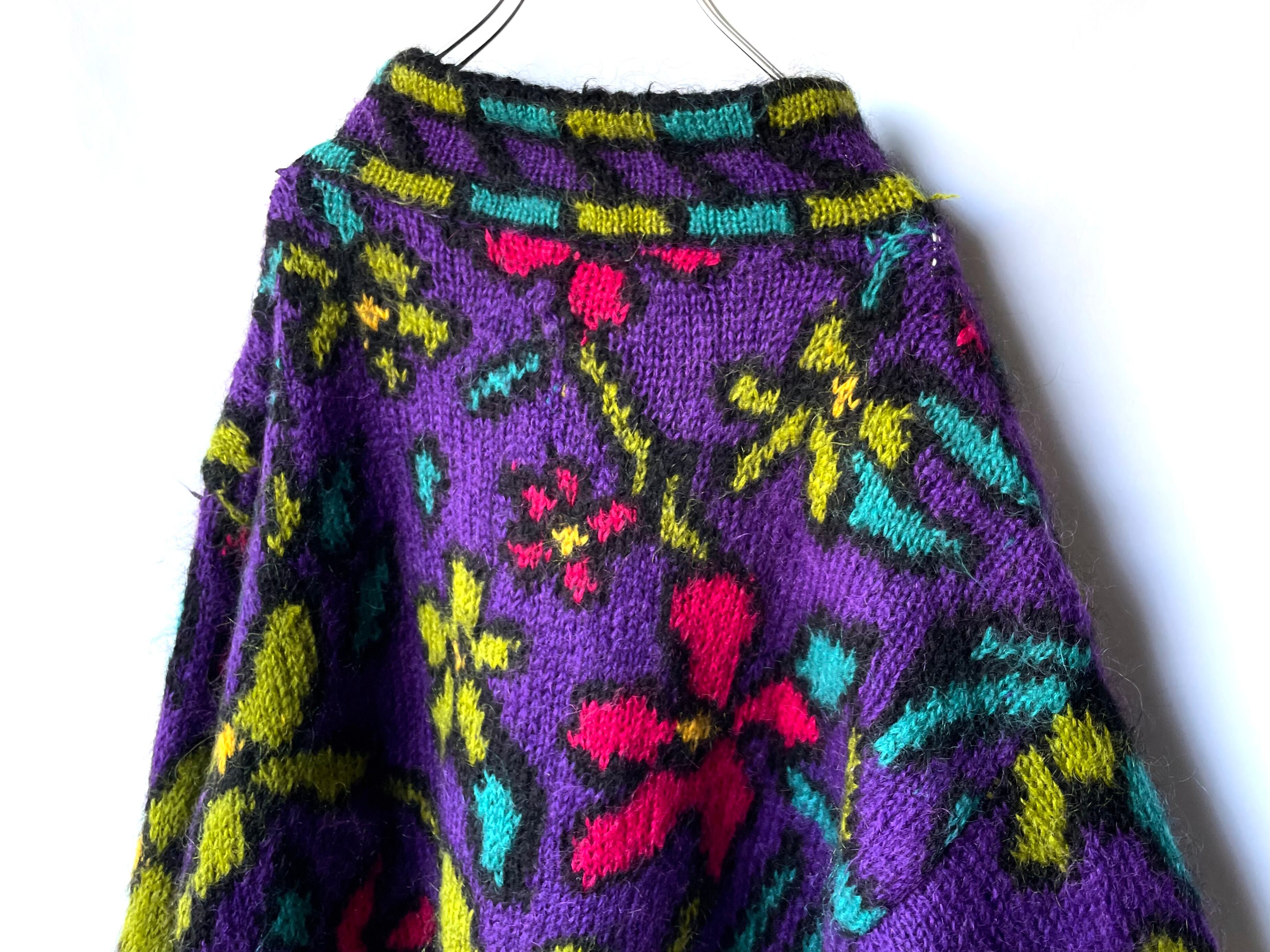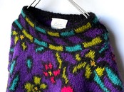 冬生地のハンドニットにおいての暗色の花柄モチーフ。