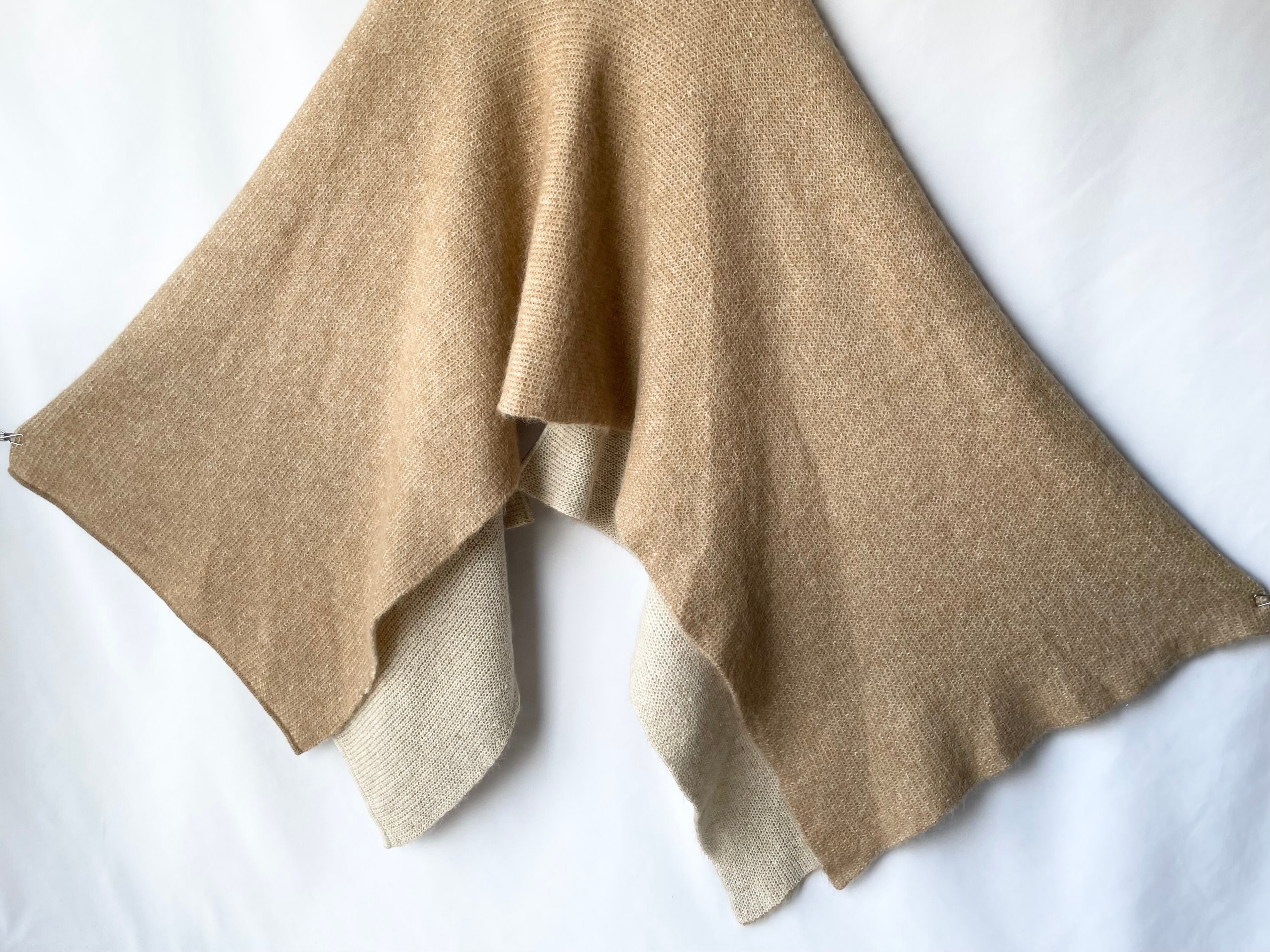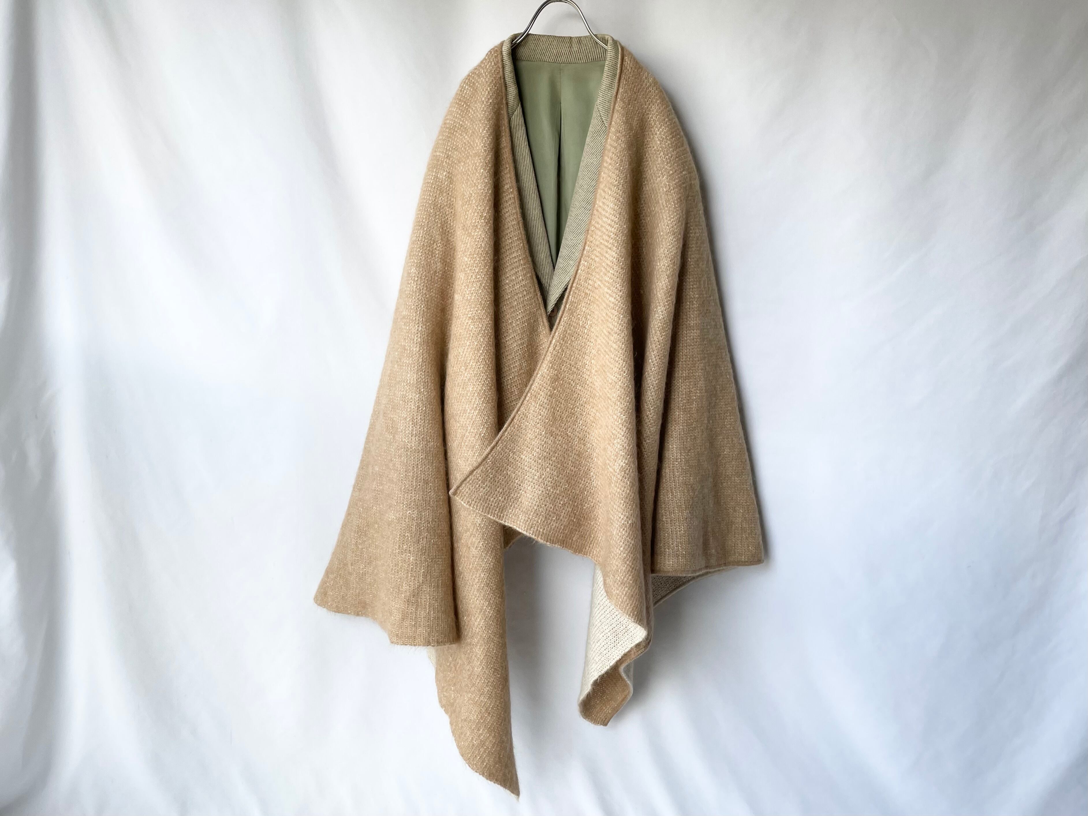 非常に柔らかく、滑らかな艶のある素晴らしい編み地で仕立てられたストールケープ。