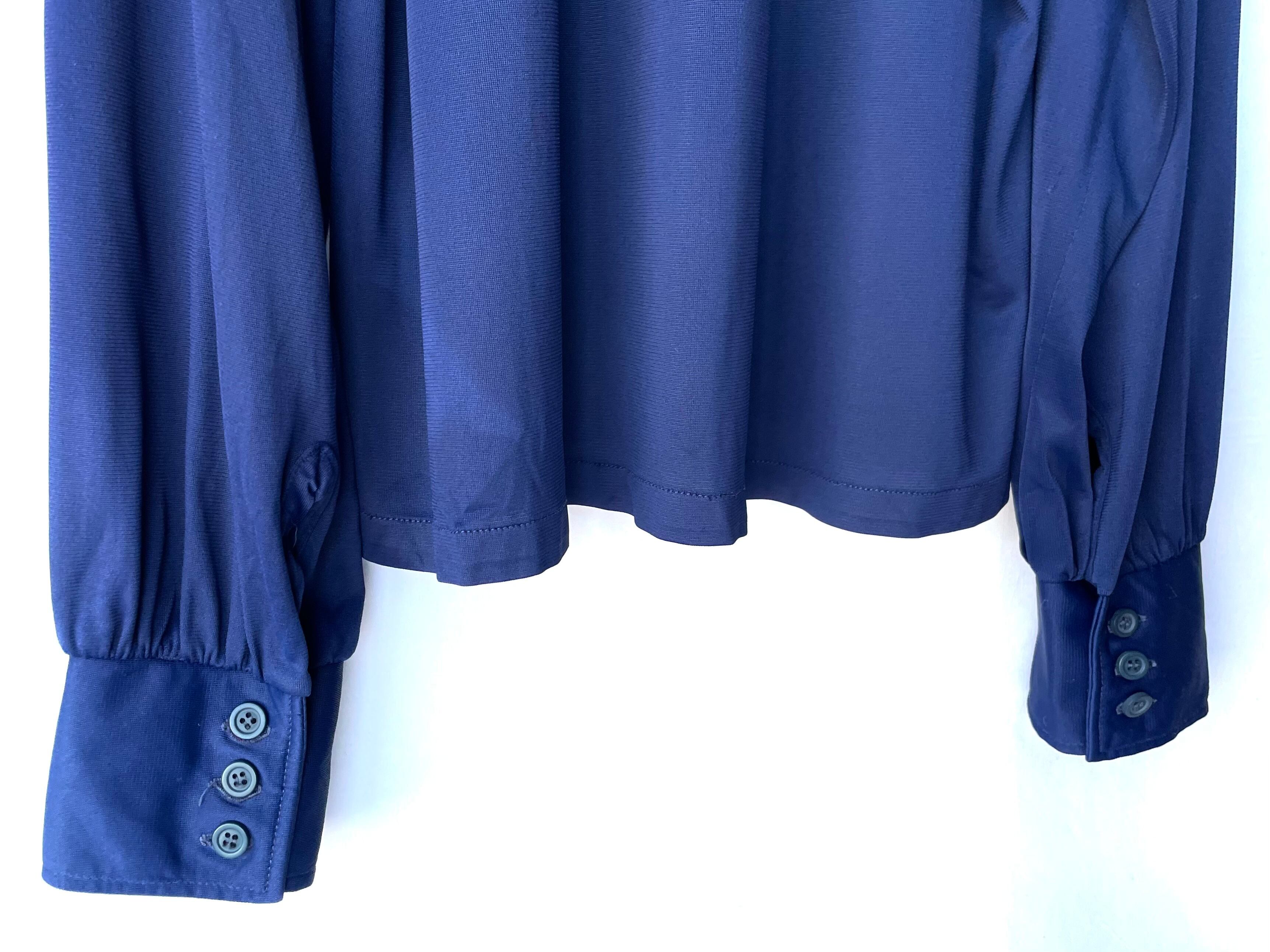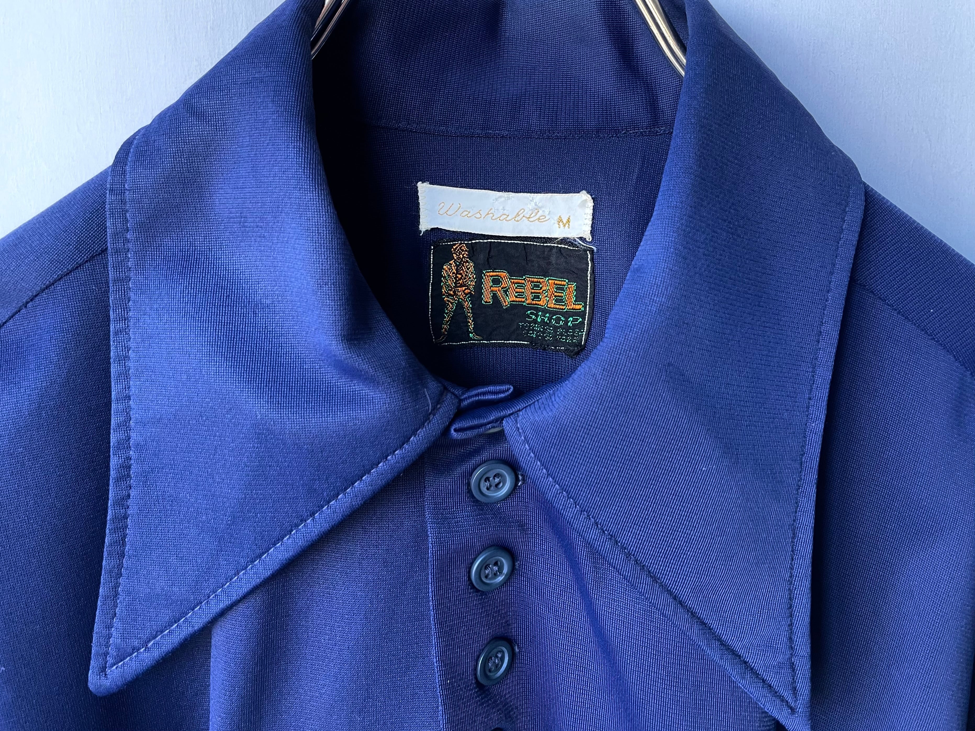 面白いディテールが採用されたダークネイビーカラーのポリシャツ。