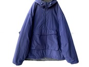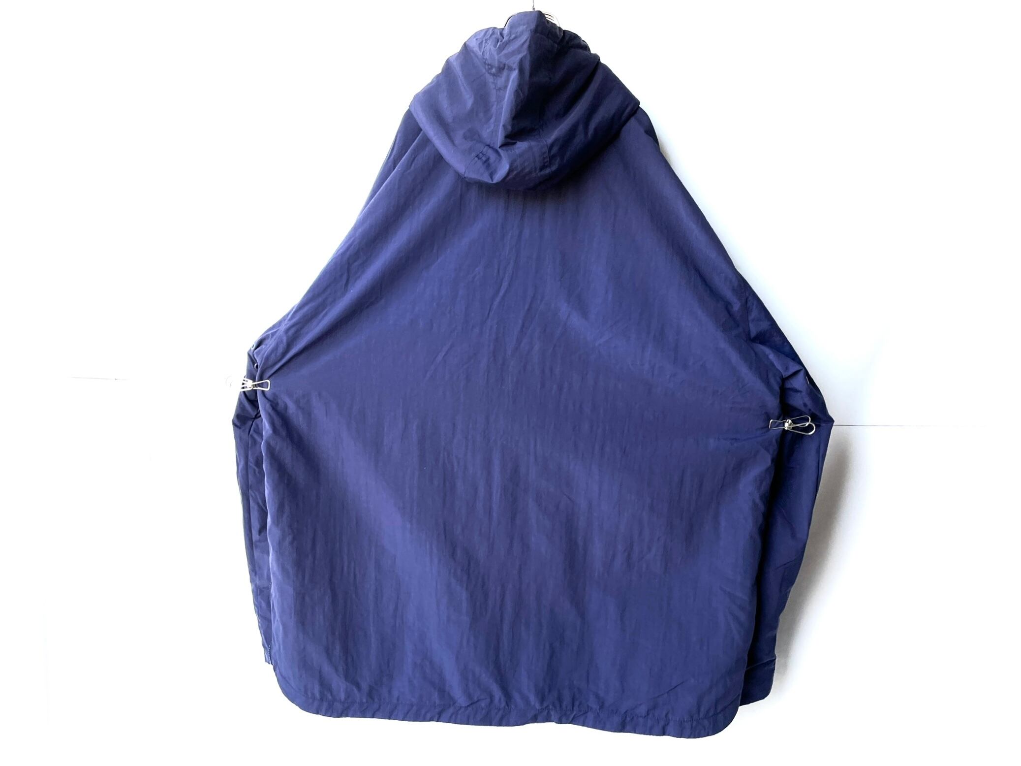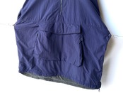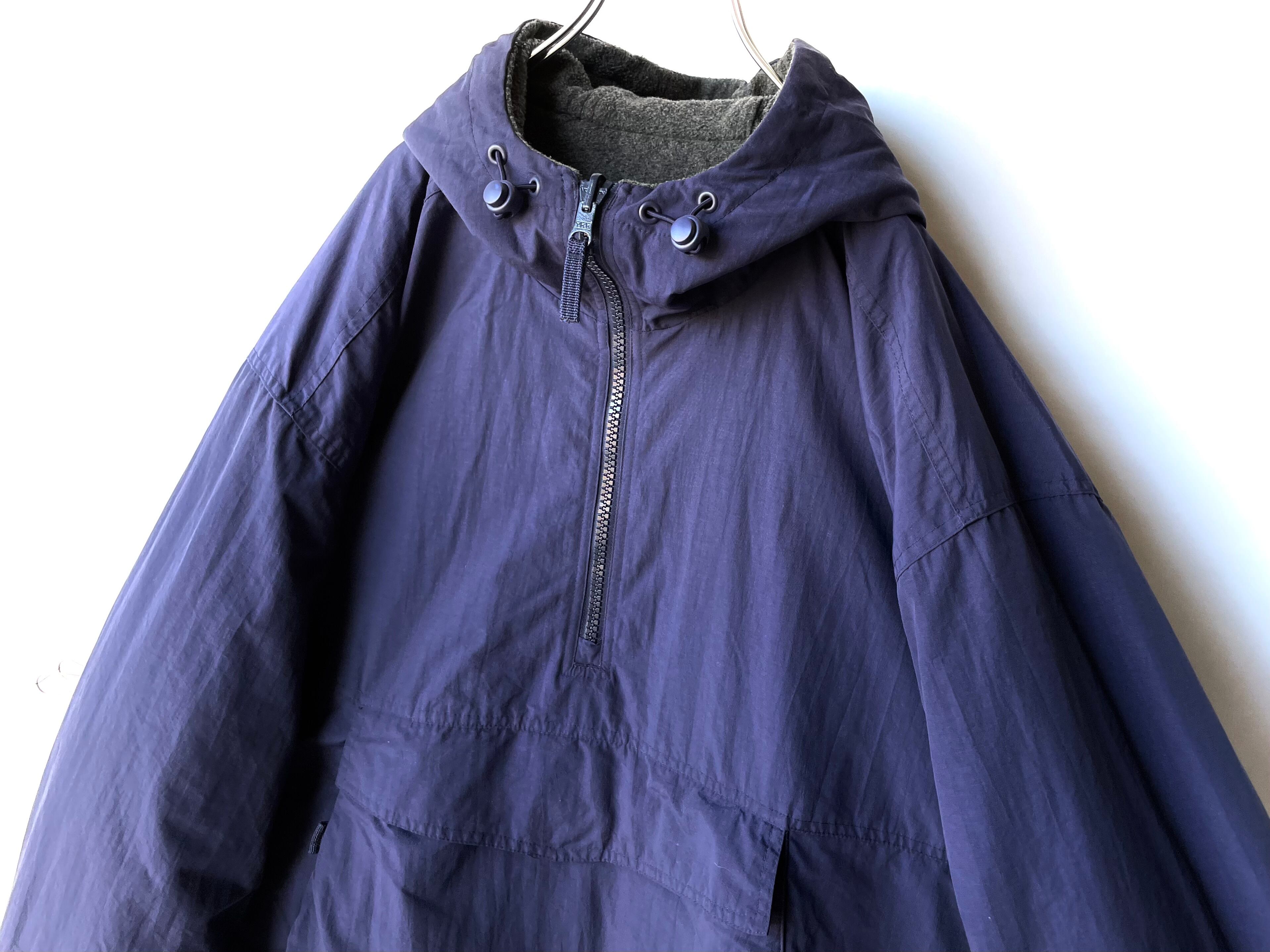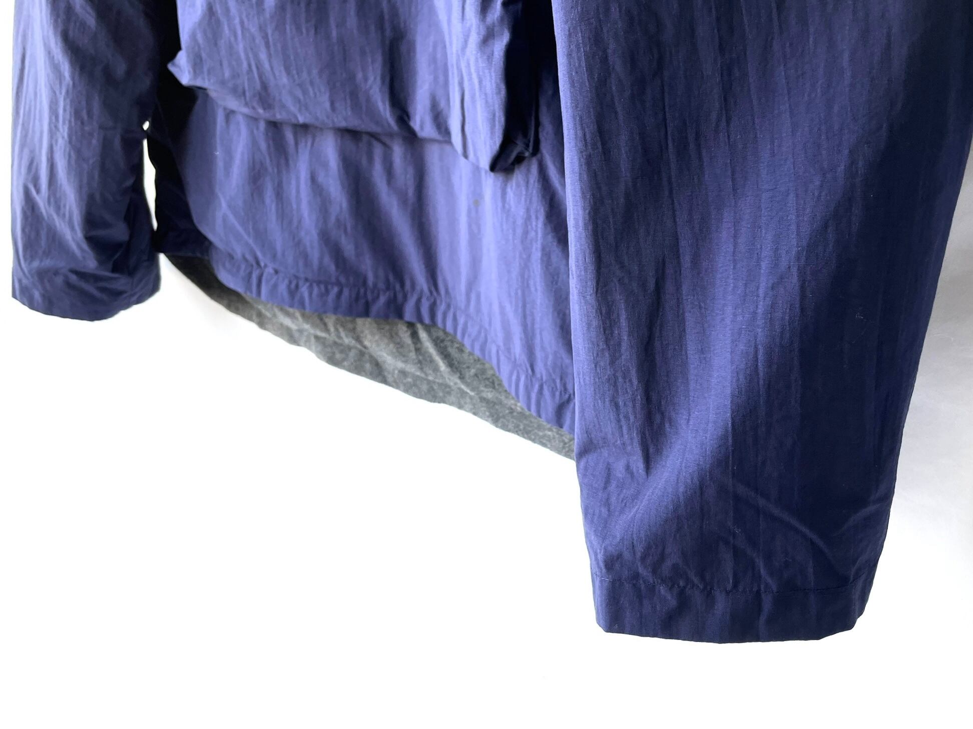 高密度なネイビーナイロン×肉厚なフリースボディが使用された、ハーフジップのリバーシブルフーディ。