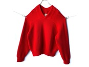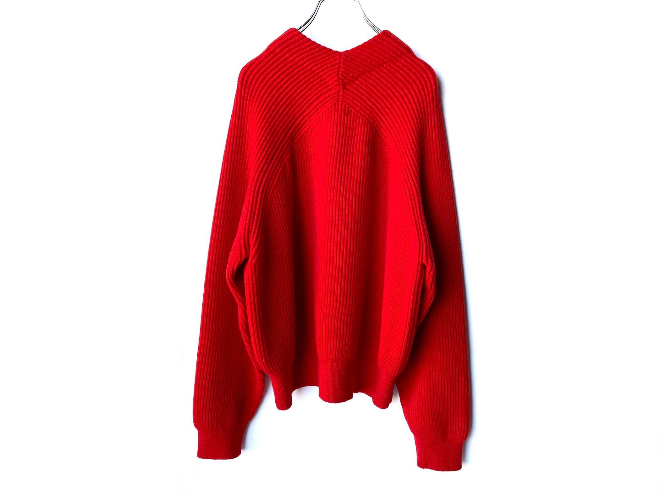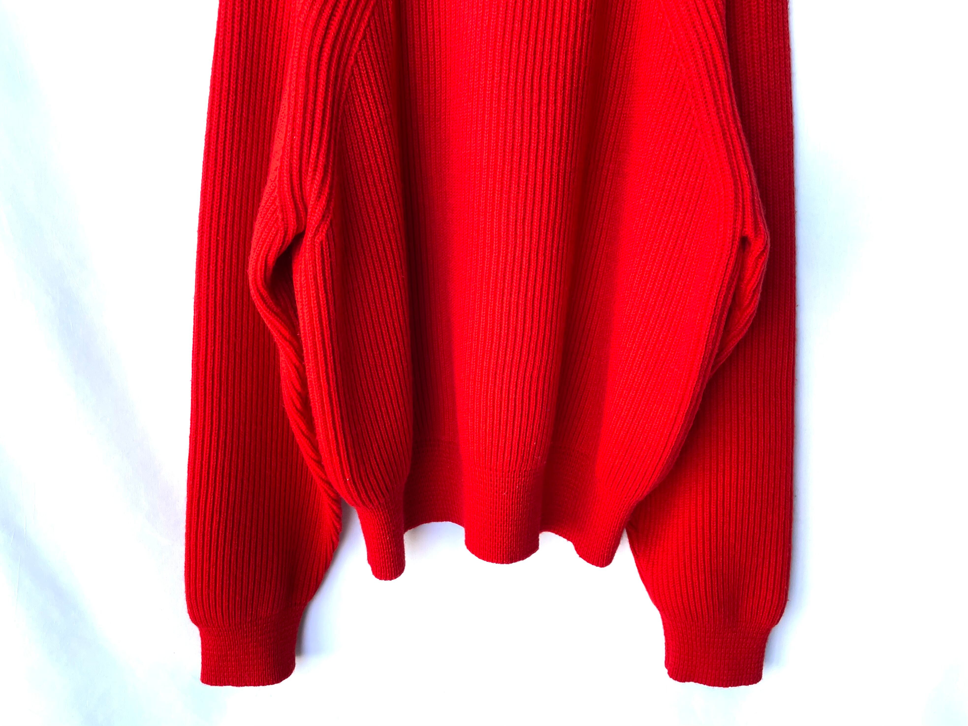 たっぷり肉厚なピュアウールによる鮮やかな赤のリブ編み。